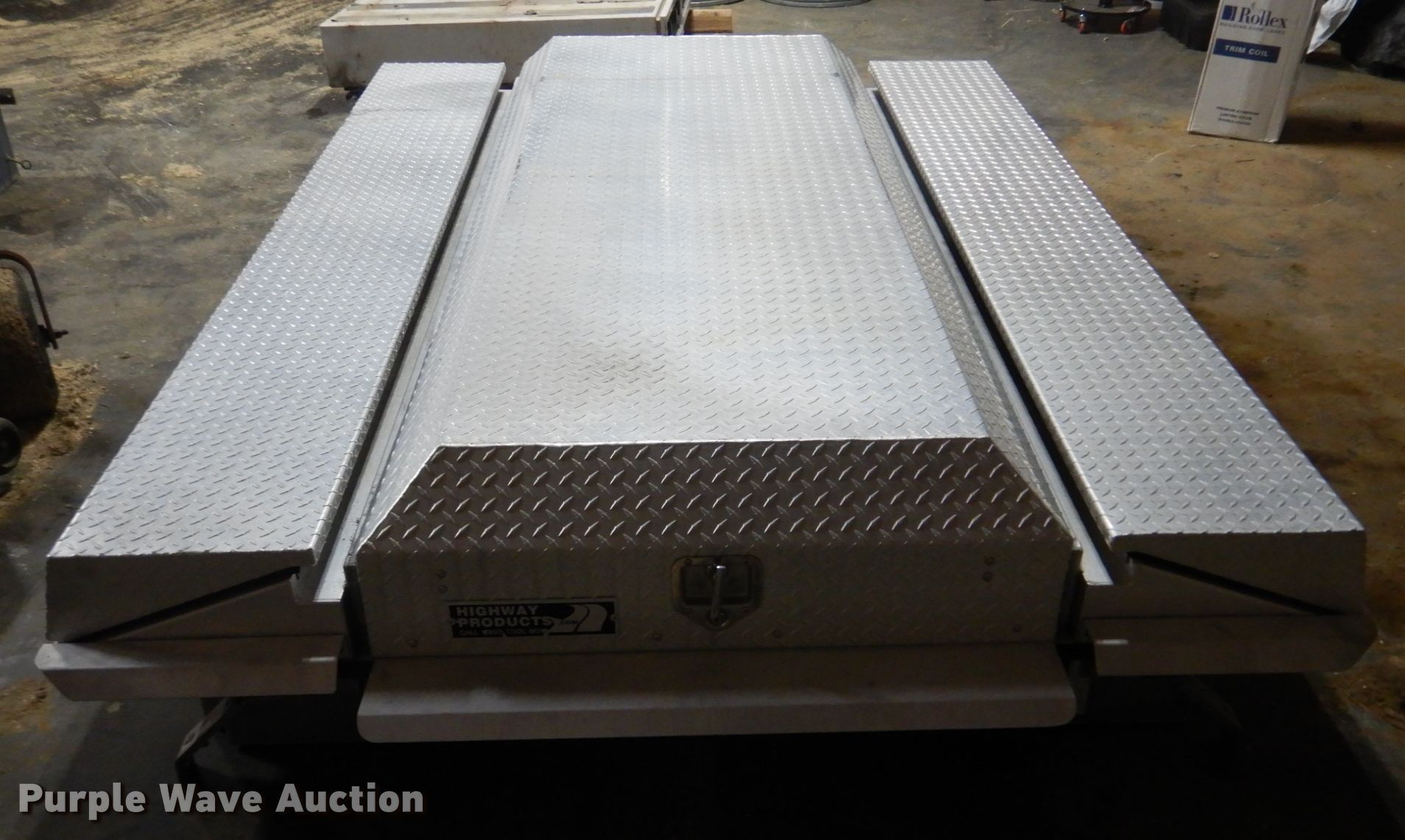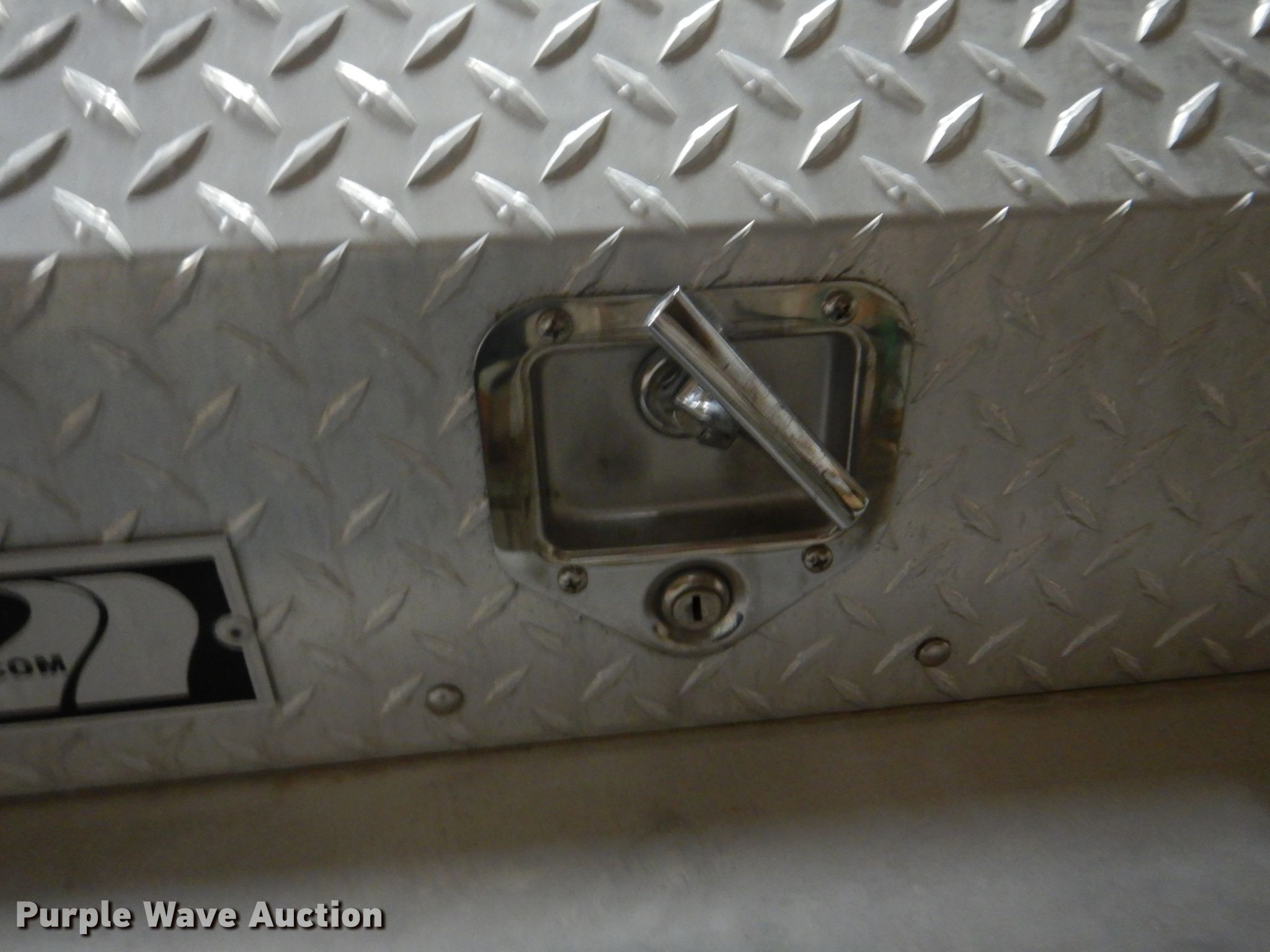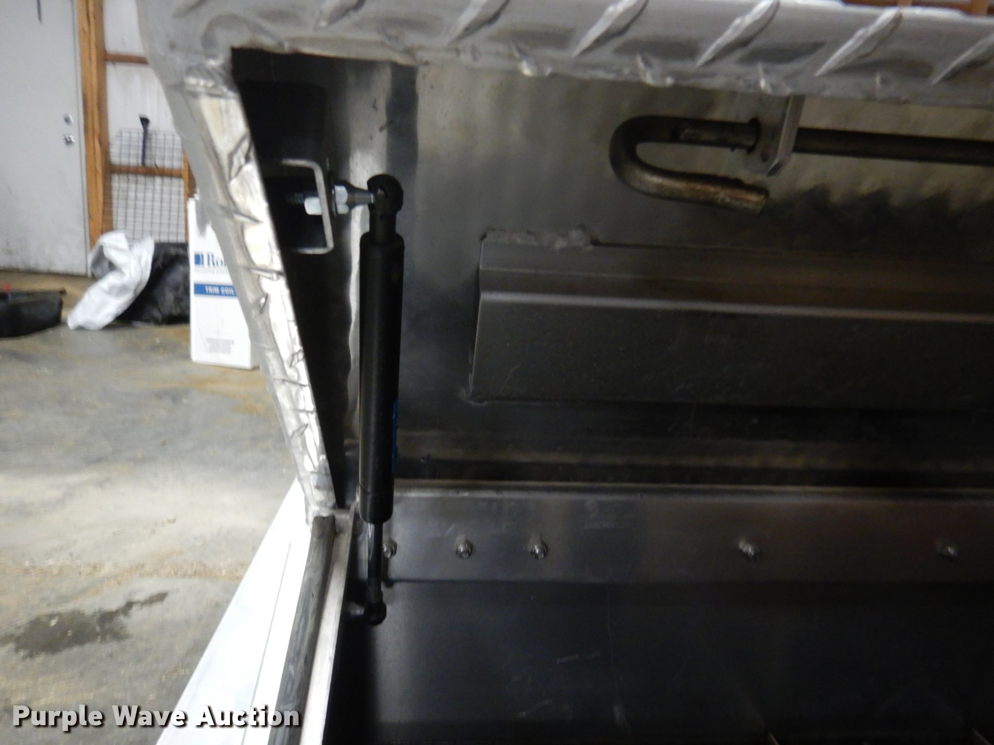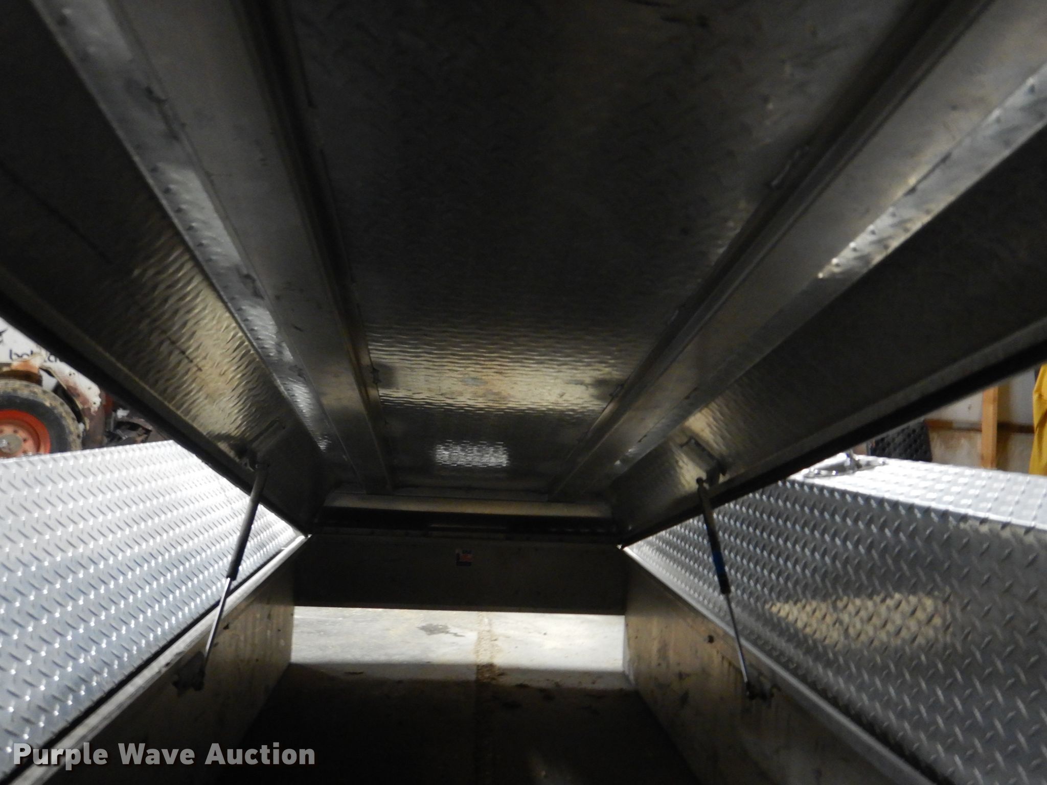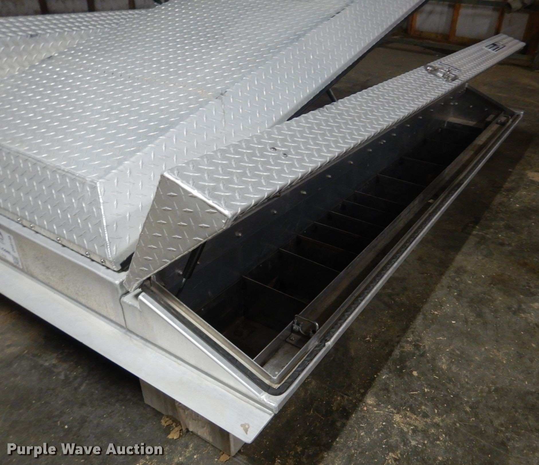 Purple Wave is selling a used Tools in Missouri. This item is a Tool boxes with the following: Highway Products, Overall: 102 1/2" L x 71" W, Aluminum truck bed box, (2) side boxes w/ tool dividers, Center box, Keys included, (2) JOBOX 662980 StorAll tool boxes, 4' L x 2' W x 9' H, Drawer divider, Keys included