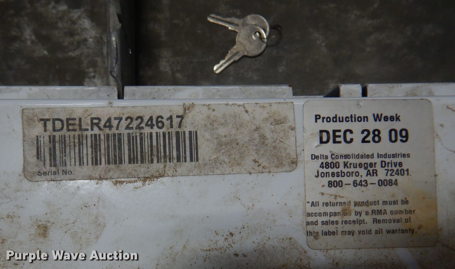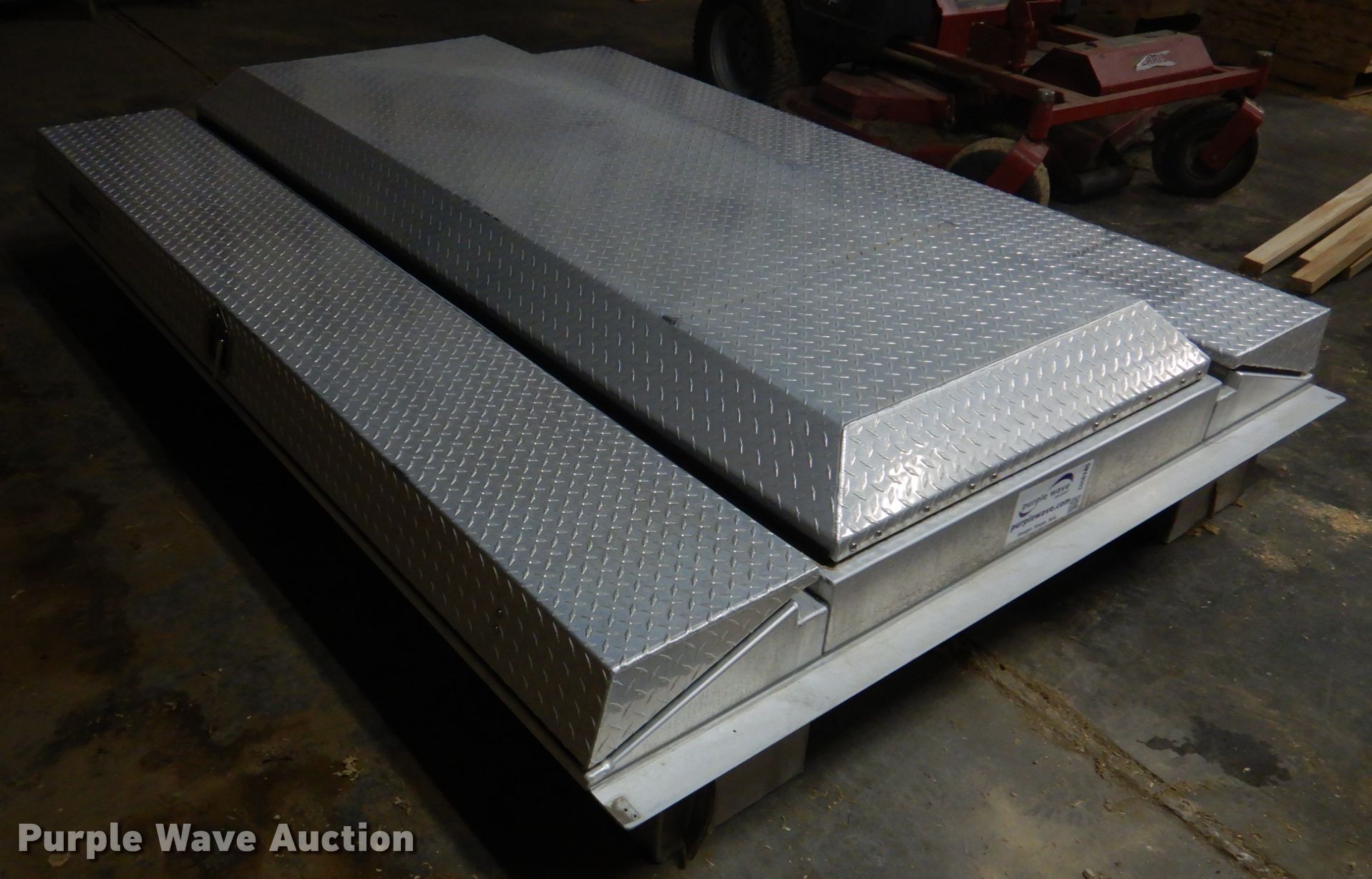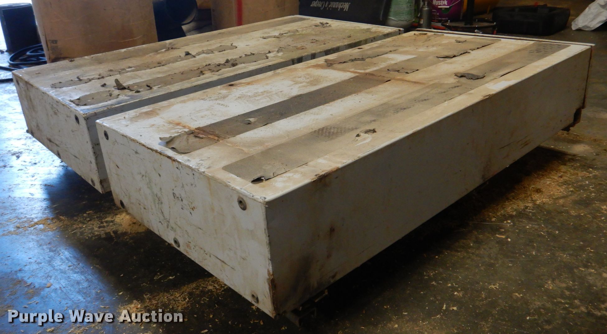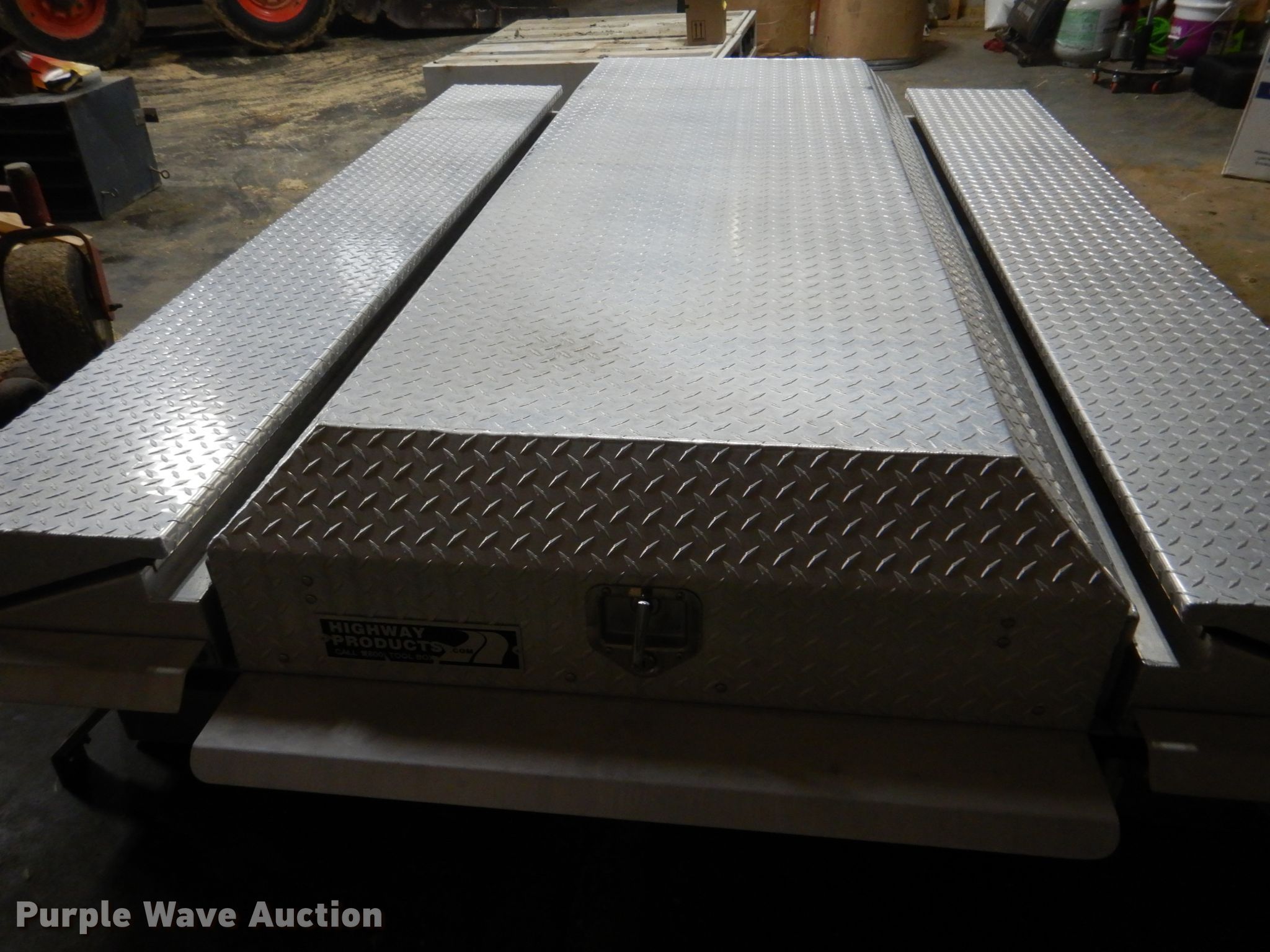 Purple Wave is selling a used Tools in Missouri. This item is a Tool boxes with the following: Highway Products, Overall: 102 1/2" L x 71" W, Aluminum truck bed box, (2) side boxes w/ tool dividers, Center box, Keys included, (2) JOBOX 662980 StorAll tool boxes, 4' L x 2' W x 9' H, Drawer divider, Keys included