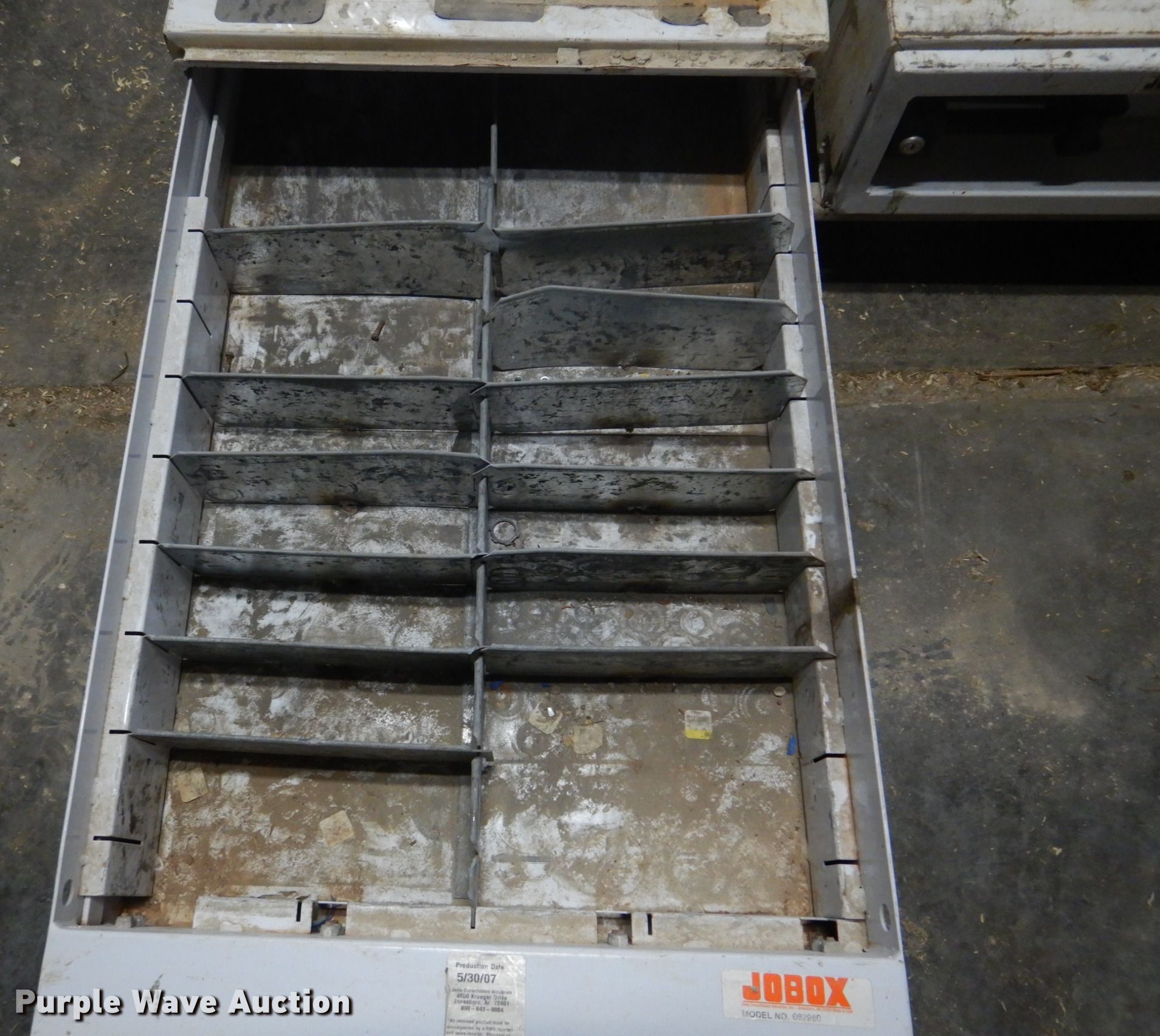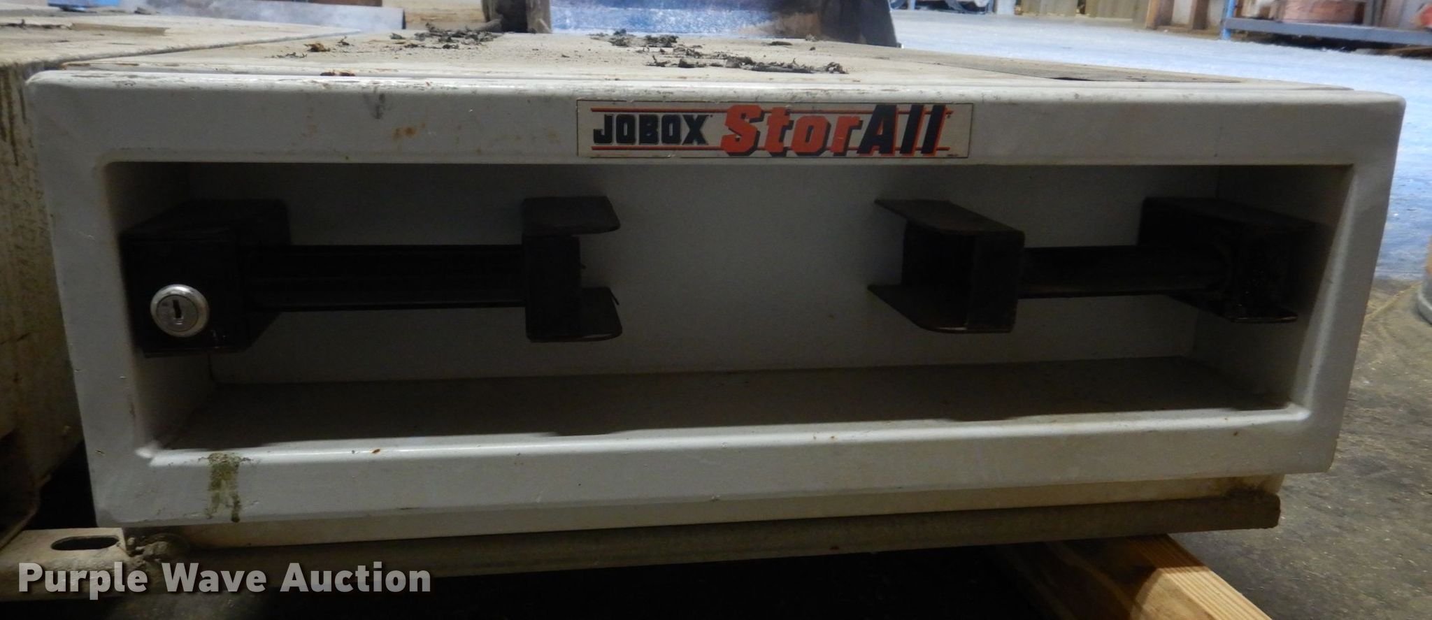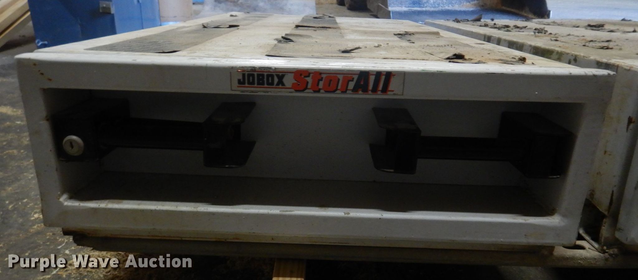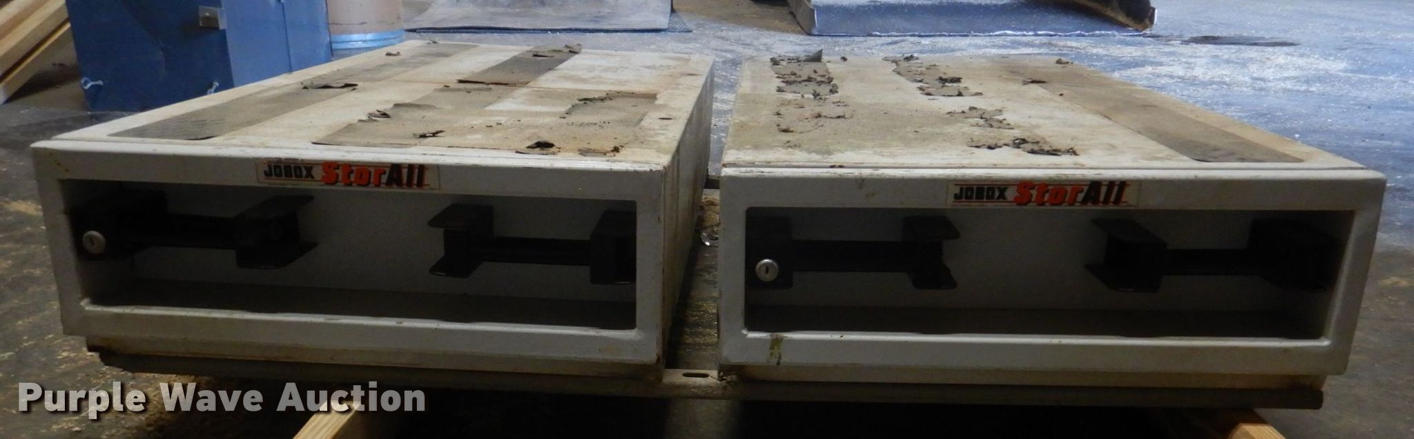 Tool boxes. Highway Products Overall: 102 1/2" L x 71" W, Aluminum truck bed box, (2) side boxes w/ tool dividers, Center box, Keys included, (2) JOBOX 662980 StorAll tool boxes 4' L x 2' W x 9' H, Drawer divider , Keys included. 2106 Hwy 28. Rosebud, MO 63091
