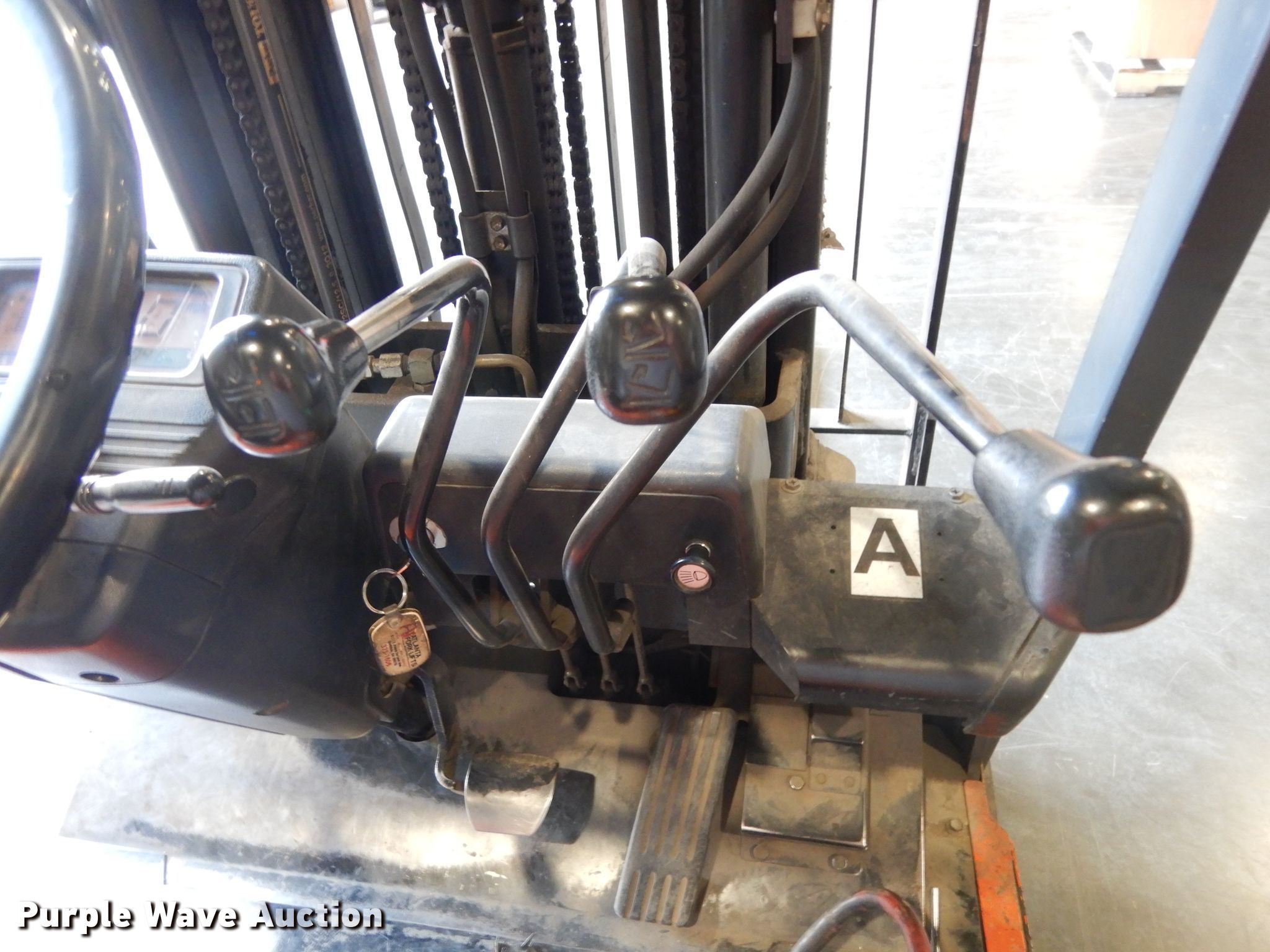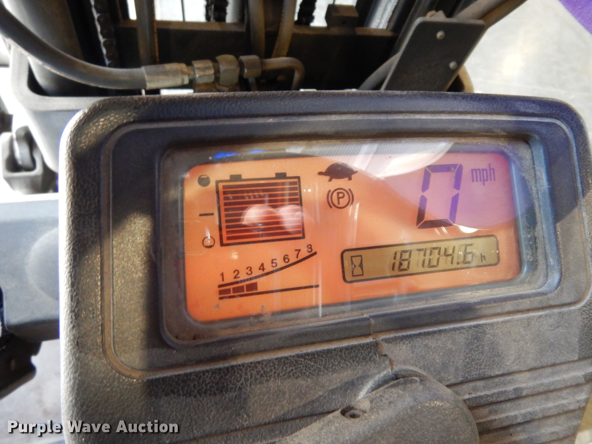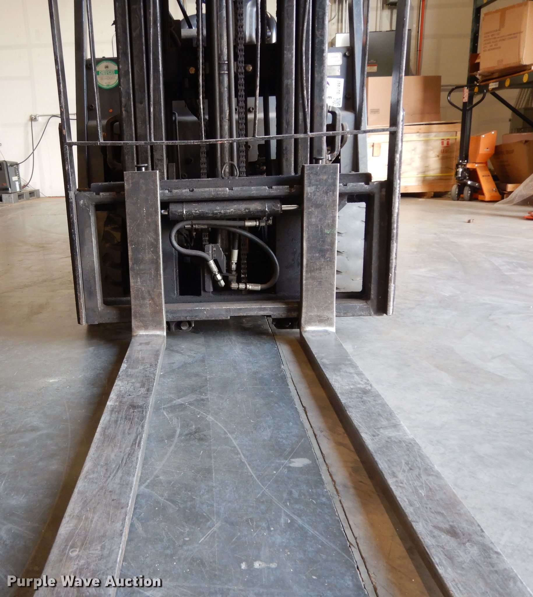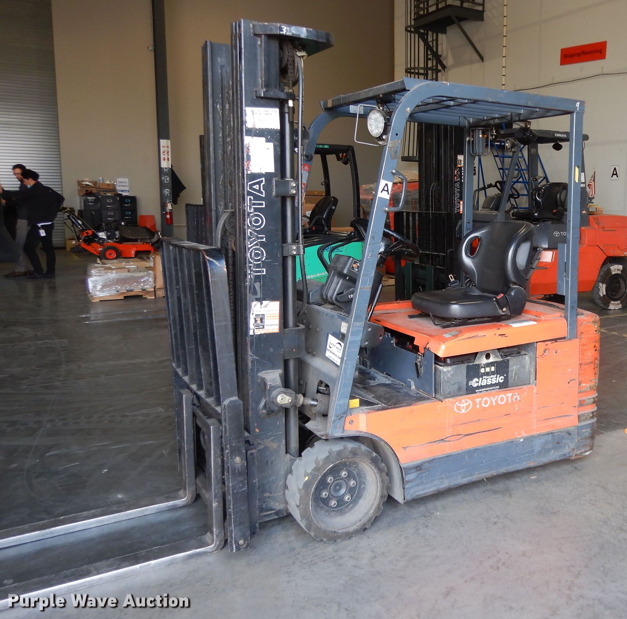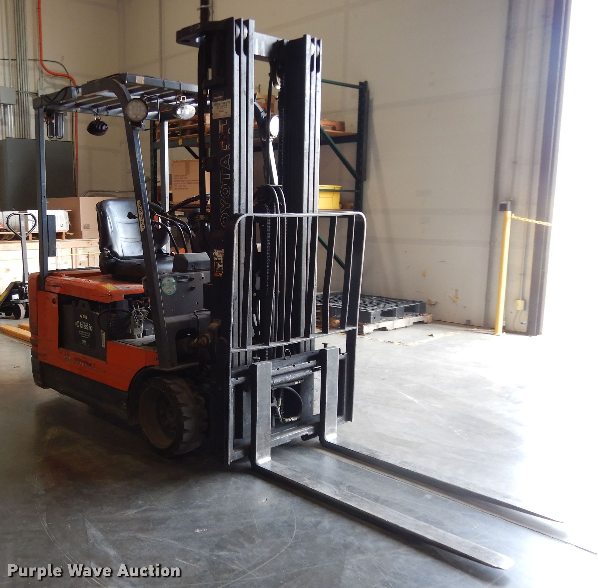 Purple Wave is selling a used Warehouse Forklift in Texas. This item is a Toyota 5FBE18 forklift with the following: Hours: 18,705 on meter, Serial: 32055