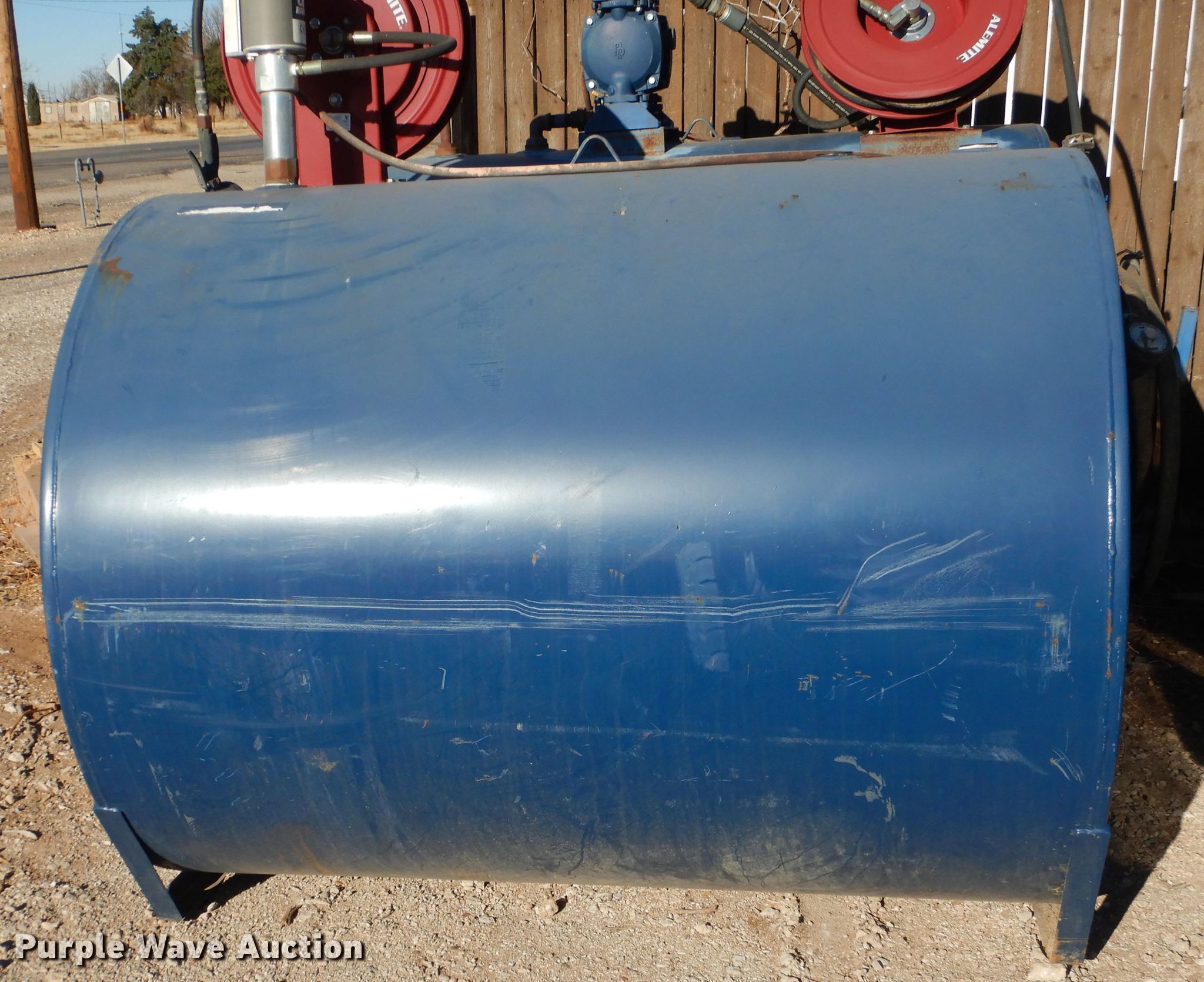Purple Wave is selling a used Fuel and Lube in Texas. This item is a Buffalo hydraulic oil tank with the following: 49" x 61", Capacity: 470 gallons, Unknown operating condition of pump, Unknown operating condition