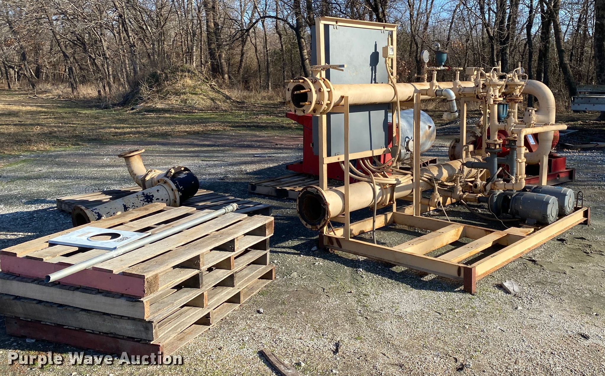 Water pump. (2) Hammond pumps, Lincoln electric motor, Phase: Three Volts: 230/460, HP: 75, Electric motor, Phase: Three Volts: 480, Horizontal pump, Inlet: 8", Outlet: 6", Val-Matic vent PSI: 300, Fire pump controller, Galvanized tank, (2) 8" diameter pipes. Kimery Painting Inc. Glenpool, OK 74033