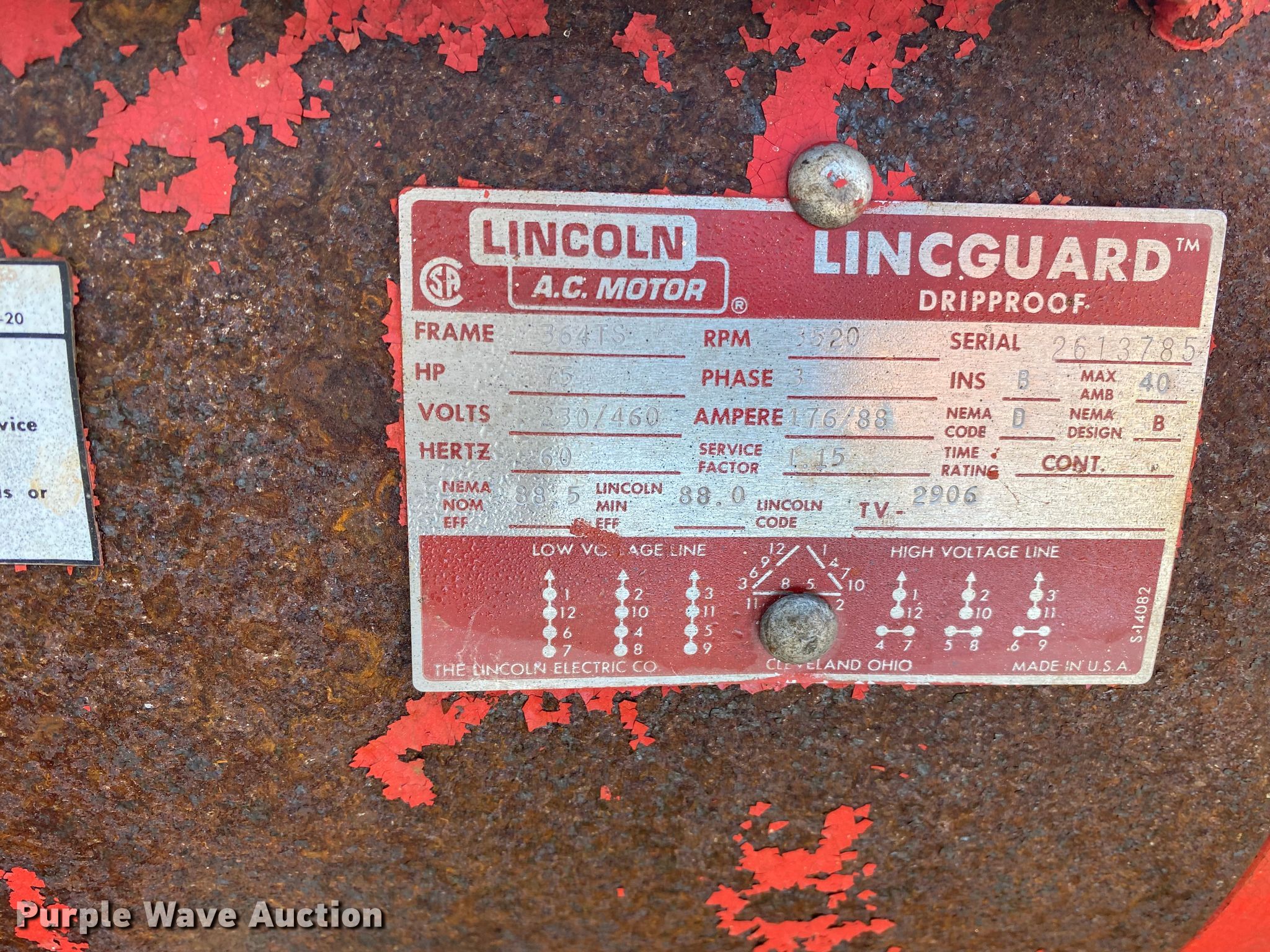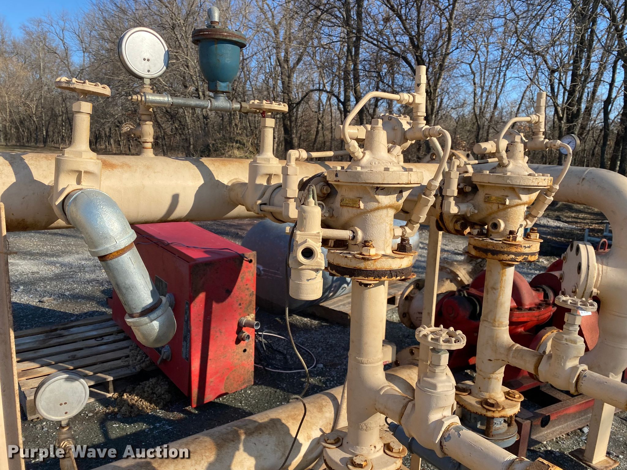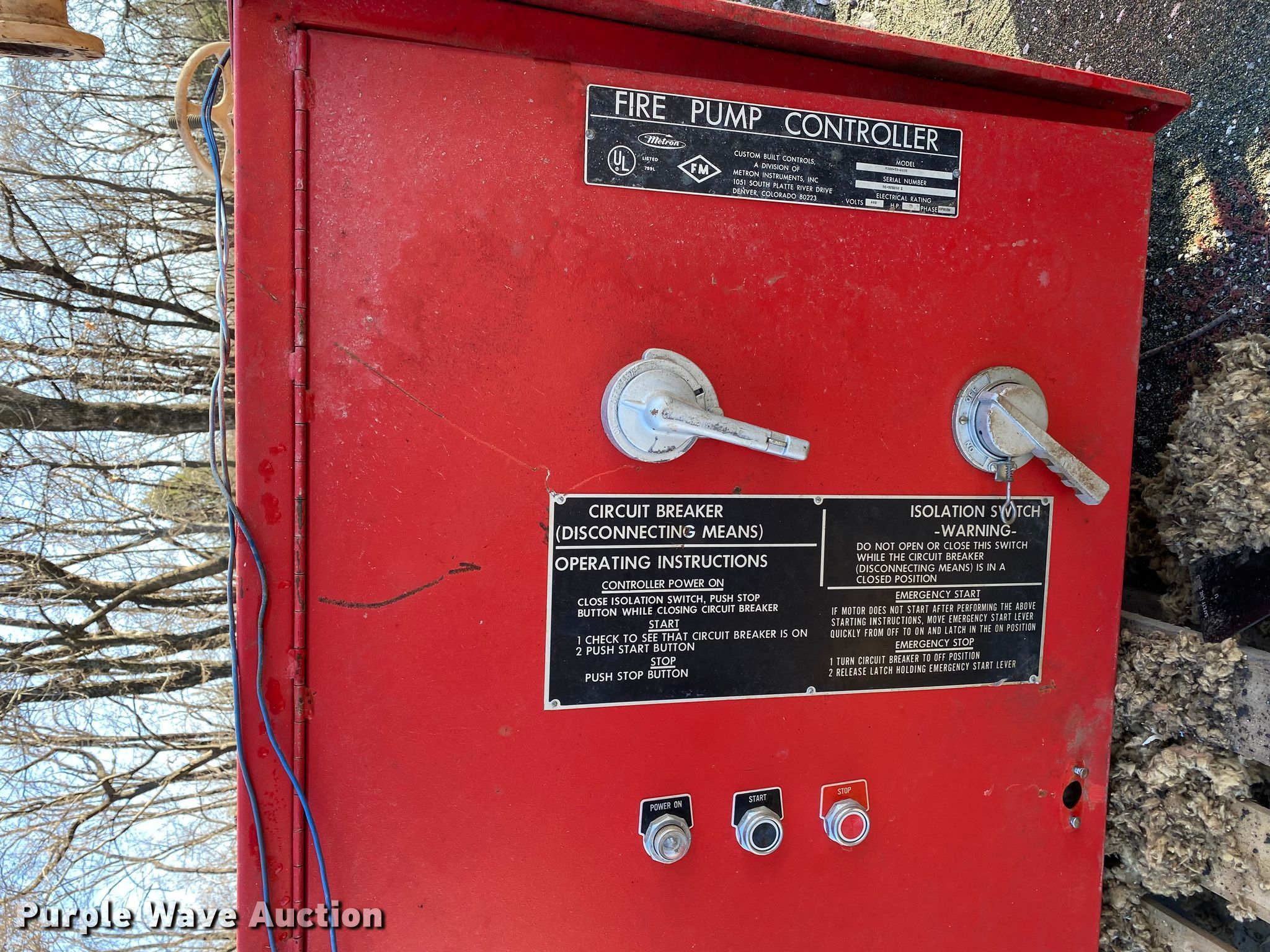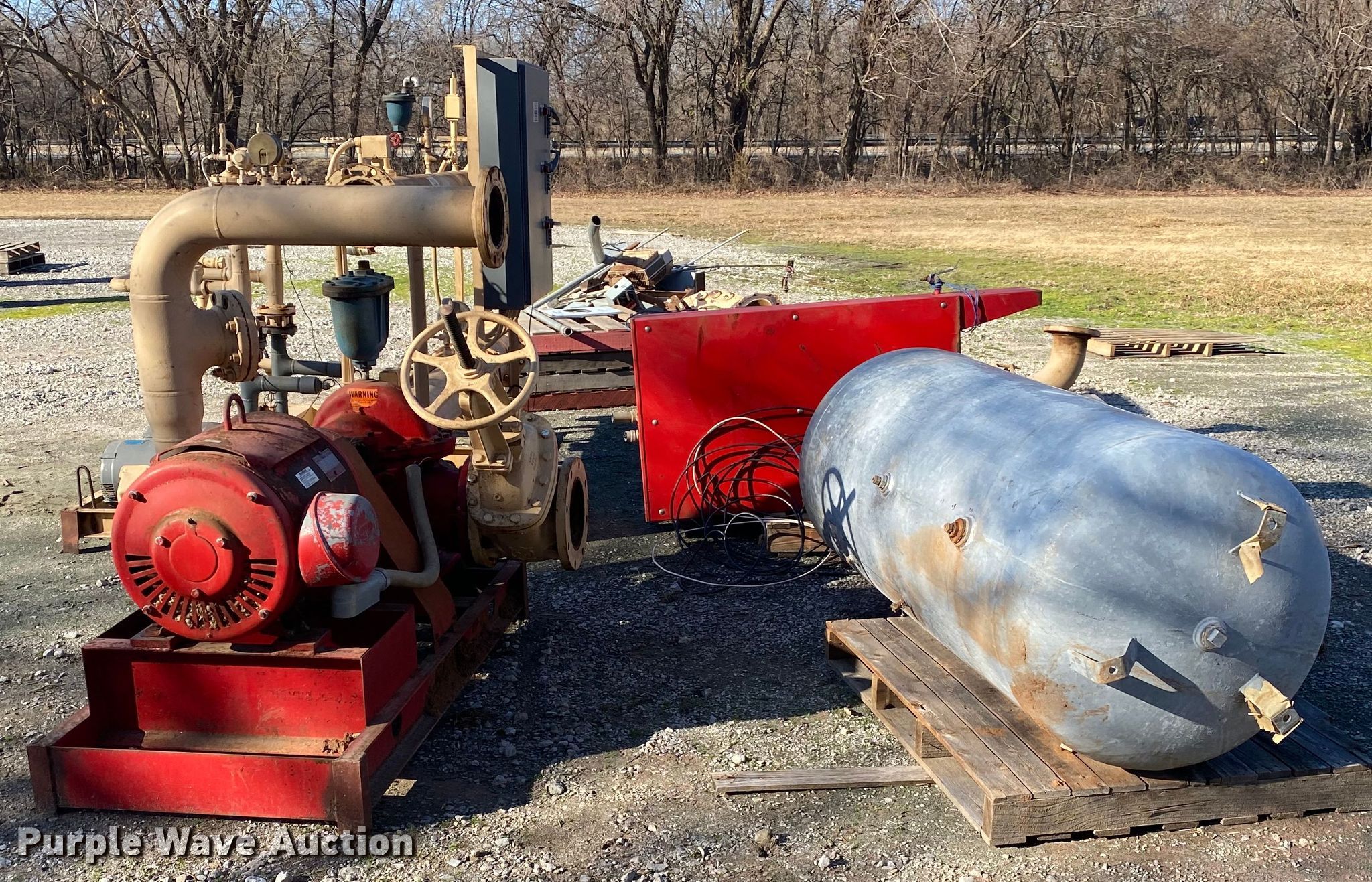 Purple Wave is selling a used Pump in Oklahoma. This item is a Water pump with the following: (2) Hammond pumps, Lincoln electric motor, Phase: Three, Volts: 230/460, HP: 75, Electric motor, Phase: Three, Volts: 480, Horizontal pump, Inlet: 8", Outlet: 6", Val-Matic vent, PSI: 300, Fire pump controller, Galvanized tank, (2) 8" diameter pipes