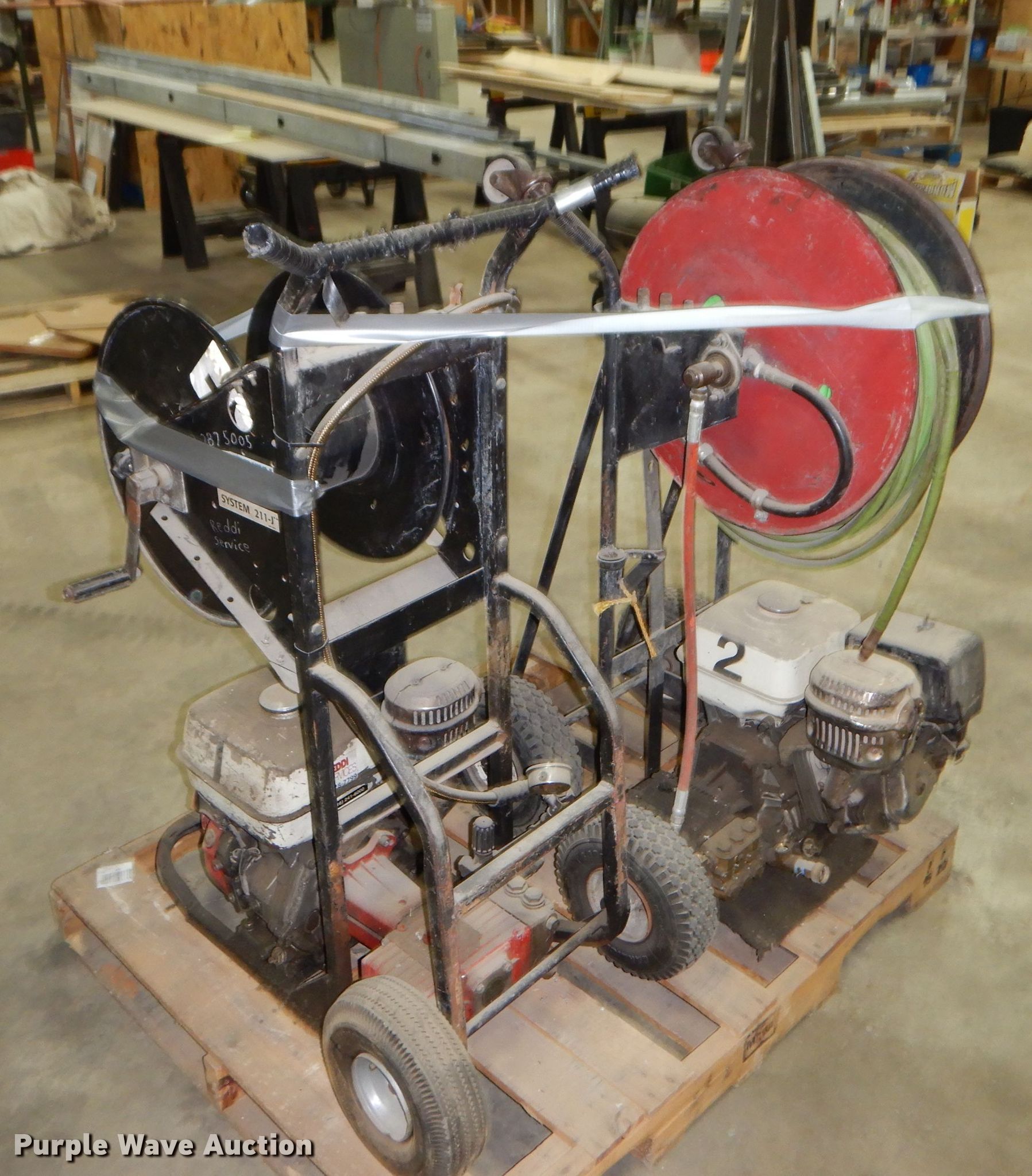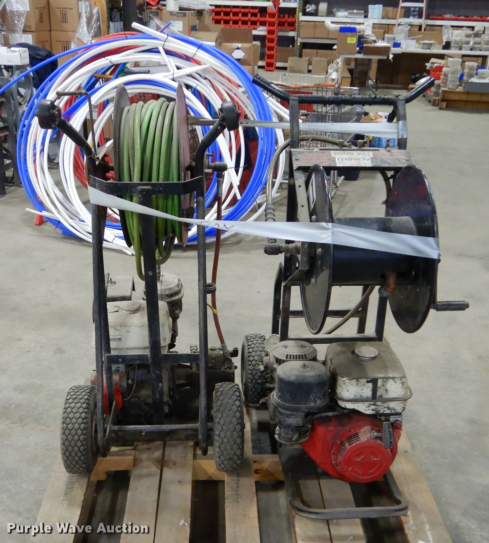 (2) Sewer jetter. Honda engine, Reel , Partial hoses, Transport cart. Notes Non-operational unit. Reddi Services. 4011 Bonner Industrial Dr. Shawnee, KS 66226