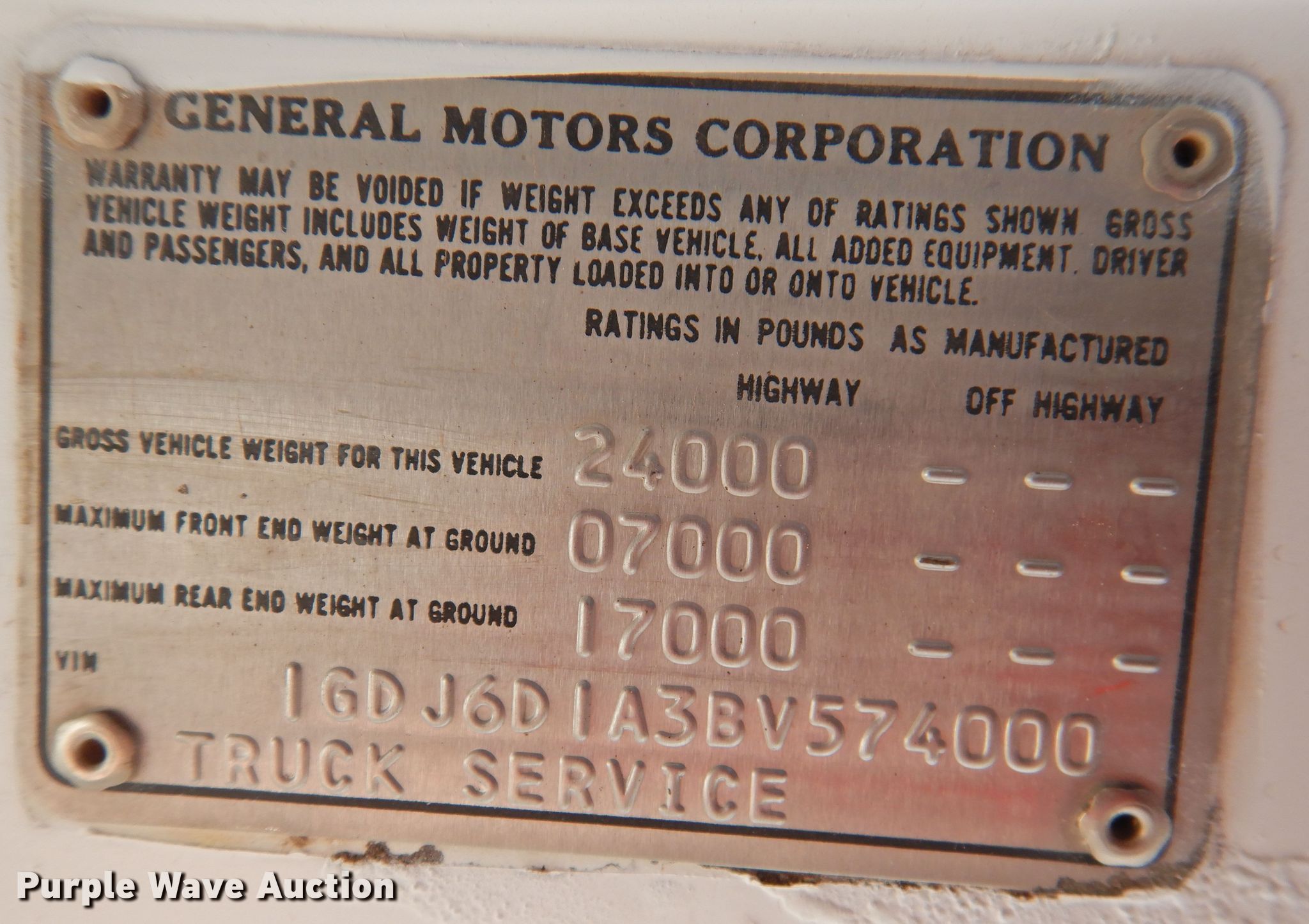 - VIN: 1GDJ6D1A3BV574000