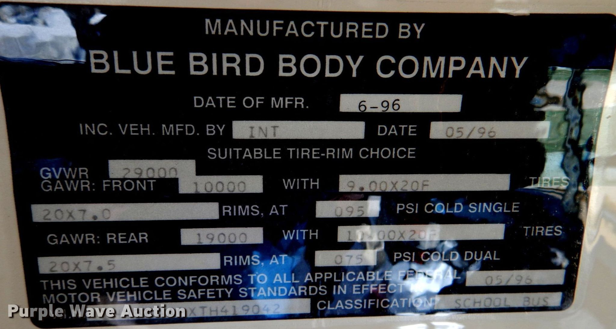 Purple Wave is selling a used Bus in Kansas. This item is a 1996 International 3800 school bus with the following: Miles: 87,641 on odometer, Hours: 4,216 on meter, VIN: 1HVBBAAPXTH419042