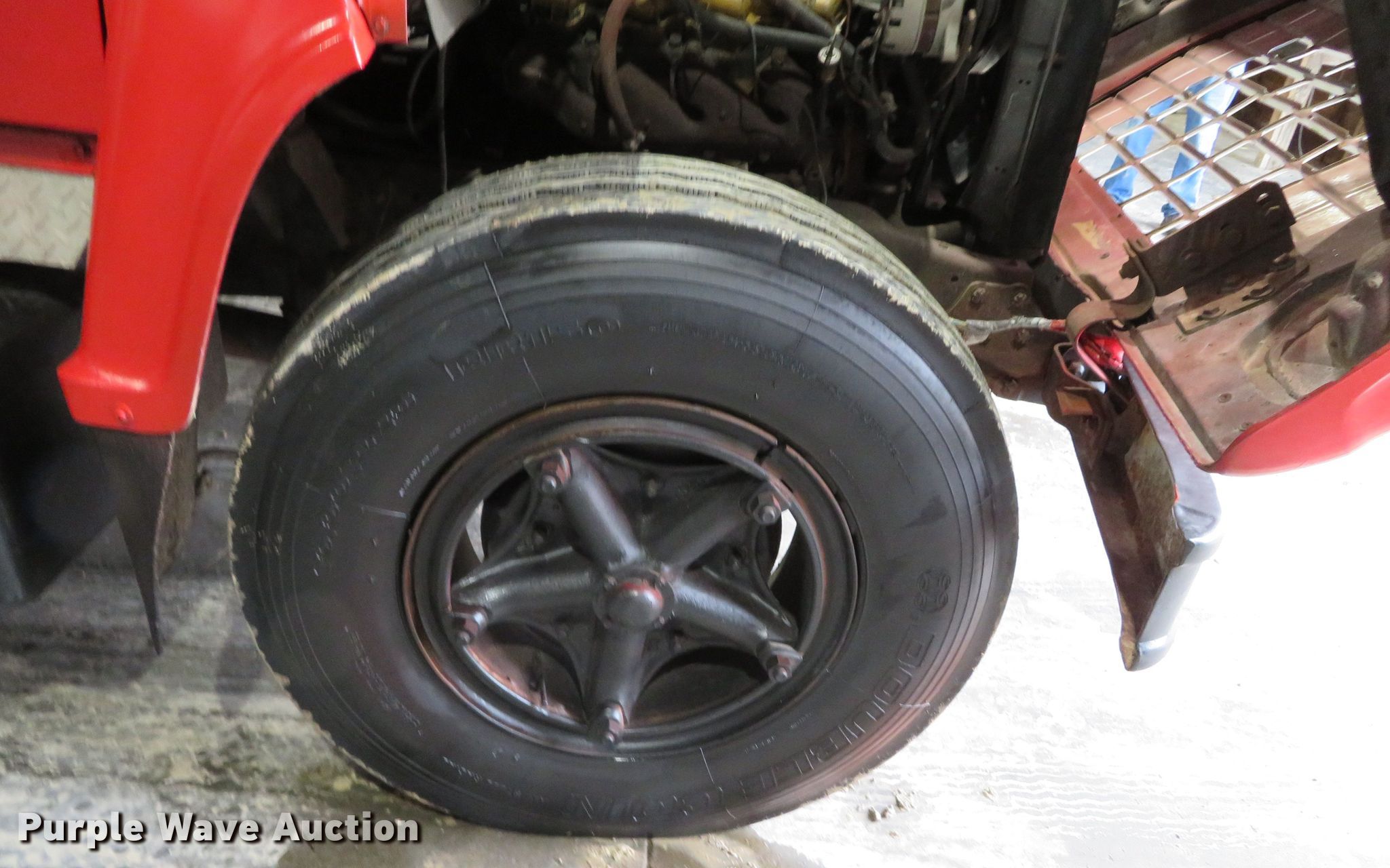 1980 Ford 7000 scissor lift truck. Miles: 56,860 on odometer, VIN: R70UVJD8561. Engine Caterpillar 3208, Cylinders: 8, Fuel type: Diesel. Transmission Manual, Speed: 5, plus 2. Chassis Axles: Single, Suspension: Spring, Brakes: Hydraulic, GVWR: 23,000 lbs, Wheelbase: 184". Interior Heat. Operational Scissor lift bed Marion, 14' L x 8' W, Max lift: 11'6", Ram: Double. Tires Front: 10.00R20, Rear: 10.00-20. Missouri title. Title distribution may be delayed up to 14 days from verification of funds. Foeste Masonry, Inc.. 2525 MO-177. Cape Girardeau, MO 63701