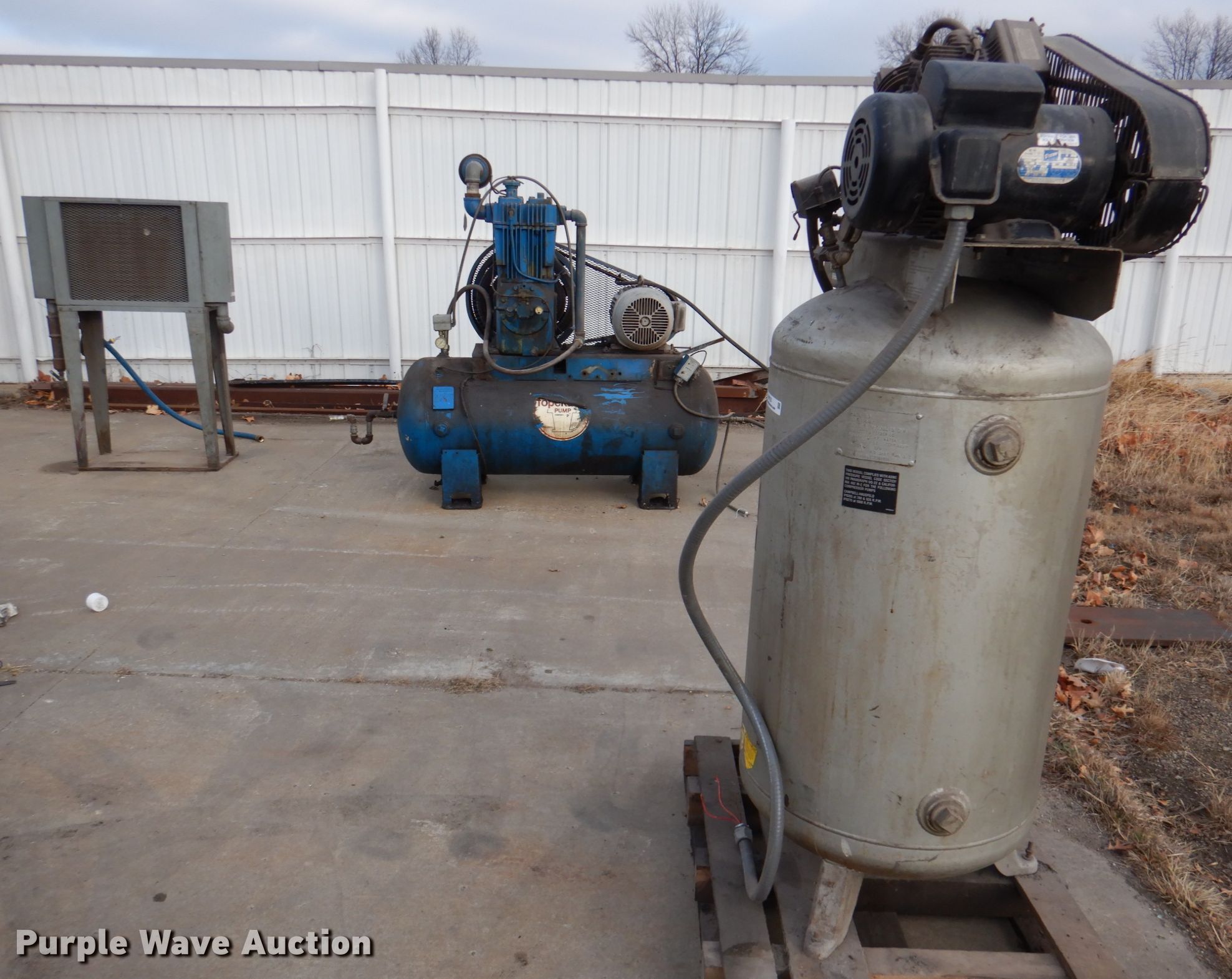 Purple Wave is selling a used Tools in Kansas. This item is a Air compressors with the following: Campbell Hausfeld SS5 air compressor, Volts: 108, HP: 5, Quincy 39020 air compressor, Capacity: 120 gallons, Phase: Three, HP: 20, Dating 3Z743 air dryer, Unknown operating conditions