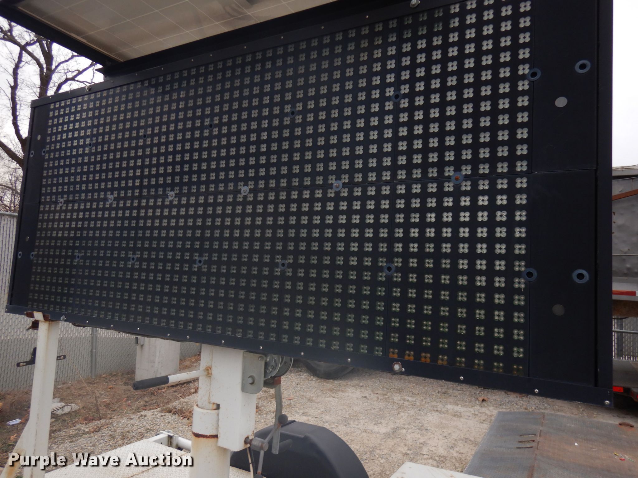 Purple Wave is selling a used Road Safety Equip. in Iowa. This item is a Trafcon message board trailer with the following: 95" x 41" message board, Sharp ND-L3E1U solar module, 13'L x 82"W trailer, 8'L x 5'W deck, 205/75R15 tires, Controller missing