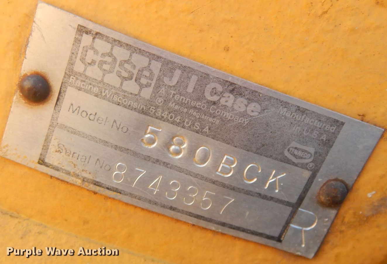 1974 Case 580B Construction King tractor. Hours: 1,598 on meter, Serial: 8743357. Engine Cylinders: 4, Fuel type: Diesel. Transmission Manual, 4F - 4R, Left-hand reverser. Operational PTO: 540, Hydraulic remote sets Rear: 1. Tires Front: 7.50-16, Rear: 14.9-24. Notes PTO seal leak. View repairs. 3116 US Hwy 59. Marshall, MN 56258