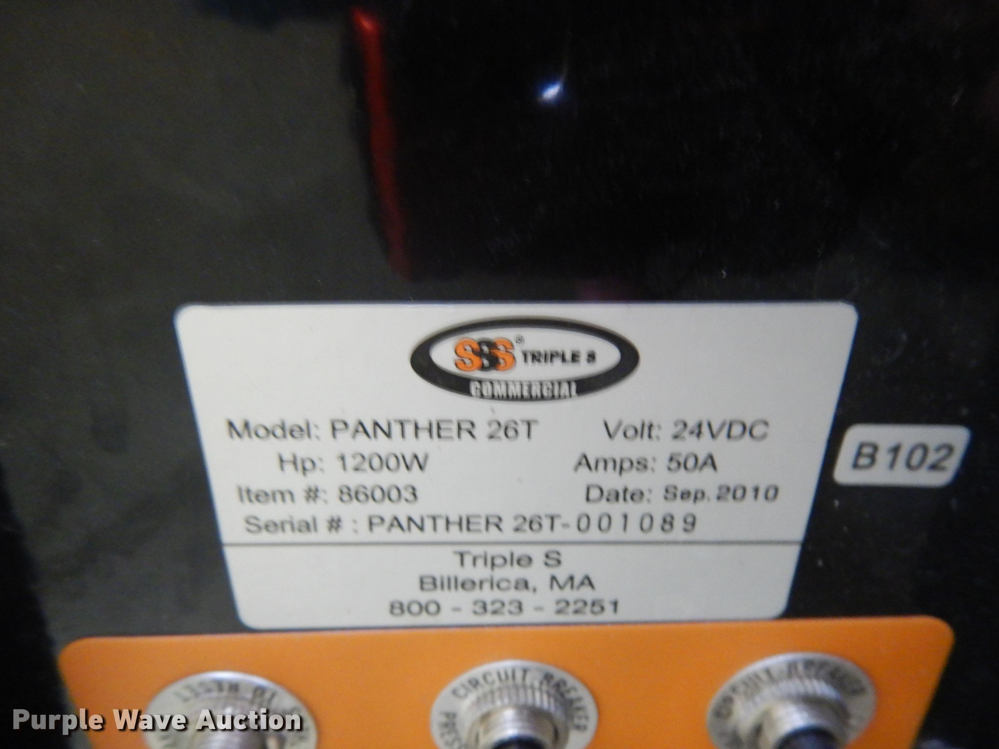 Purple Wave is selling a used All Other Household Items in Iowa. This item is a 2010 Triple S Panther 26T floor scrubber with the following: Serial: 001089, Watts: 1,200, 24VDC, Amps: 50