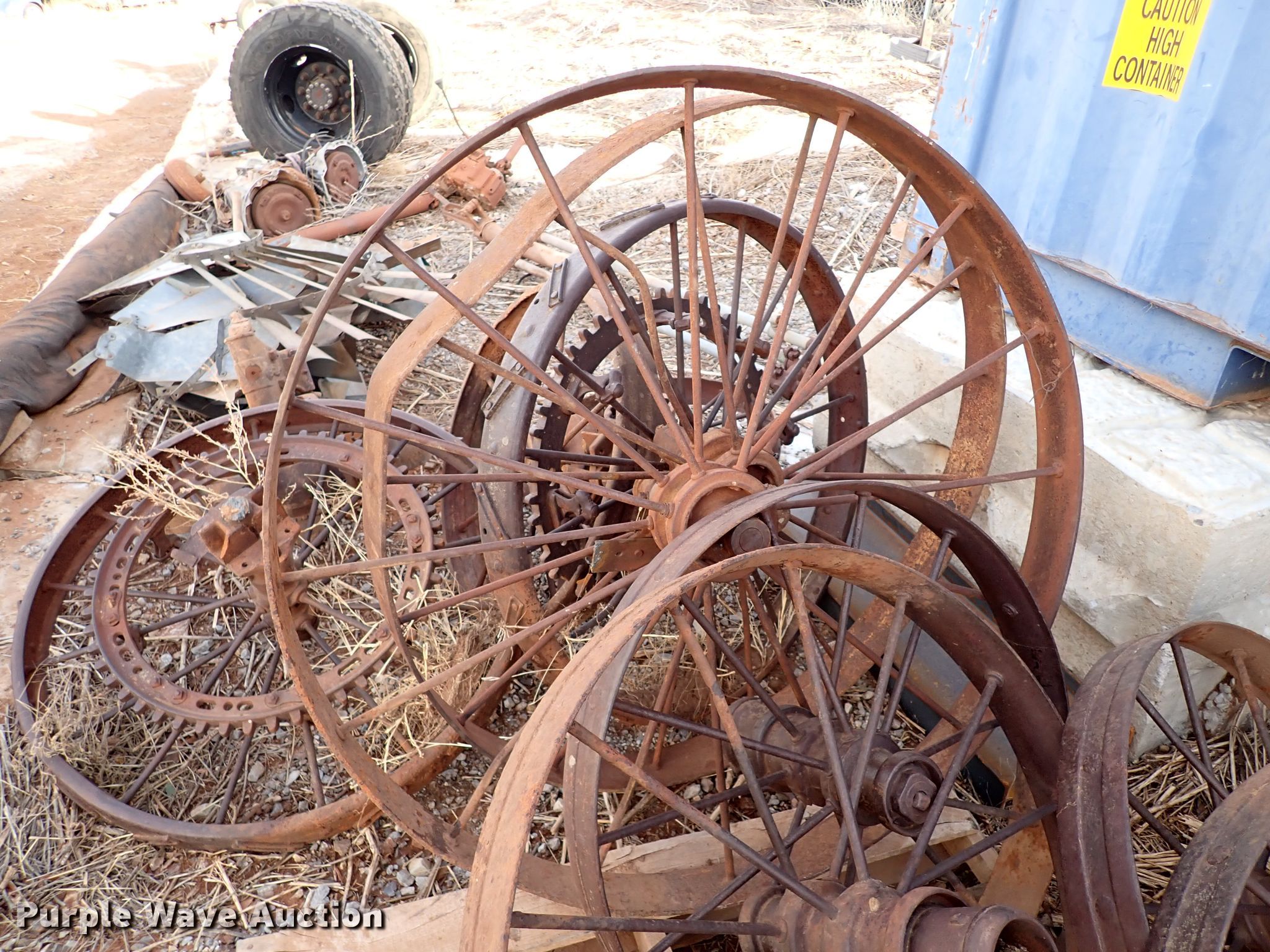 Purple Wave is selling a used Ag Equip. Other in Oklahoma. This item is a Approximately 8 wagon wheels with the following: Approximately 8 wagon wheels. Weatherford, OK 73096