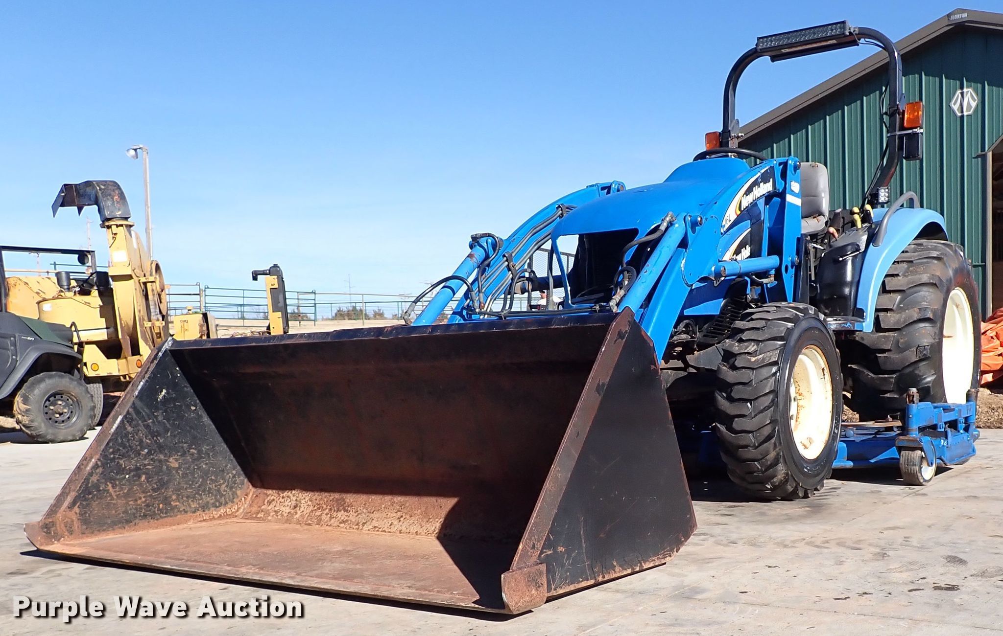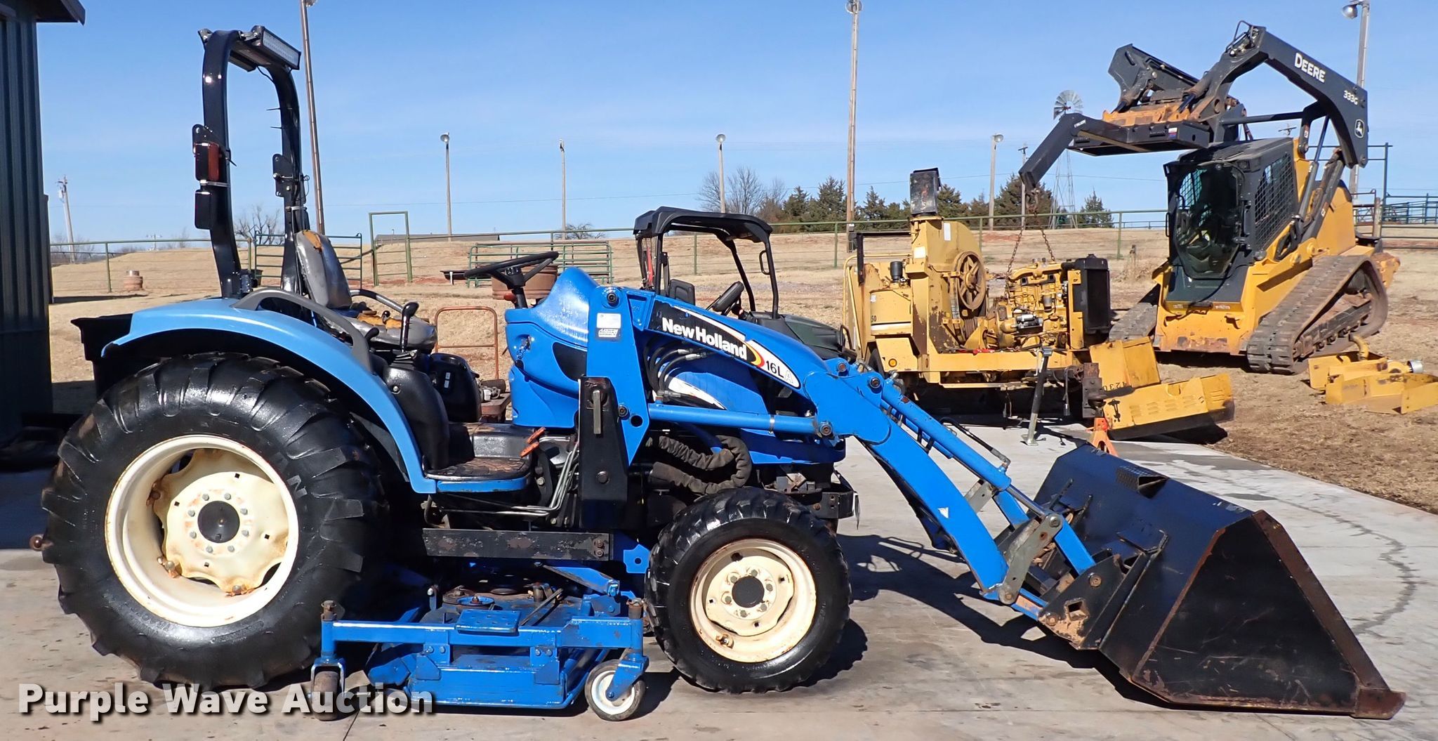 New Holland TC40DA MFWD tractor. Hours: 1,976 on meter, Serial: G612141. Engine Shibaura 42614, Displacement: 1.995L, Cylinders: 4, Fuel type: Diesel. Transmission Hydrostatic, 2F - 2R. Operators station Lightbar. Operational PTO: 540, Three point, Loader New Holland 16LA, Quick attach, Controls: Joystick, Bucket Width: 72", Mower deck Width: 84". Tires Front: 10-16.5 NHS, Rear: 17.5L24. 17100 S Air Depot Blvd. Norman, OK 73026