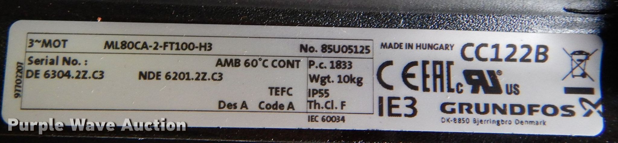 Purple Wave is selling a used Pump in Kansas. This item is a Grundfos vertical centrifugal pump with the following: 29" L, Three phase, 220/440v