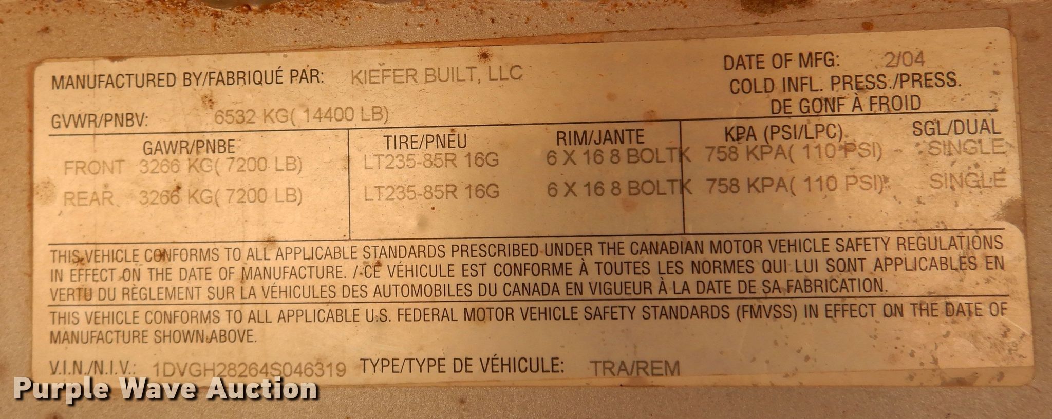 Purple Wave is selling a used Livestock Trailer in Oklahoma. This item is a 2004 Kiefer Built Genesis X-480 livestock trailer with the following: VIN: 1DVGH28264S046319, Claim# 1-816537