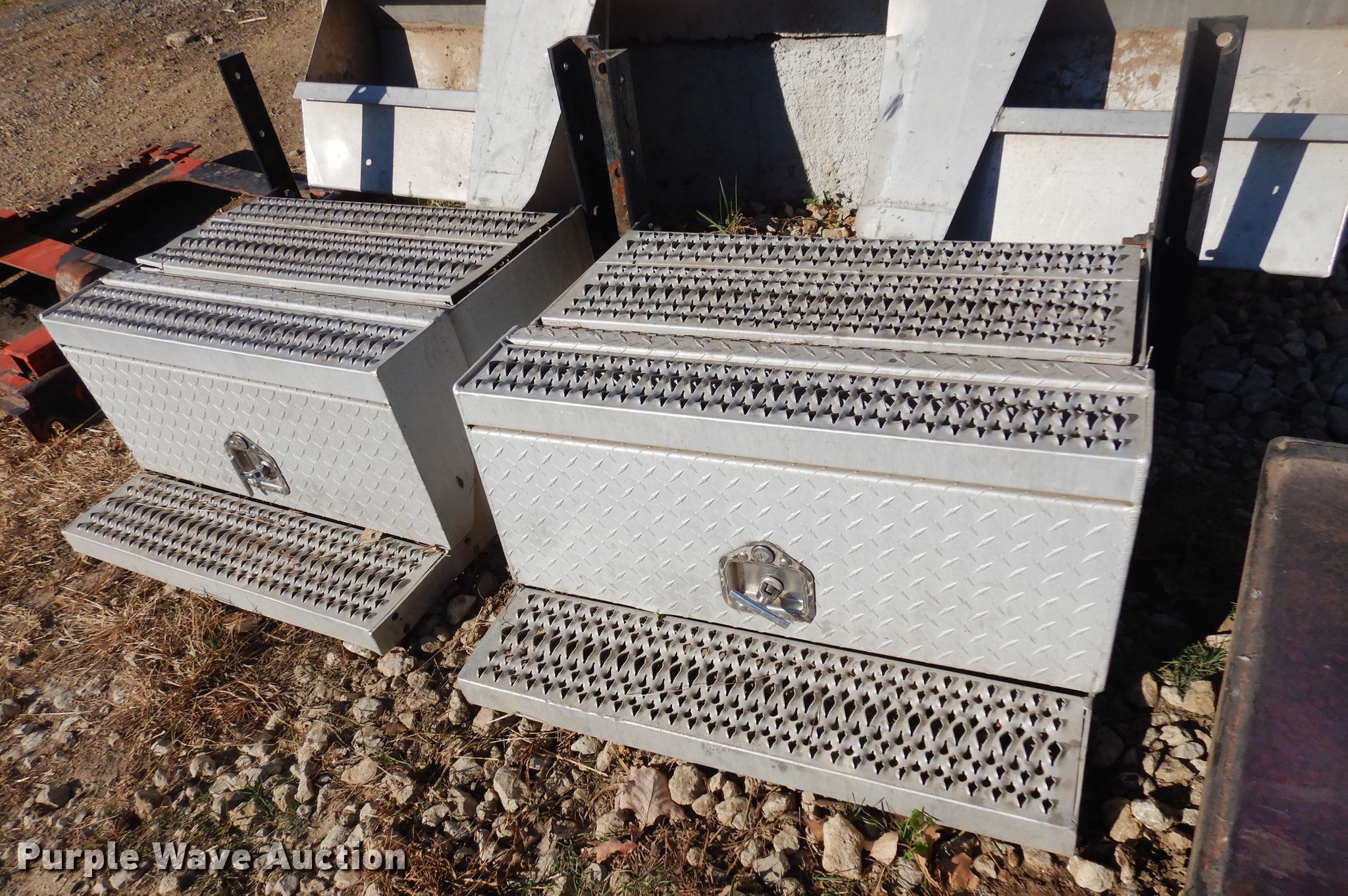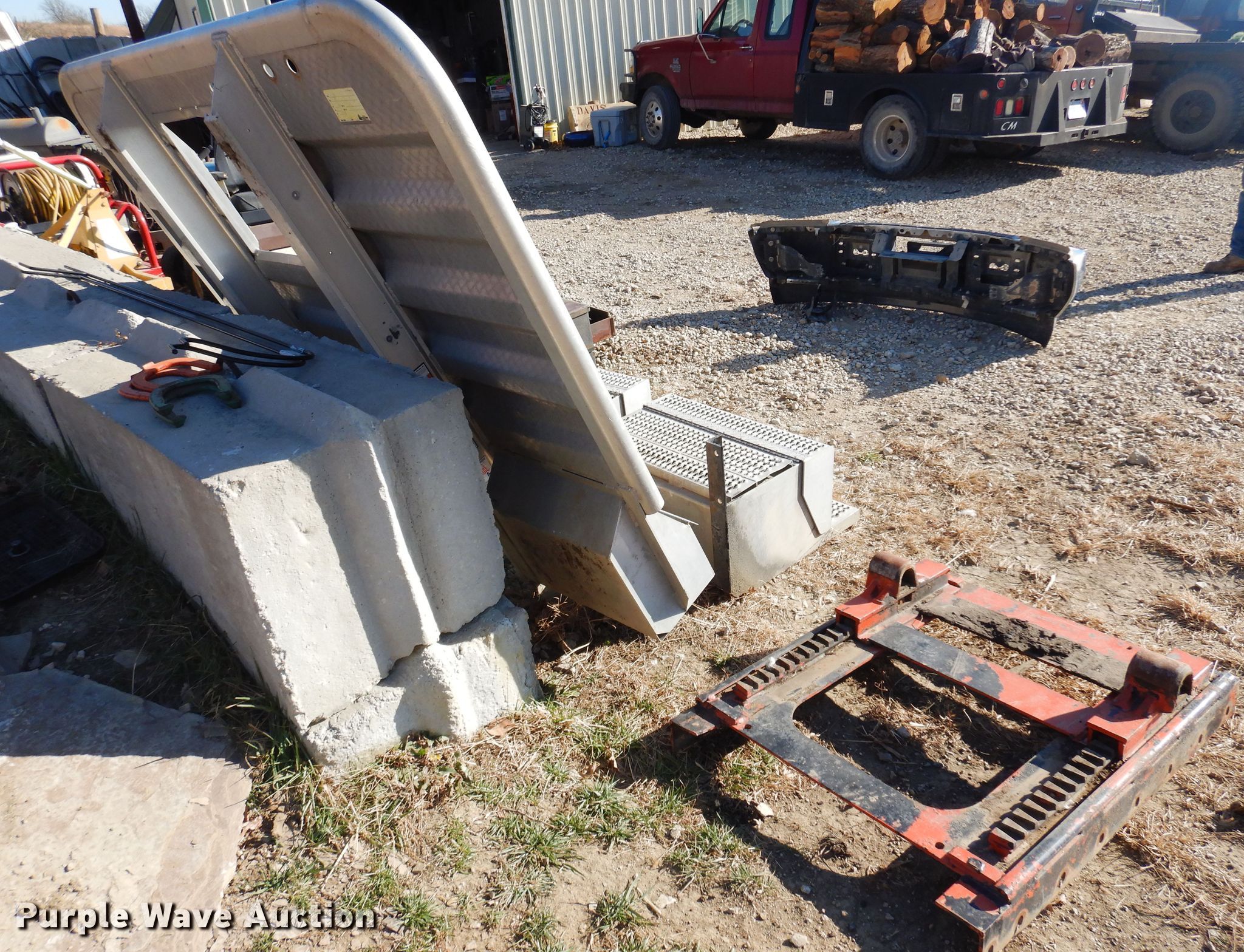 Purple Wave is selling a used Truck Part and Attach. in Kansas. This item is a Truck parts with the following: Merritt headache rack, 86" H x 66" W, 35" frame spacing, Toolboxes, 31" L x 19.5" L x 15" H, Sliding fifth wheel hitch, 43" L x 35" W