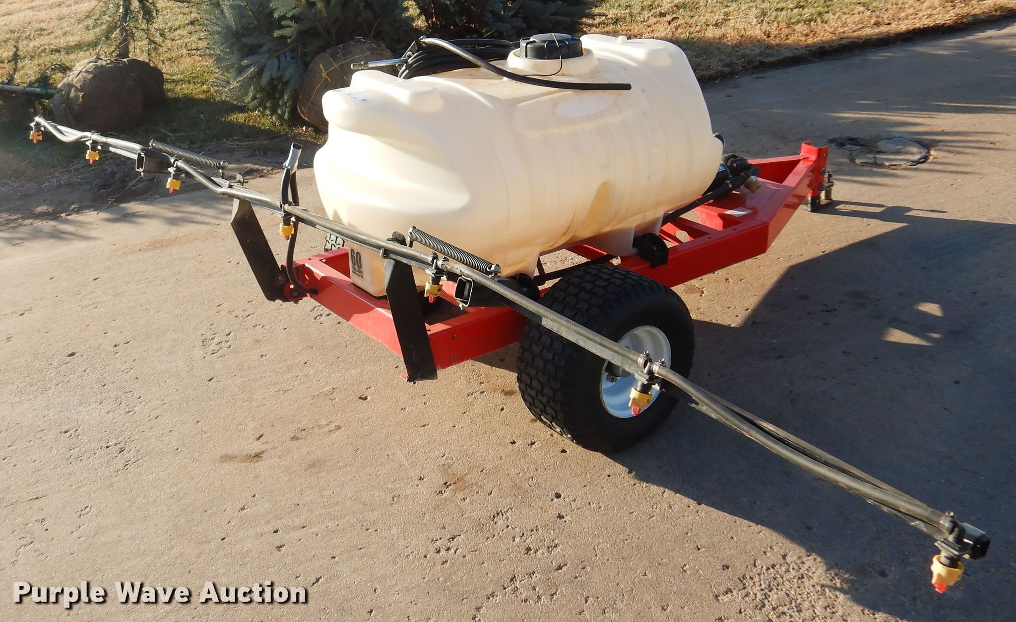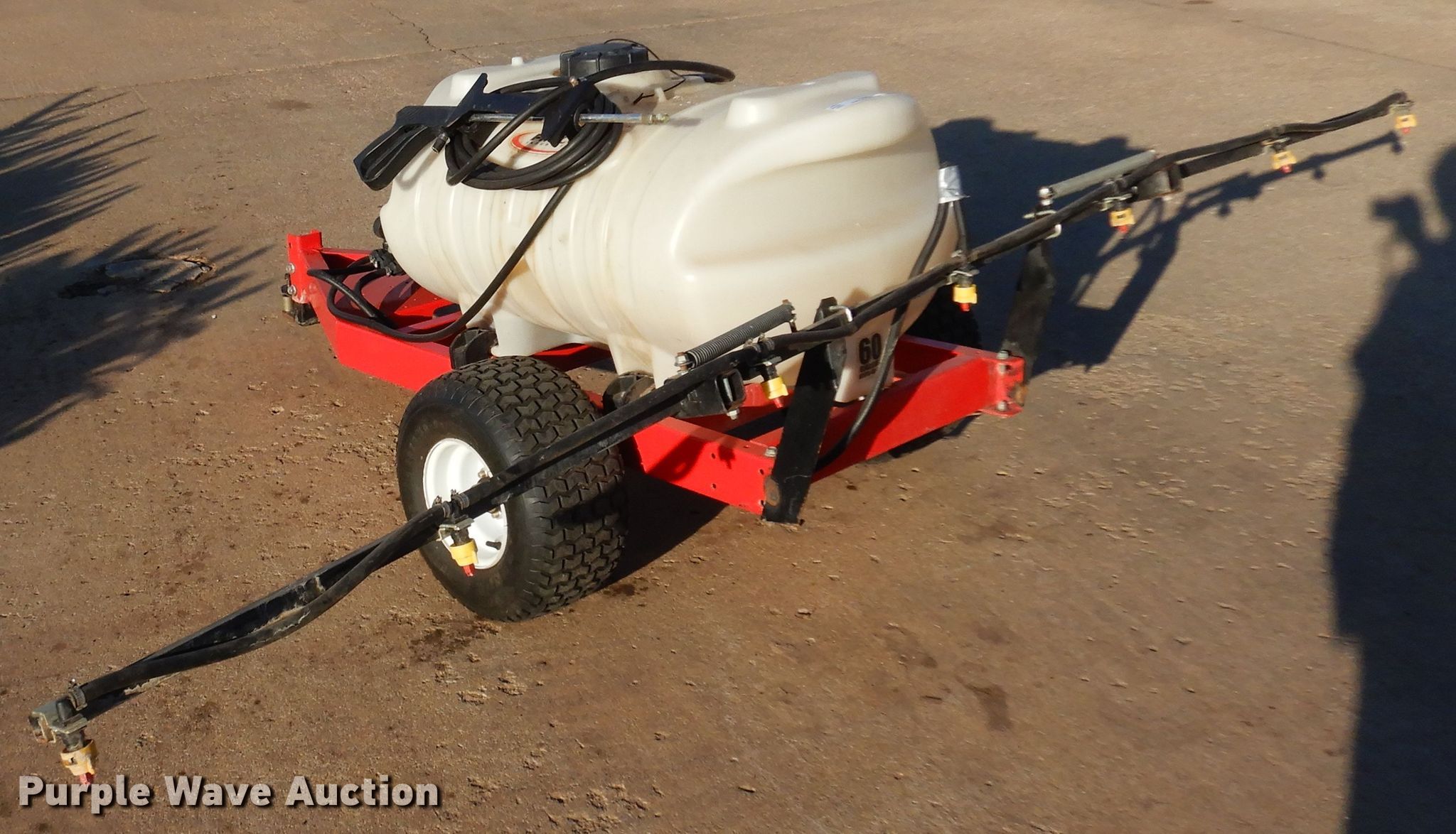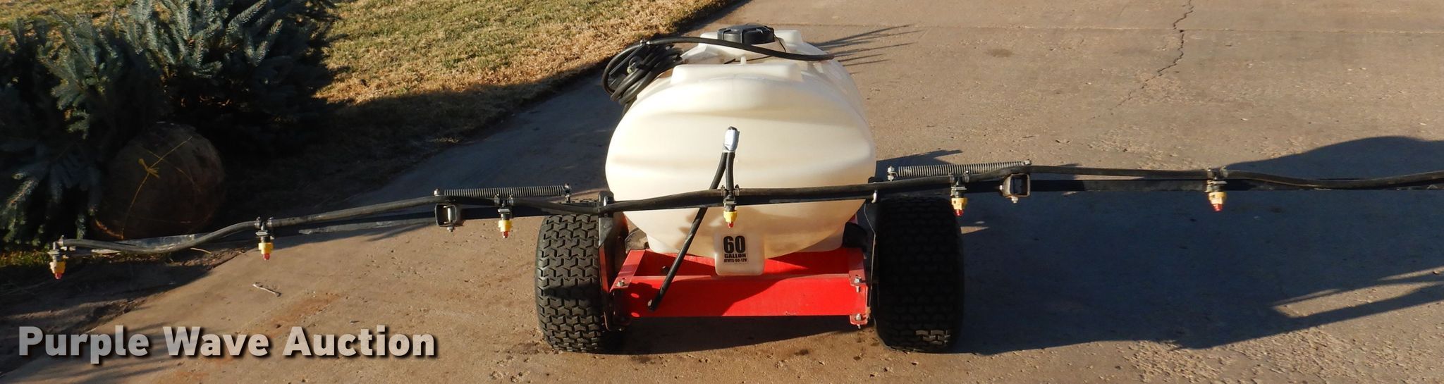 Purple Wave is selling a used Turf Sprayer in Kansas. This item is a Fimco turf sprayer with the following: Solution tank, Capacity: 60 gallons, Type: Poly, Boom, Width: 10', Sections: 3, Nozzles, Nozzle bodies: Single,