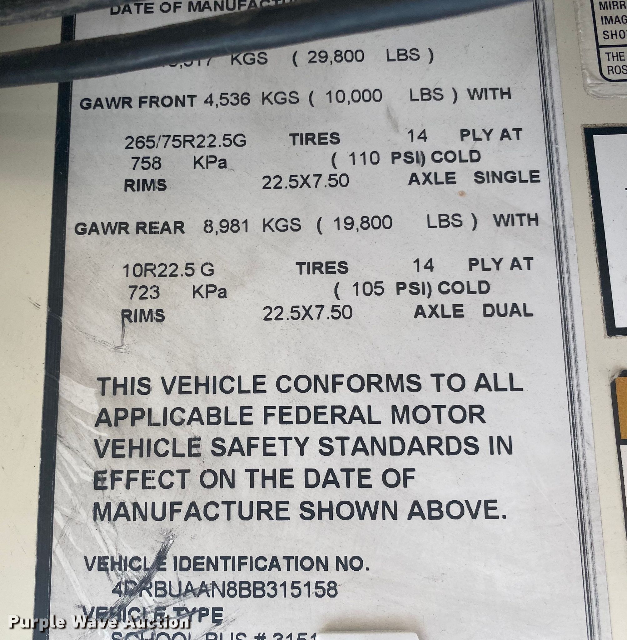 Purple Wave is selling a used Bus in Oklahoma. This item is a 2011 IC school bus with the following: Miles: 100,630 on odometer, Hours: 7,409 on meter, VIN: 4DRBUAAN8BB315158