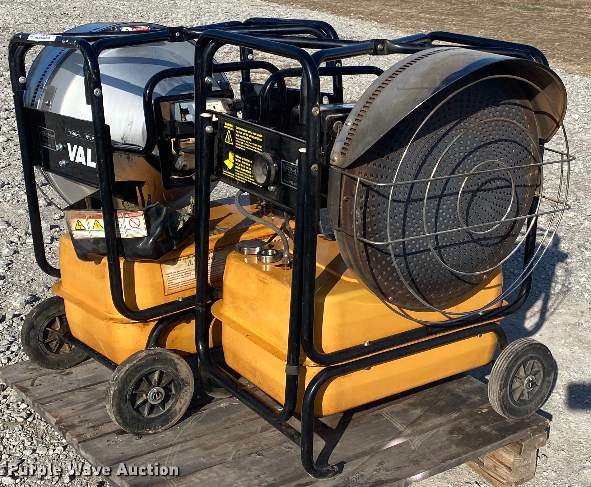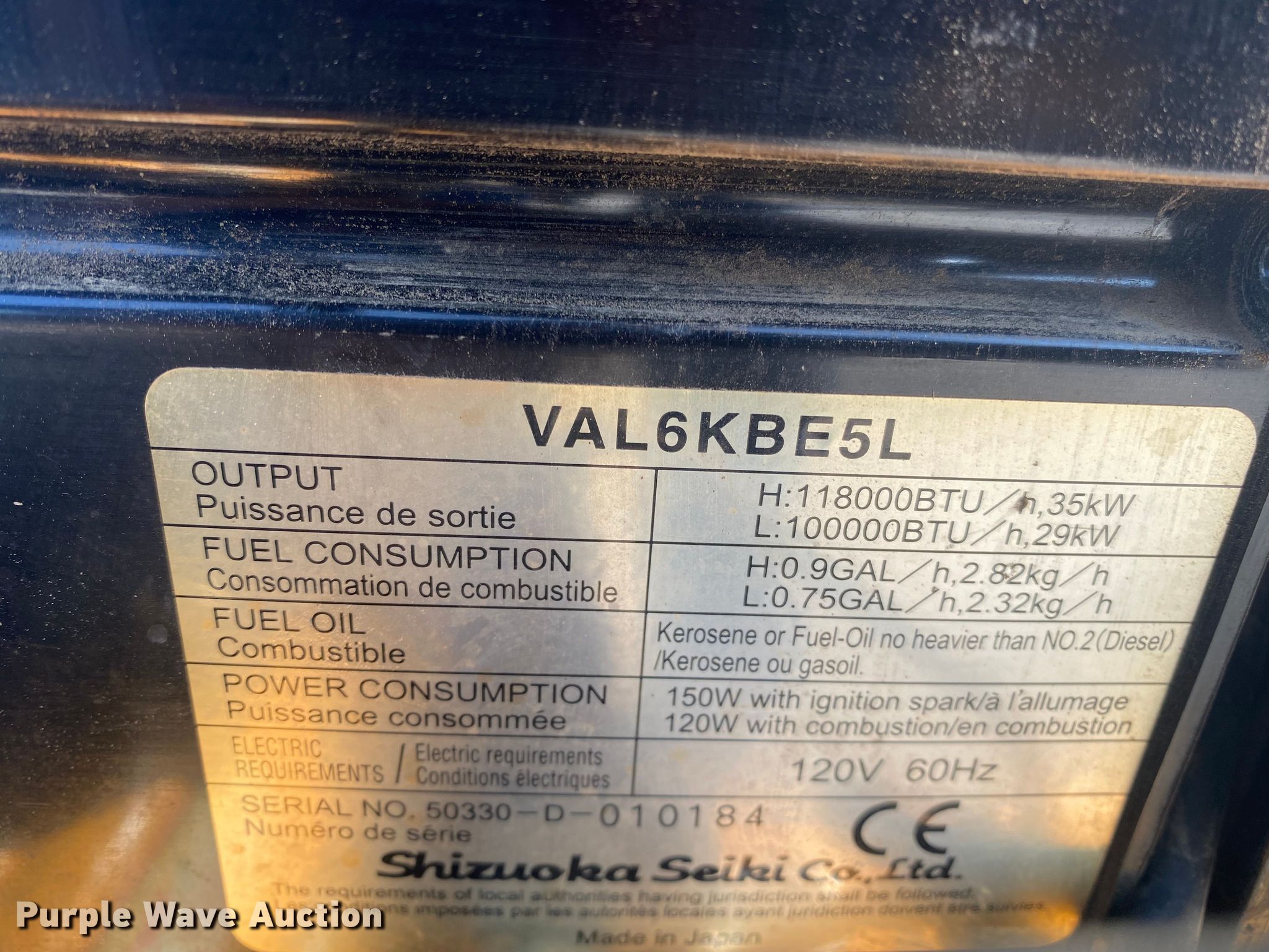 Purple Wave is selling a used Portable Heater or Fan in Oklahoma. This item is a (2) Shizouka Seiki Co. Ltd VAL6 heaters with the following: Kerosene fired, 118,000 BTU