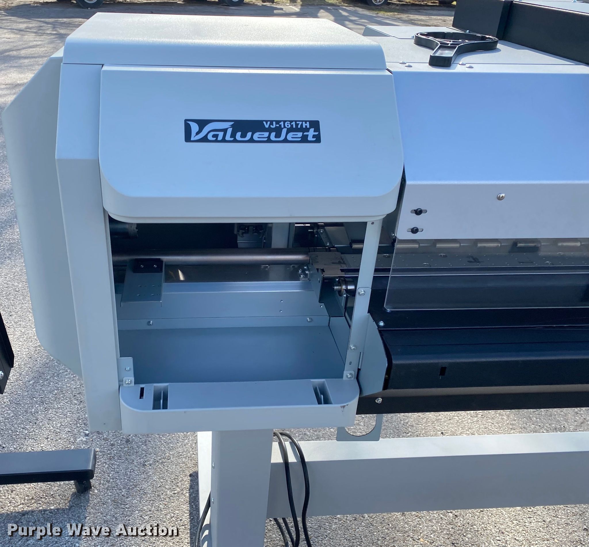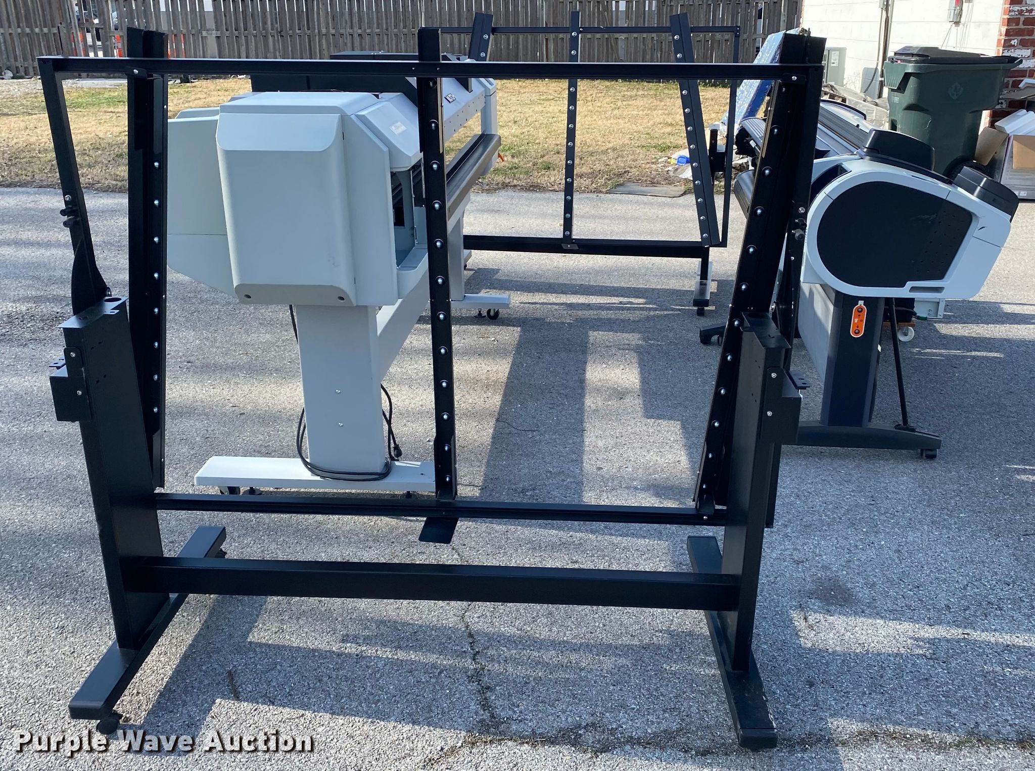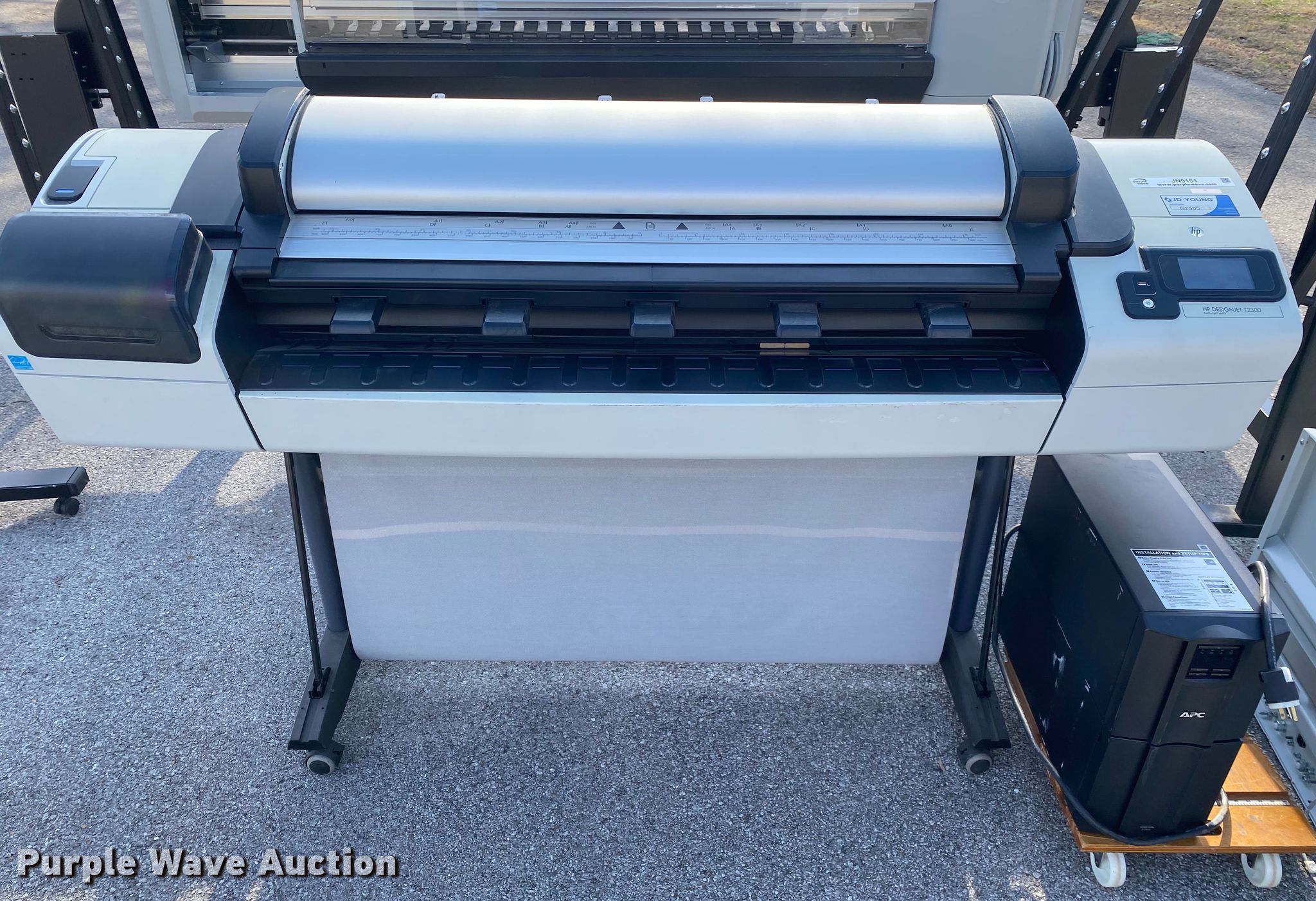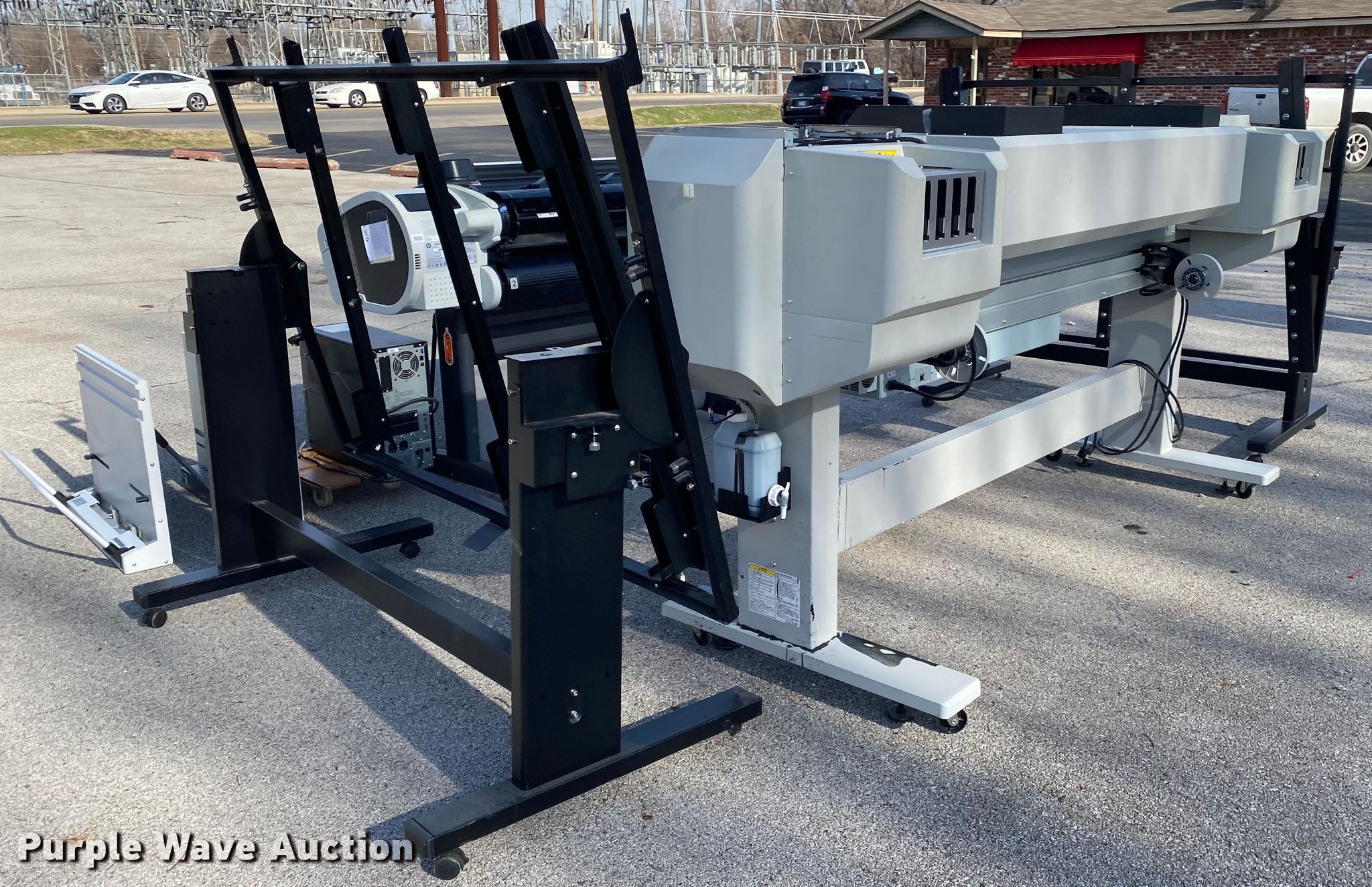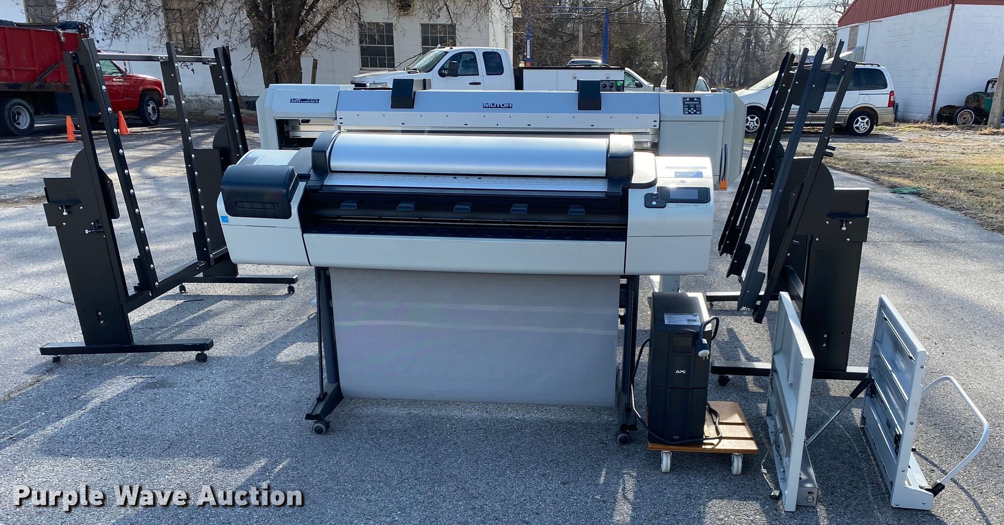 Purple Wave is selling a used Office Supplies and Equip. in Oklahoma. This item is a Office equipment with the following: HP Designjet T2300, Mutoh VJ-617H, (2) stands, (2) shelves, APC battery backup