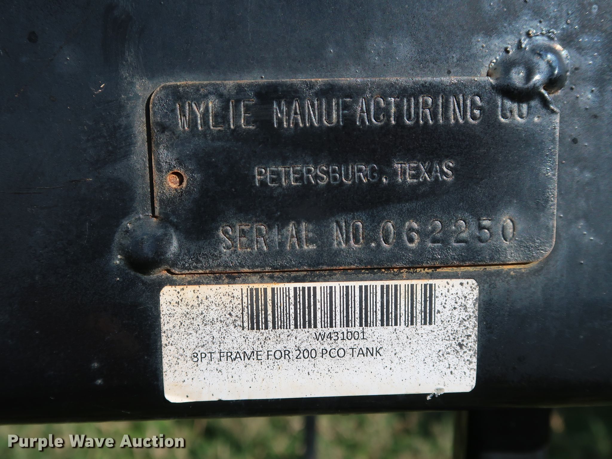 Purple Wave is selling a used Applicator Attach. in Oklahoma. This item is a Wylie 200 sprayer with the following: 200 gallon poly tank, Spray bar, Wand, Hitch: Three point, Serial: 062250
