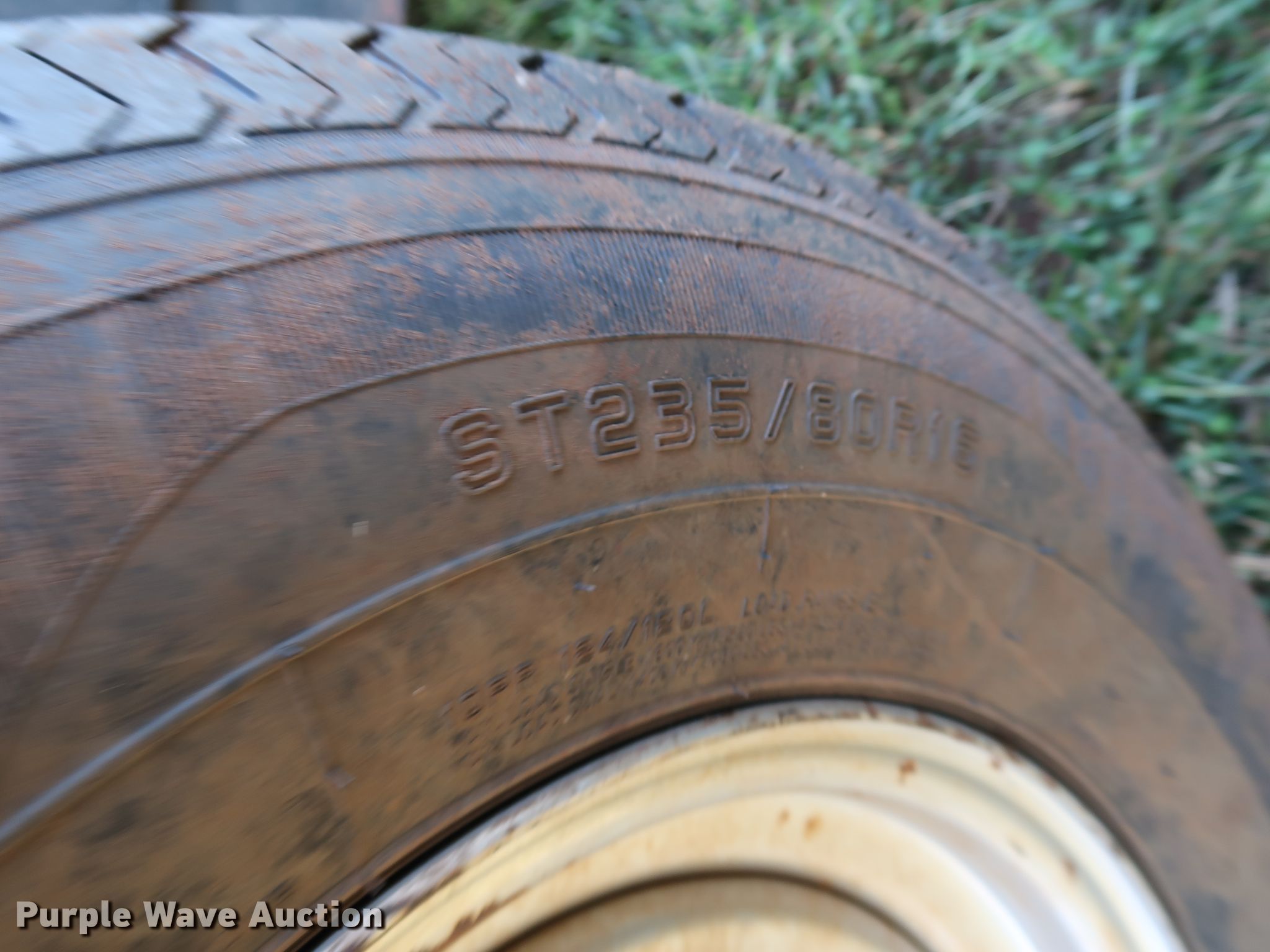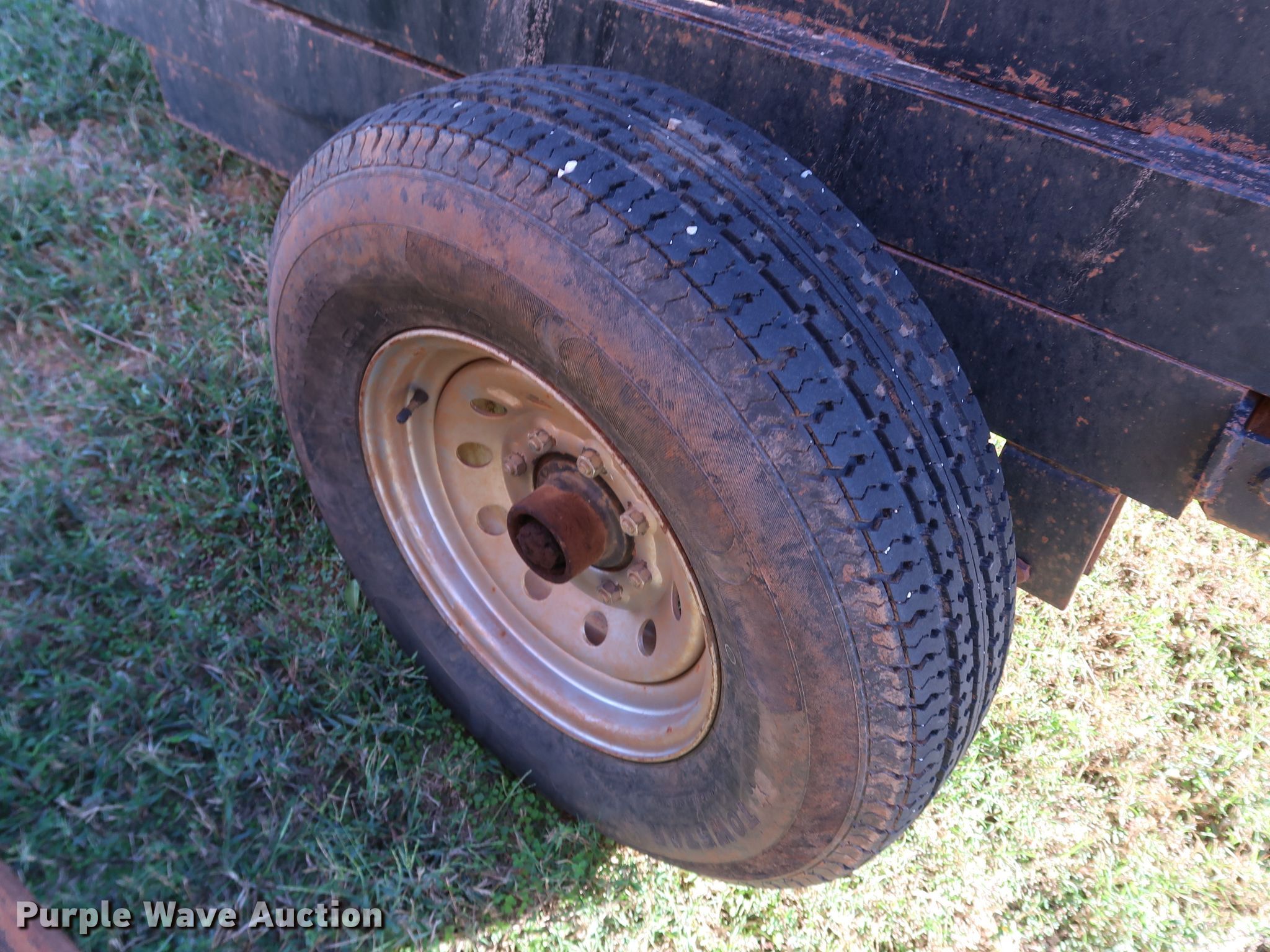 Dump trailer. Dimensions. Overall: 143" L, Body: 99" L x 50" W, Side height: 24", Sideboard height: 7". Operational Ram: Single. Chassis Ball hitch: 2", Suspension: Spring. Tires Size: 235/80R16. Transfer of ownership documentation will be a bill of sale. SBG Services, Inc.. Edmond, OK 73034