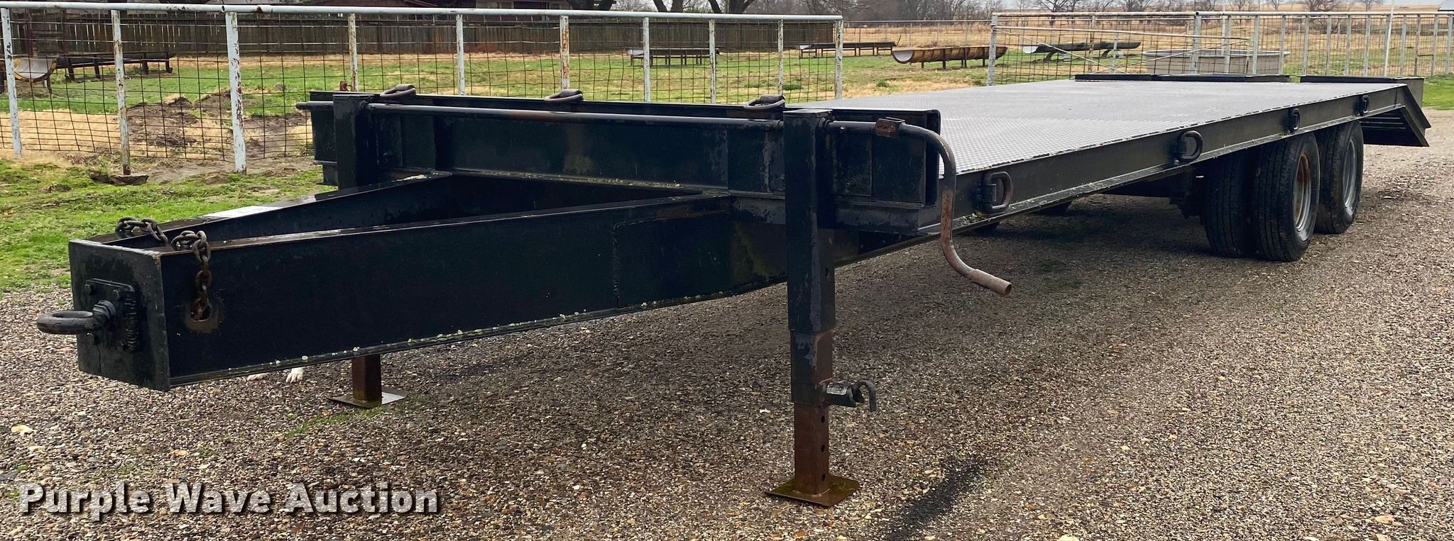 Shop built equipment trailer. Dimensions. Overall: 35' L x 101" W, Deck: 24' L x 100" W, Tail length: 4' 8", Ramps: Manual Length: 54". Operational Deck type: Steel. Chassis Hitch: Pintle, Landing gear: Dual, Two speed, Suspension: Spring, Brakes: Hydraulic, Axles: Tandem. Tires Size: ST235/85R16. Notes Brakes disconnected , No taillights. Transfer of ownership documentation will be a bill of sale. Muskogee, OK 74403