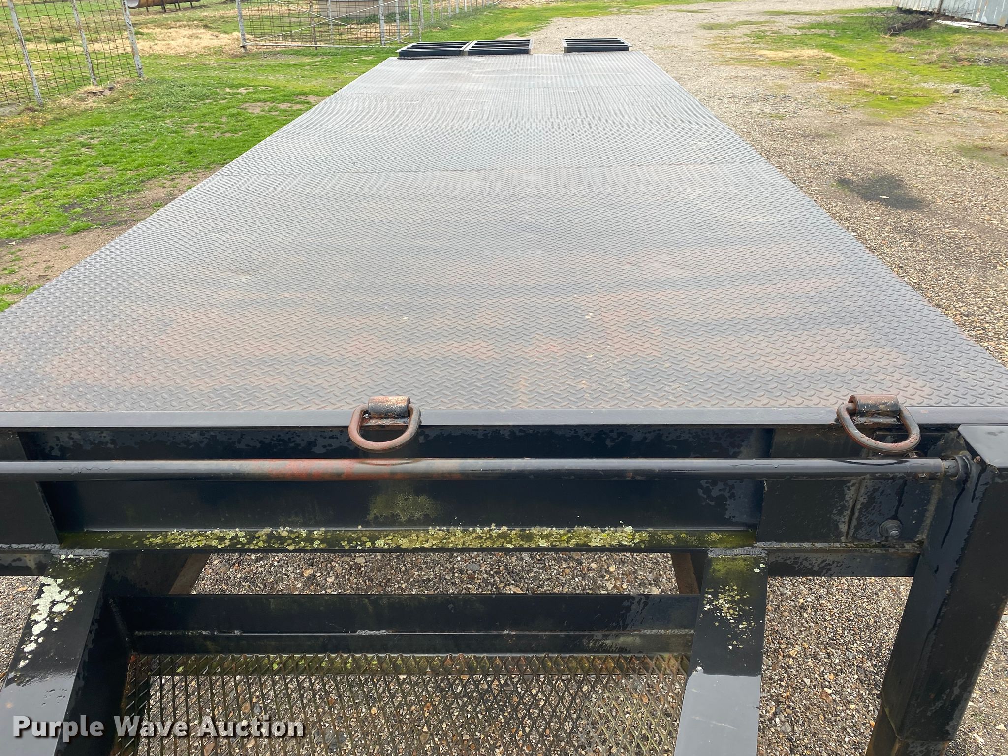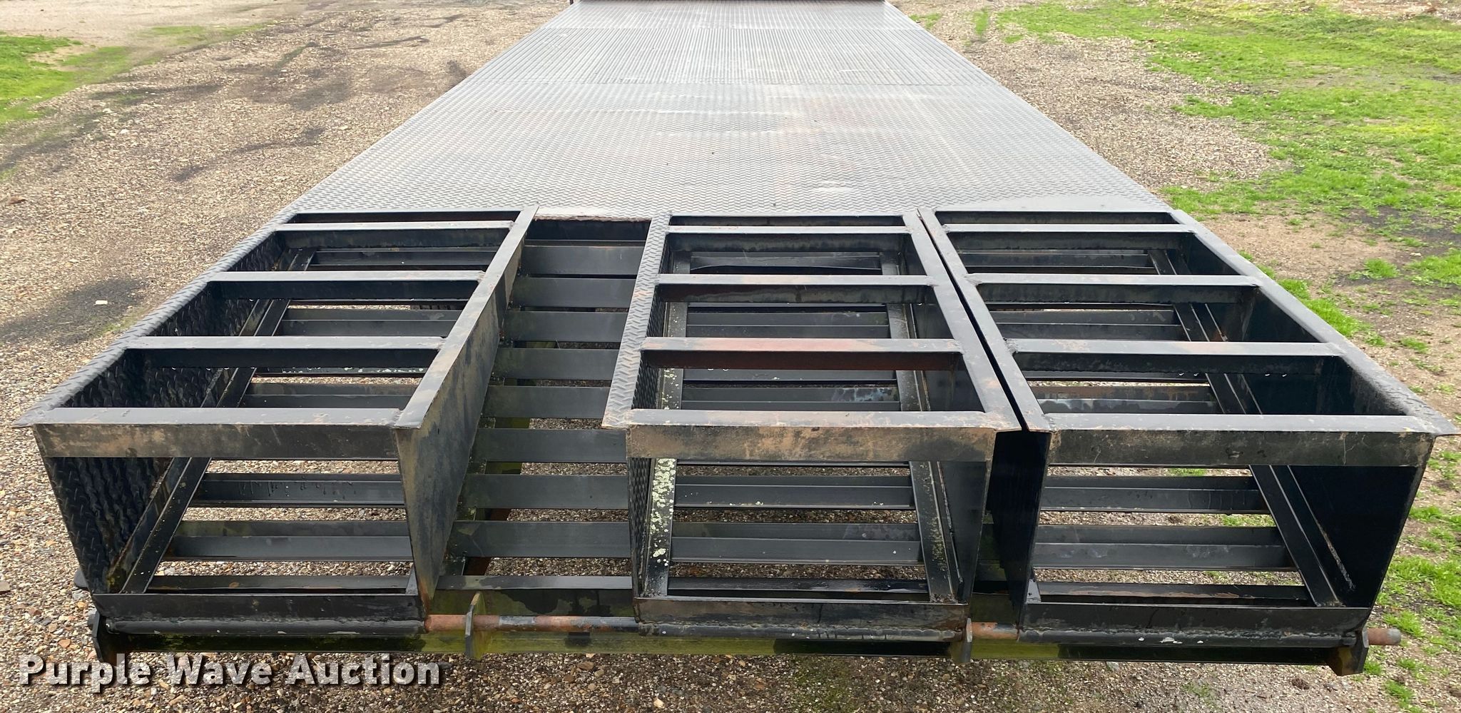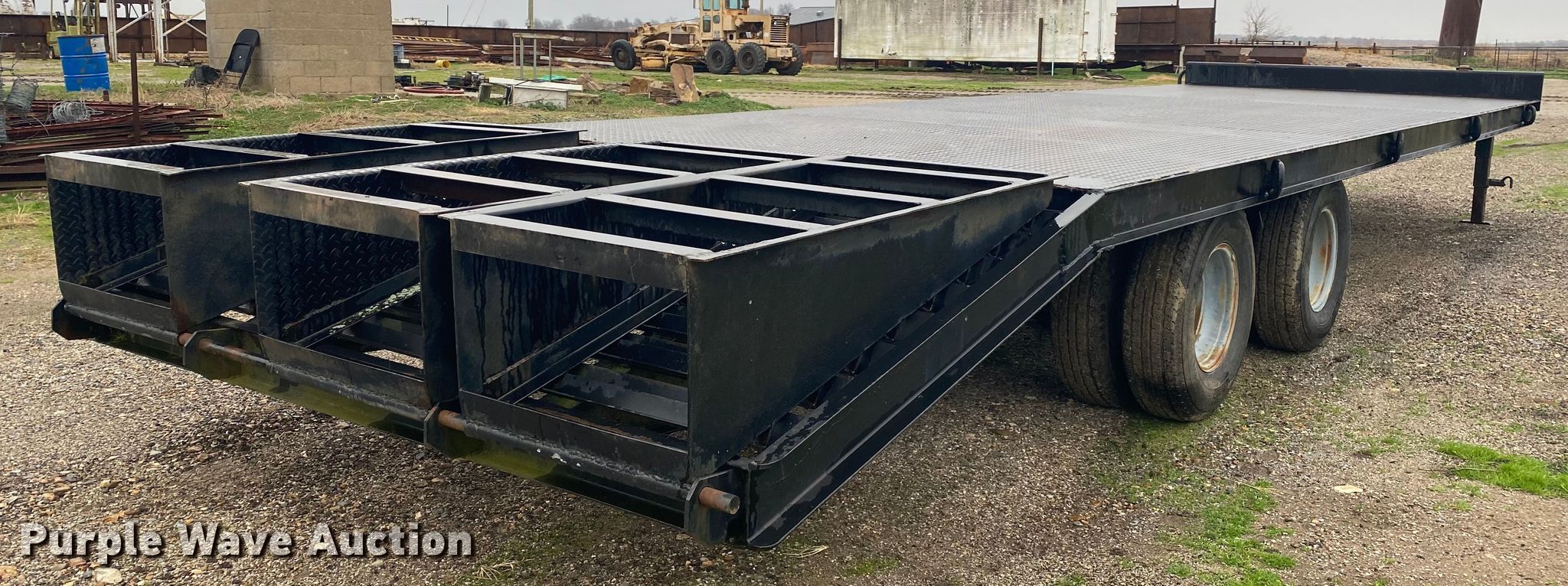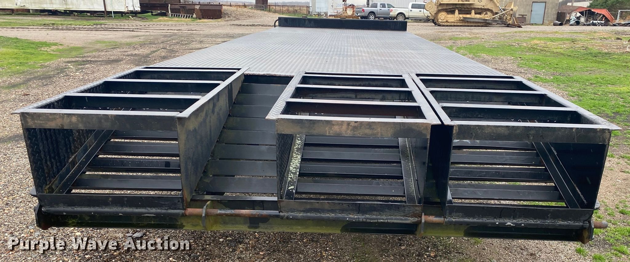 Purple Wave is selling a used Equip. Trailer in Oklahoma. This item is a Shop built equipment trailer with the following: Overall: 35' L x 101" W, Deck: 24' L x 100" W, Tail length: 4' 8", Ramps: Manual, Length: 54"