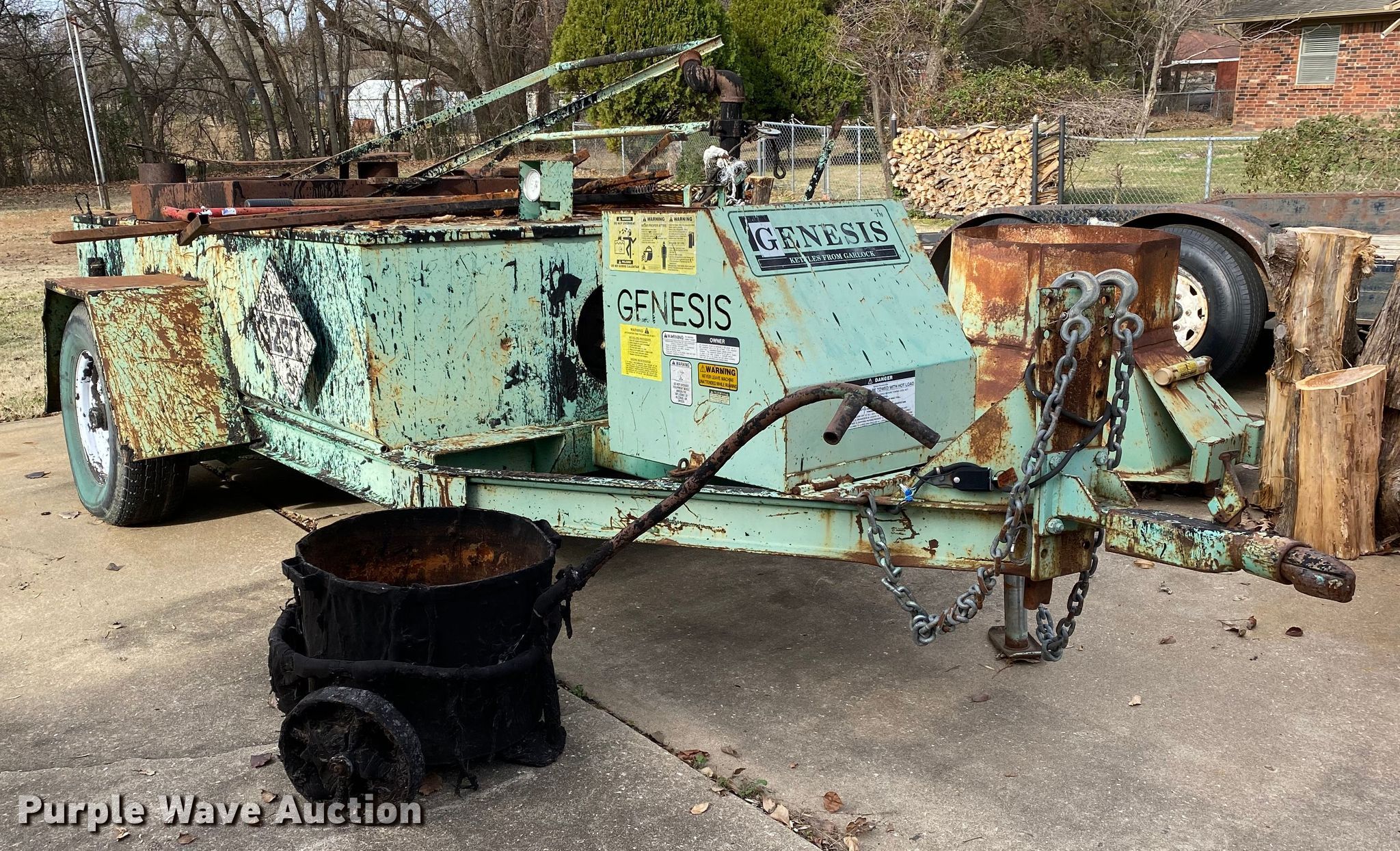 2002 Garlock 412 tar kettle. Dimension. Overall: 15' L x 85" W. Operational Honda engine Cylinders: 1, Fuel type: Gas, Capacity: 412 gallons, Dual propane burners, Skimmers. Chassis Hitch: 2" Ball, Landing gear: Single, Suspension: Spring, Brakes: Electric, Axles: Single. Tires Size: 225/75R15. Transfer of ownership documentation will be a bill of sale. Action Roofing Inc. 1117 E Louisville St S. Broken Arrow, OK 74012