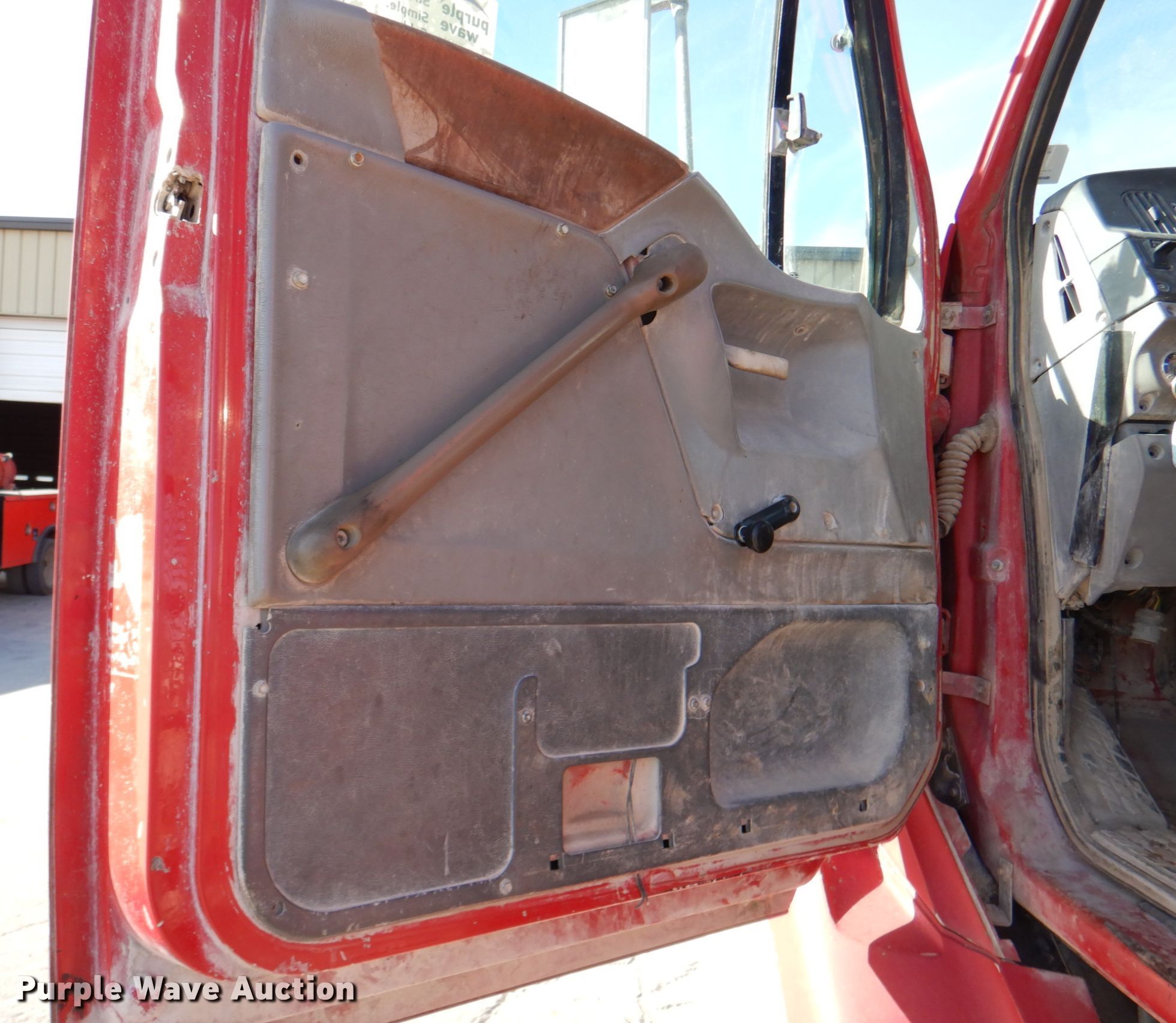 1999 Sterling L9500 semi truck. Miles: 126,995 on odometer, Hours: 8,160 on meter, VIN: 2FWYEWEB6XAF41864. Engine Caterpillar C12, Displacement: 12.0L, Cylinders: 6, Fuel type: Diesel. Transmission Eaton Fuller, Manual, Speed: 9. Chassis Axles: Tandem, Differential lock: Inter-axle, Suspension: Air, Brakes: Air, PTO, GVWR: 58,000 lbs FAWR: 12,000 lbs, IAWR: 20,000 lbs, RAWR: 20,000 lbs, Wheelbase: 184". Interior AC, Heat, Cruise control, Air ride cab. Operational Deck plate: Steel, Fifth wheel type: Sliding, Fuel tank: Dual. Tires Size: 11R22.5. kansas title. Koss Construction Company. 5831 SW Topeka Blvd. Topeka, KS 66609