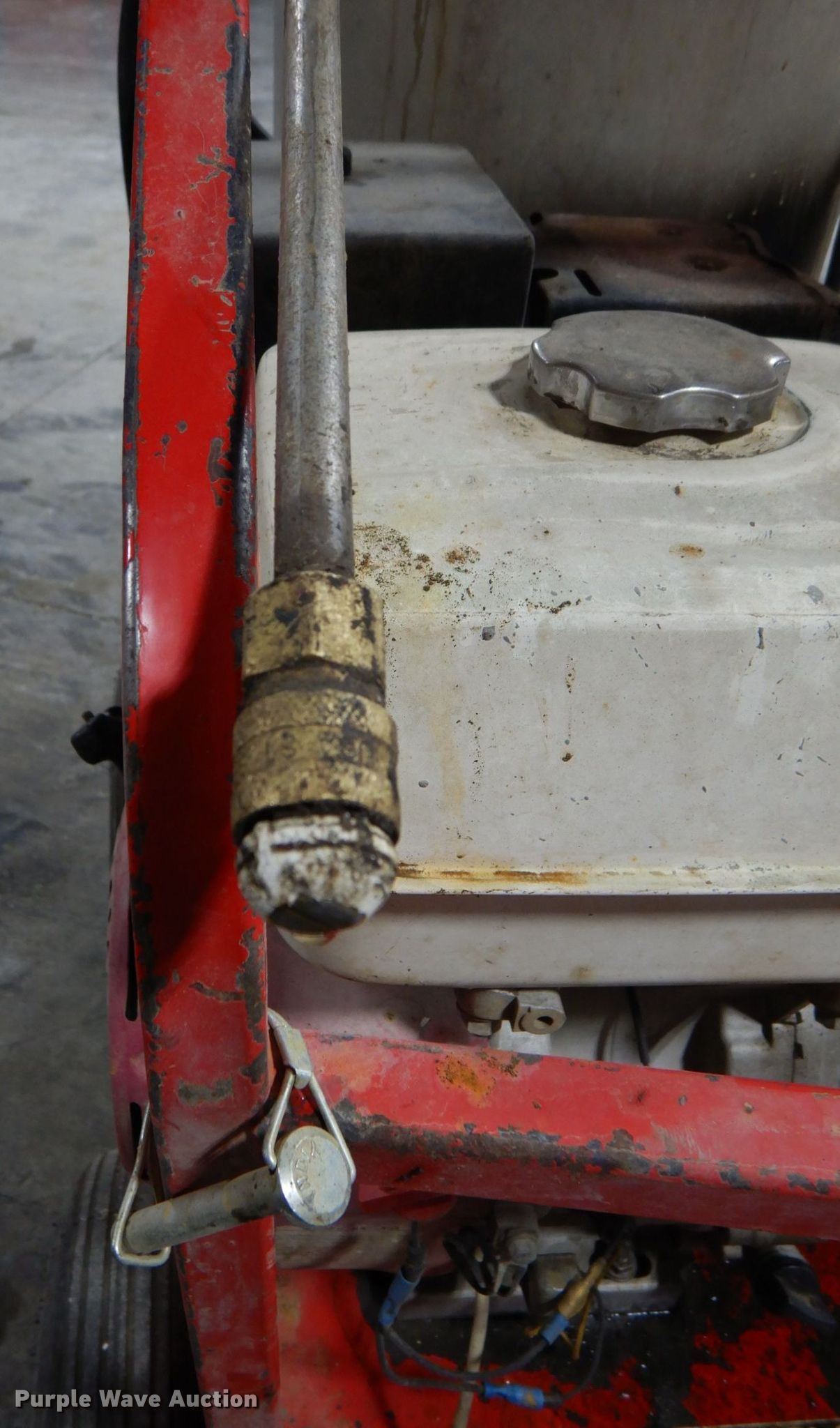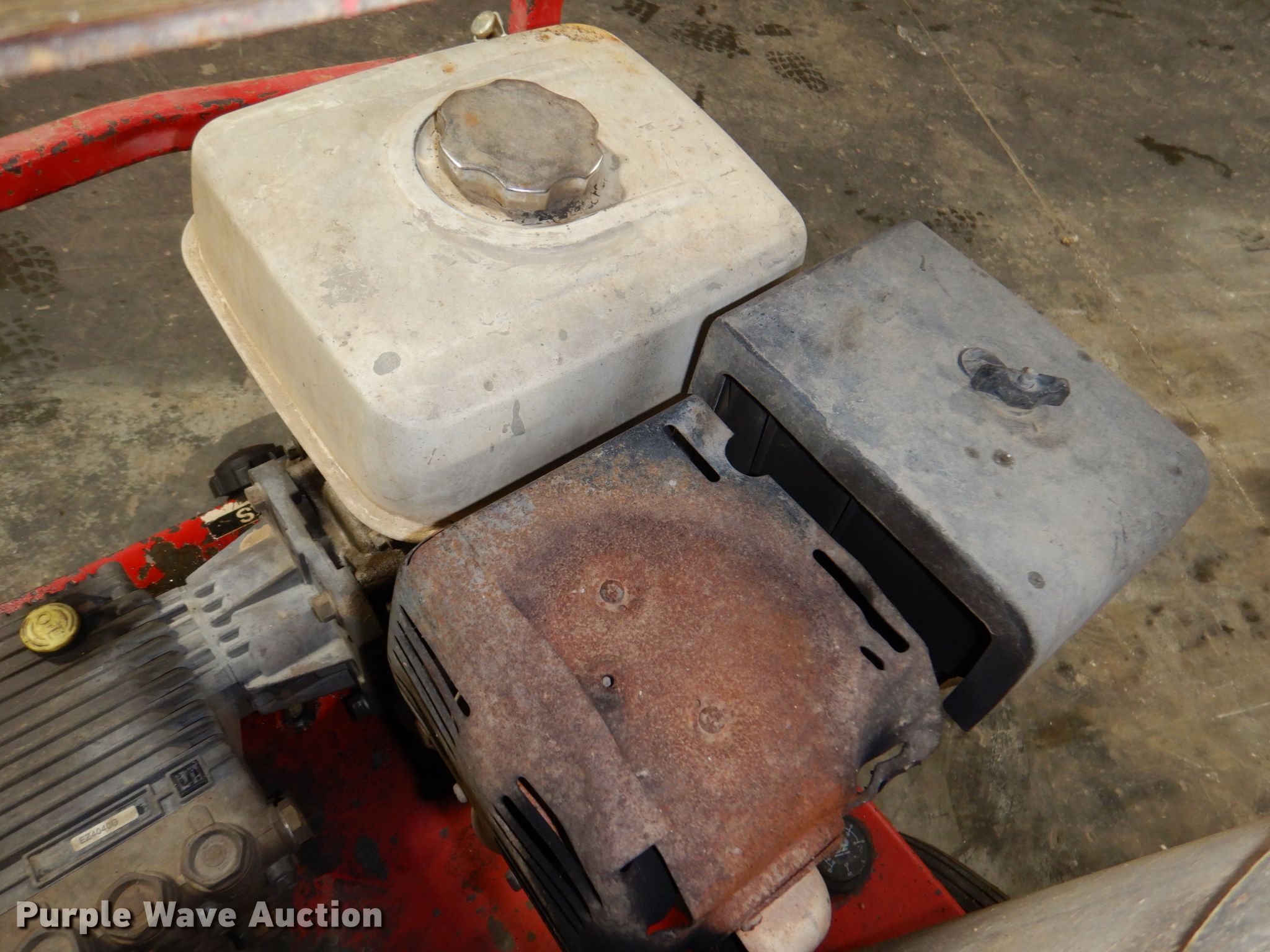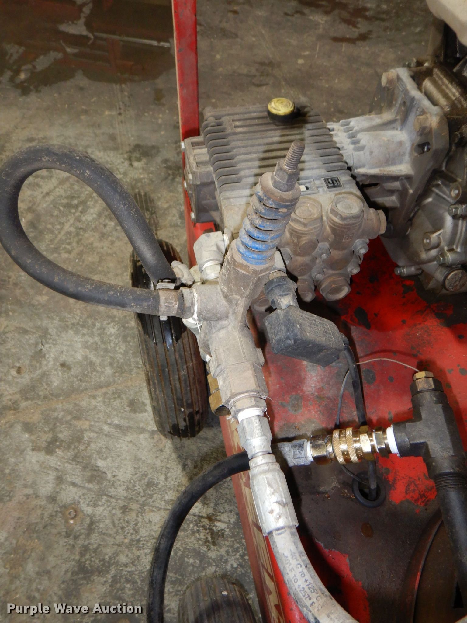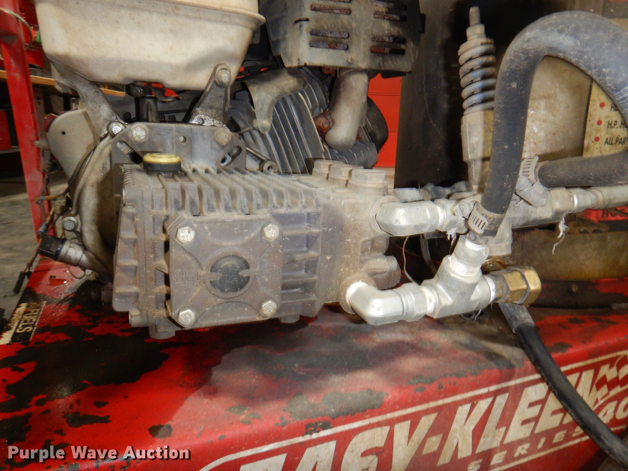 Purple Wave is selling a used Pressure Washer in Nebraska. This item is a Easy Kleen Magnum 4000 hot pressure washer with the following: Honda gas engine, 13 HP, Beckett diesel fired burner, 120V, 10 gallon poly fuel tank, 4,000 PSI, Wand, Hose, (3) tips, 4.80/4.00-8 tires