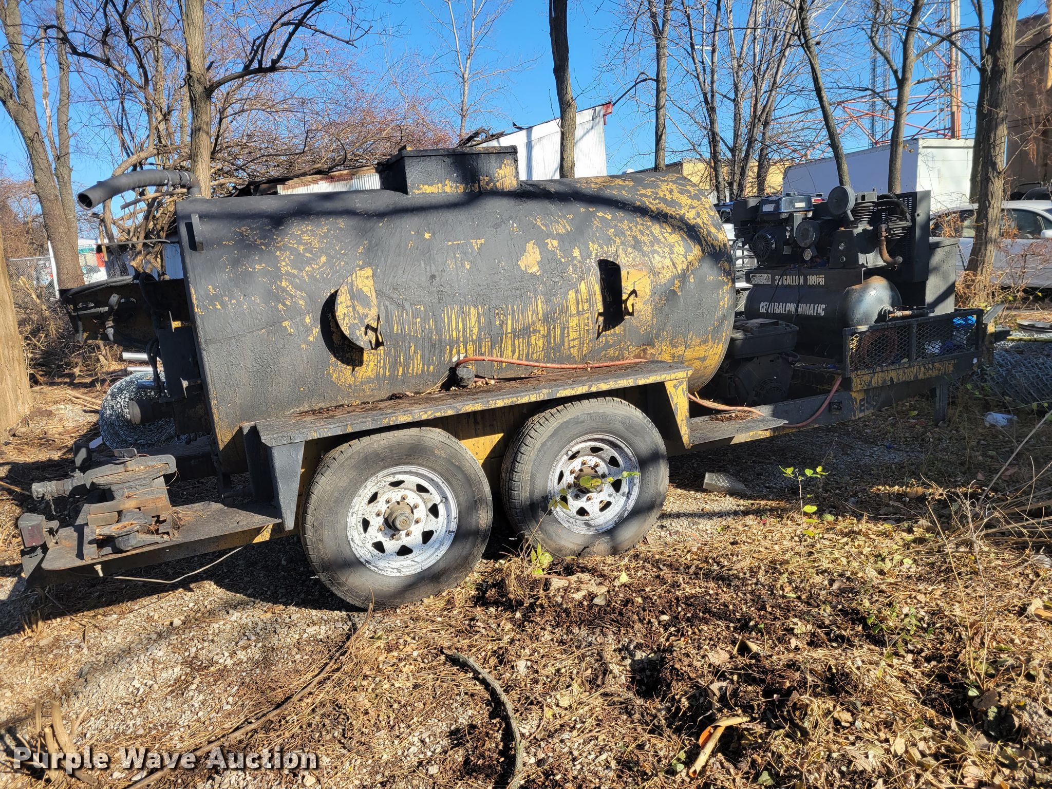 2012 Neal seal coat trailer. VIN: 1N9U71822CV262134, Overall: 19' L x 74" W. Operational Briggs & Stratton engine Cylinders: 2, Fuel type: Gas, Hydraulic motor, Hydraulic powered tank agitator, Tank capacity: 750 gallons , Central Pneumatic air compressor Cylinders: 1, Fuel type: Gas, PSI: 180 , Capacity: 30 gallons. Chassis Hitch: 2 5/16" ball, Suspension: Spring , Axles: Tandem. Tires Size: 215/85R16. Notes Unknown operating condition. Transfer of ownership documentation will be a bill of sale. Topps Paving & Sealing, LLC. Maryland Heights, MO 63043