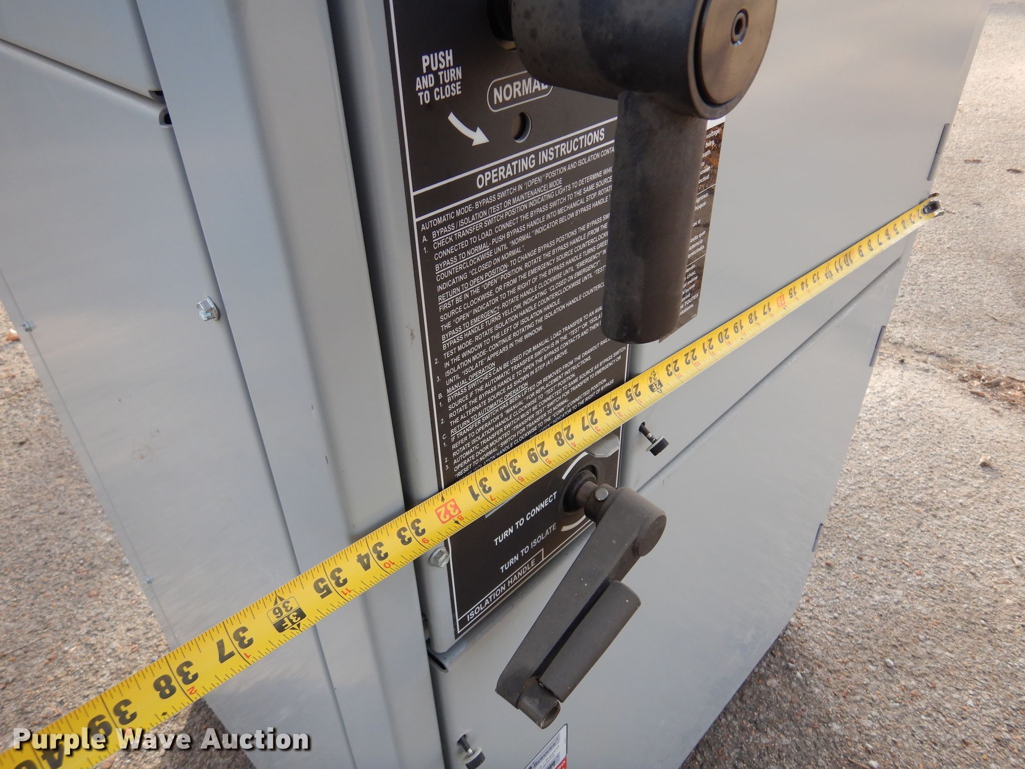 Purple Wave is selling a used Building Materials in Kansas. This item is a ASCO Power Technologies 7000 series transfer station with the following: 35" L x 28" W x 85" H, 480V, 260 amps, 50 to 60 Hz, Three pole, Serial: 568592WE