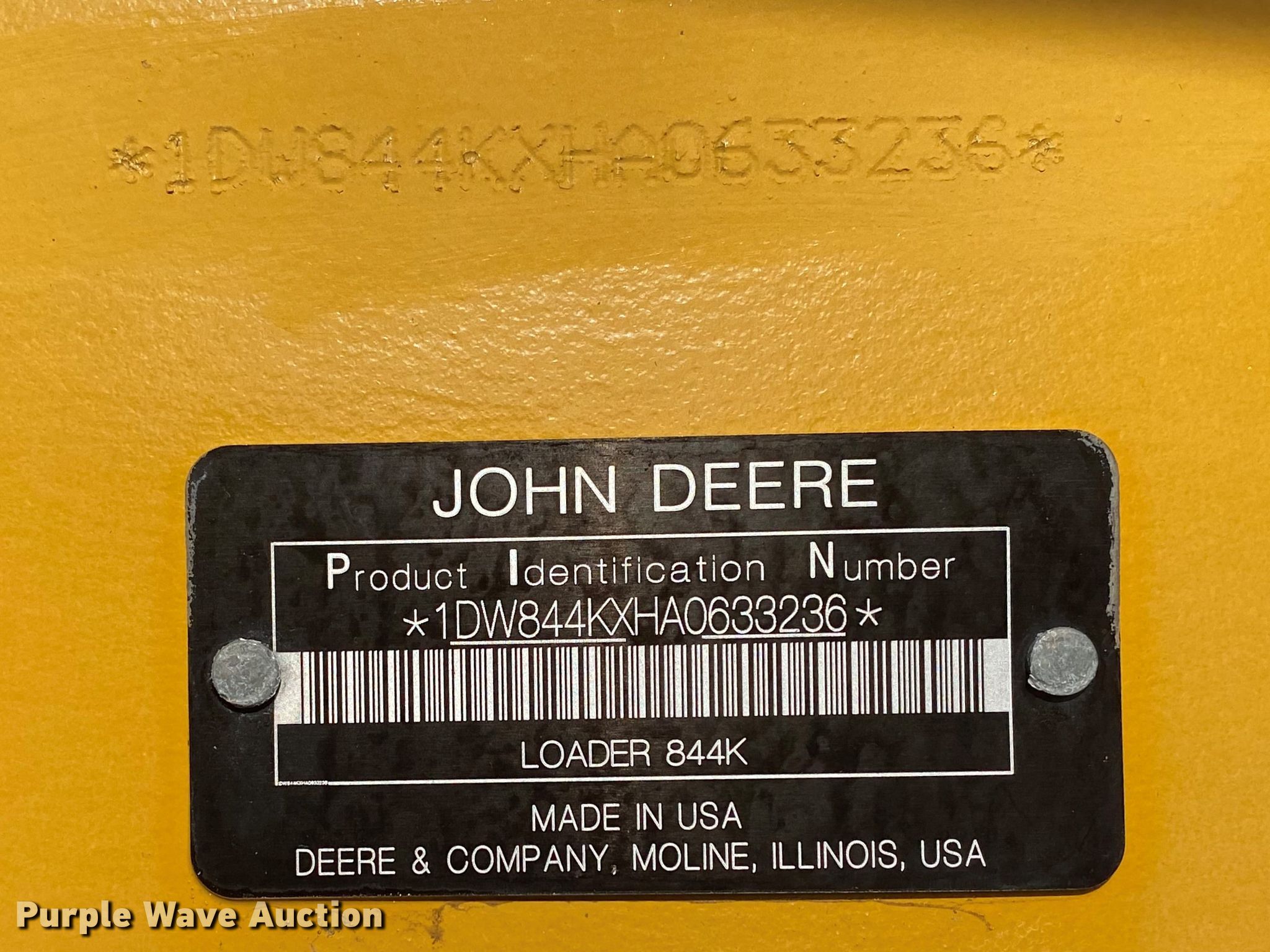 Purple Wave is selling a used Wheel Loader in Oklahoma. This item is a 2011 John Deere 844K wheel loader with the following: Hours: 11,594 on meter, Serial: 1DW844KXHA0633236