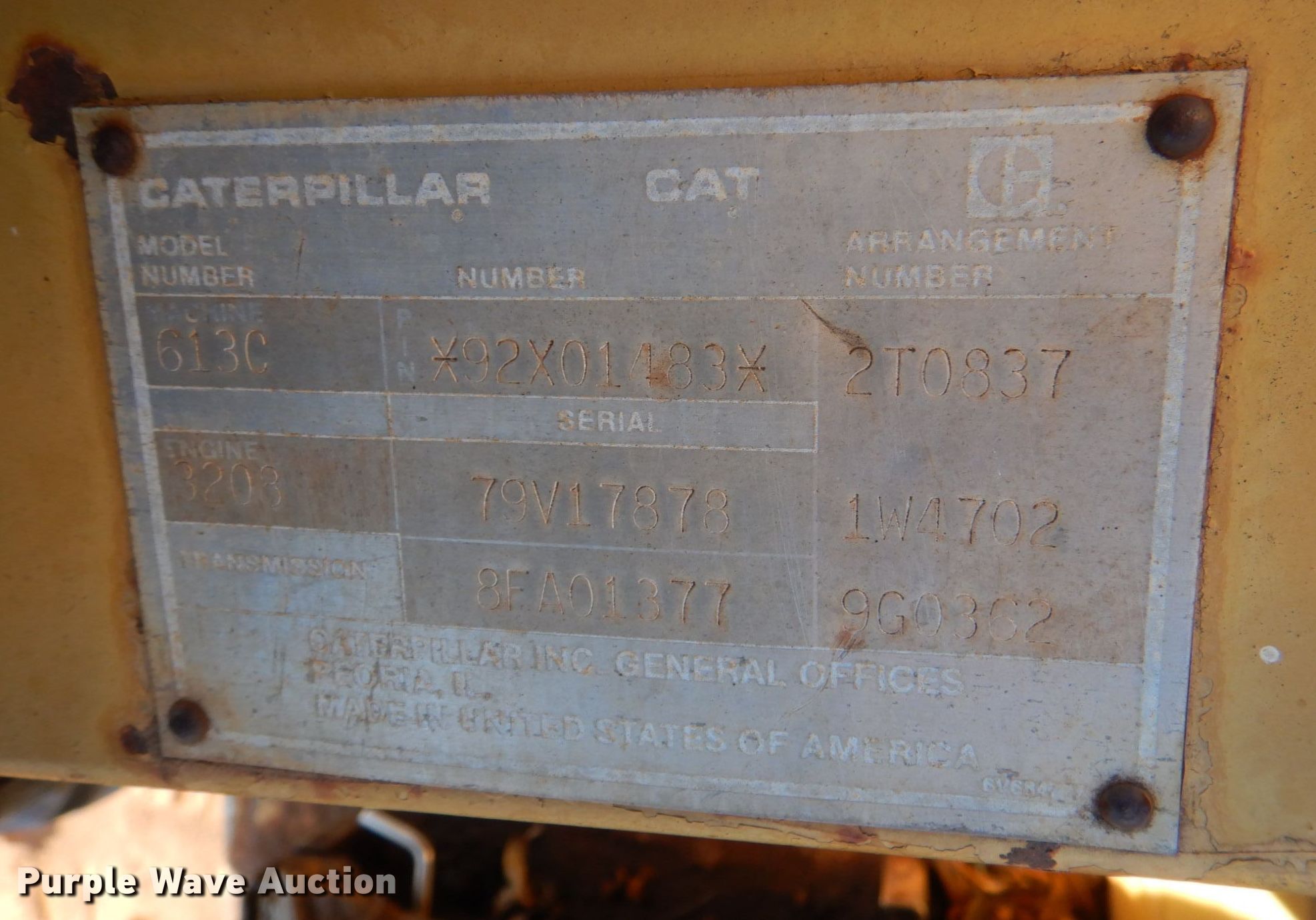 Purple Wave is selling a used Elevating Scraper in Oklahoma. This item is a 1988 Caterpillar 613C elevating scraper with the following: Hours: 10,688 on meter, Serial: 92X01483