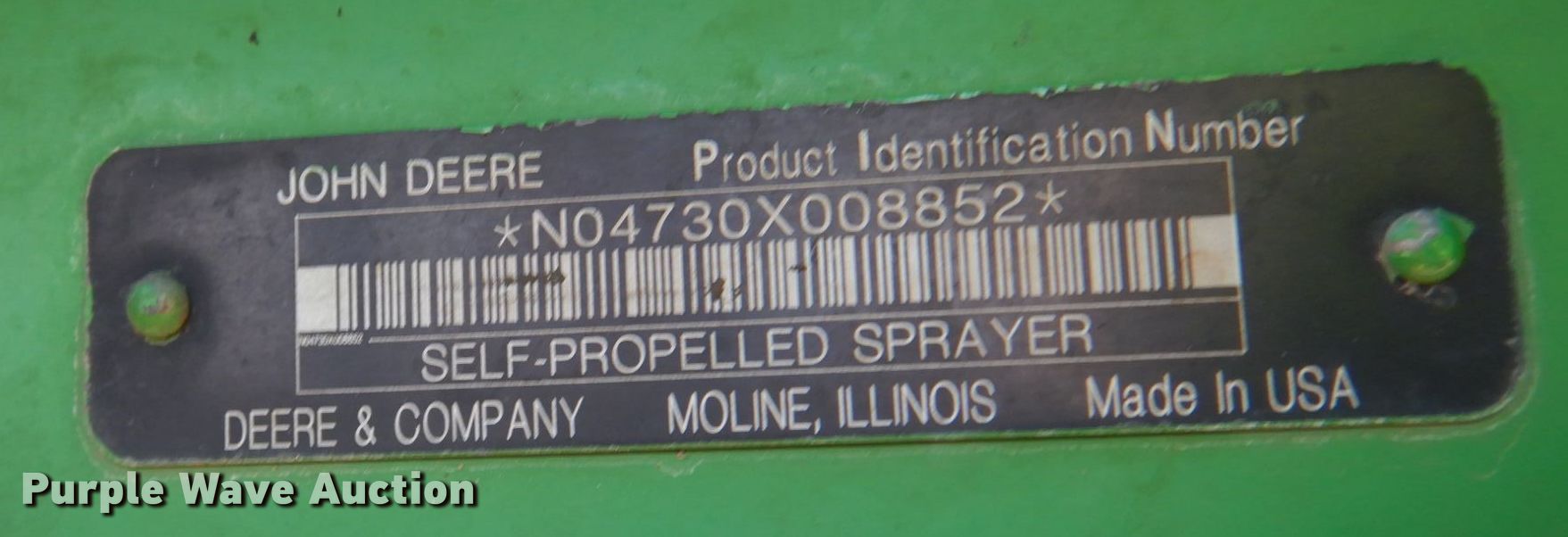 Purple Wave is selling a used Applicator Self Propelled in Missouri. This item is a 2010 John Deere 4730 sprayer with the following: Engine hours: 4,241 on meter, Spray hours: 1,081 on meter, Serial: N04730X008852