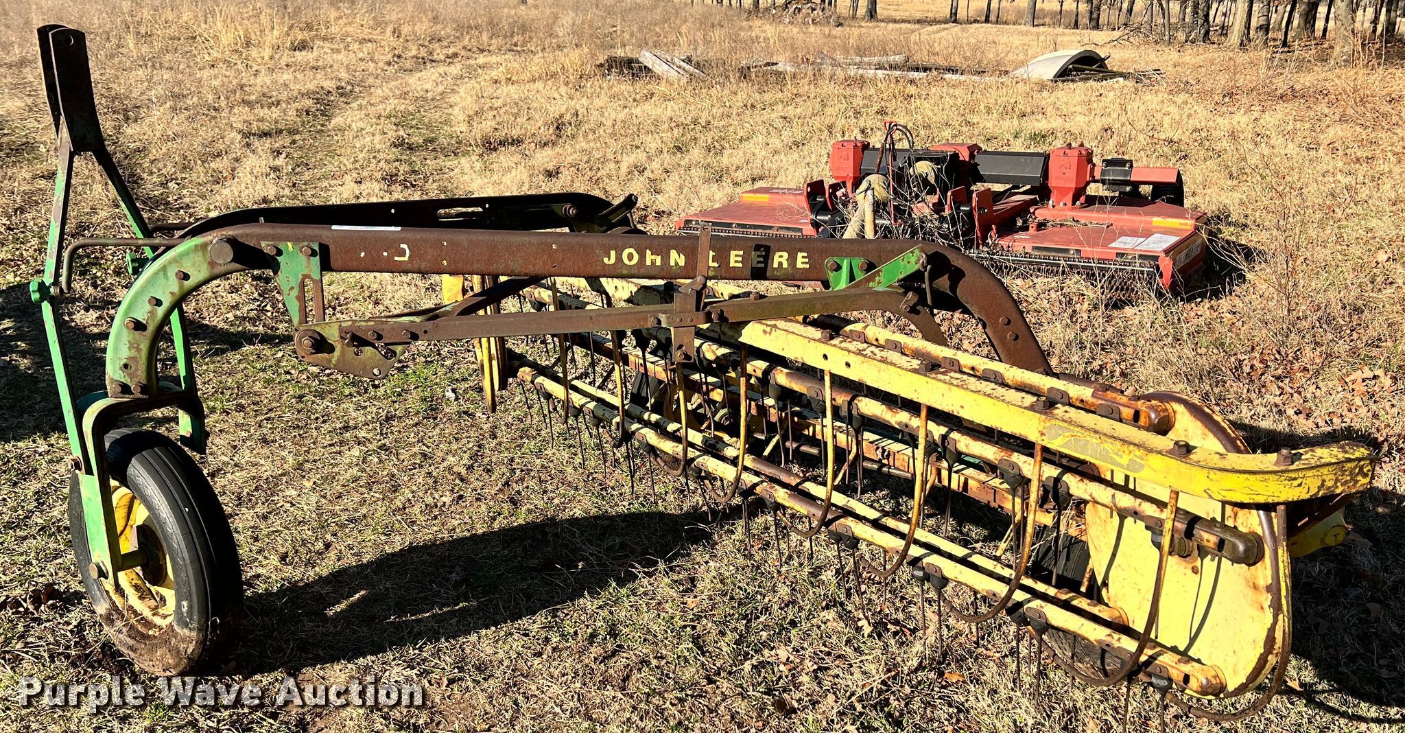 Purple Wave is selling a used Hay Rake in Oklahoma. This item is a John Deere 640 hay rake with the following: Serial: 246980E