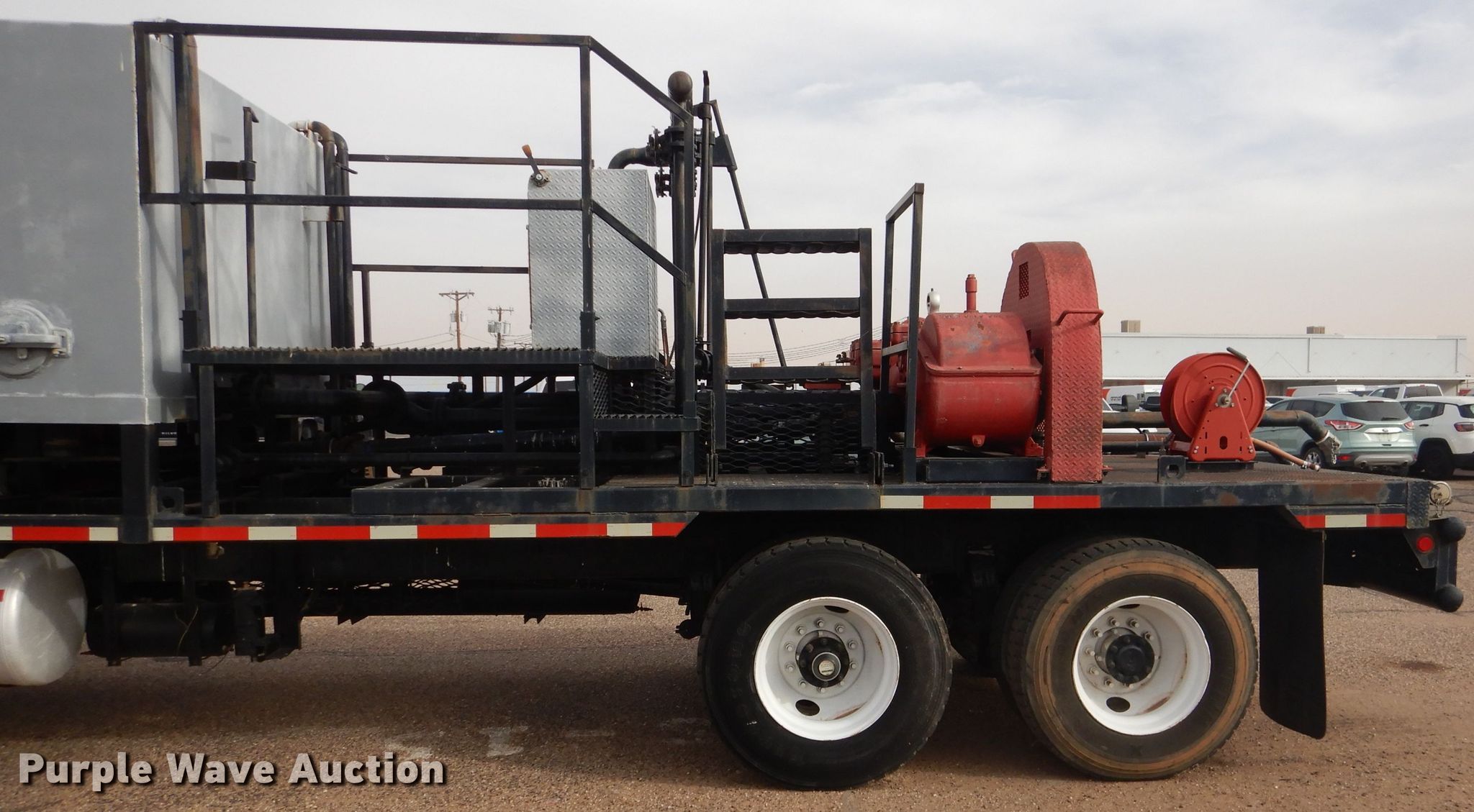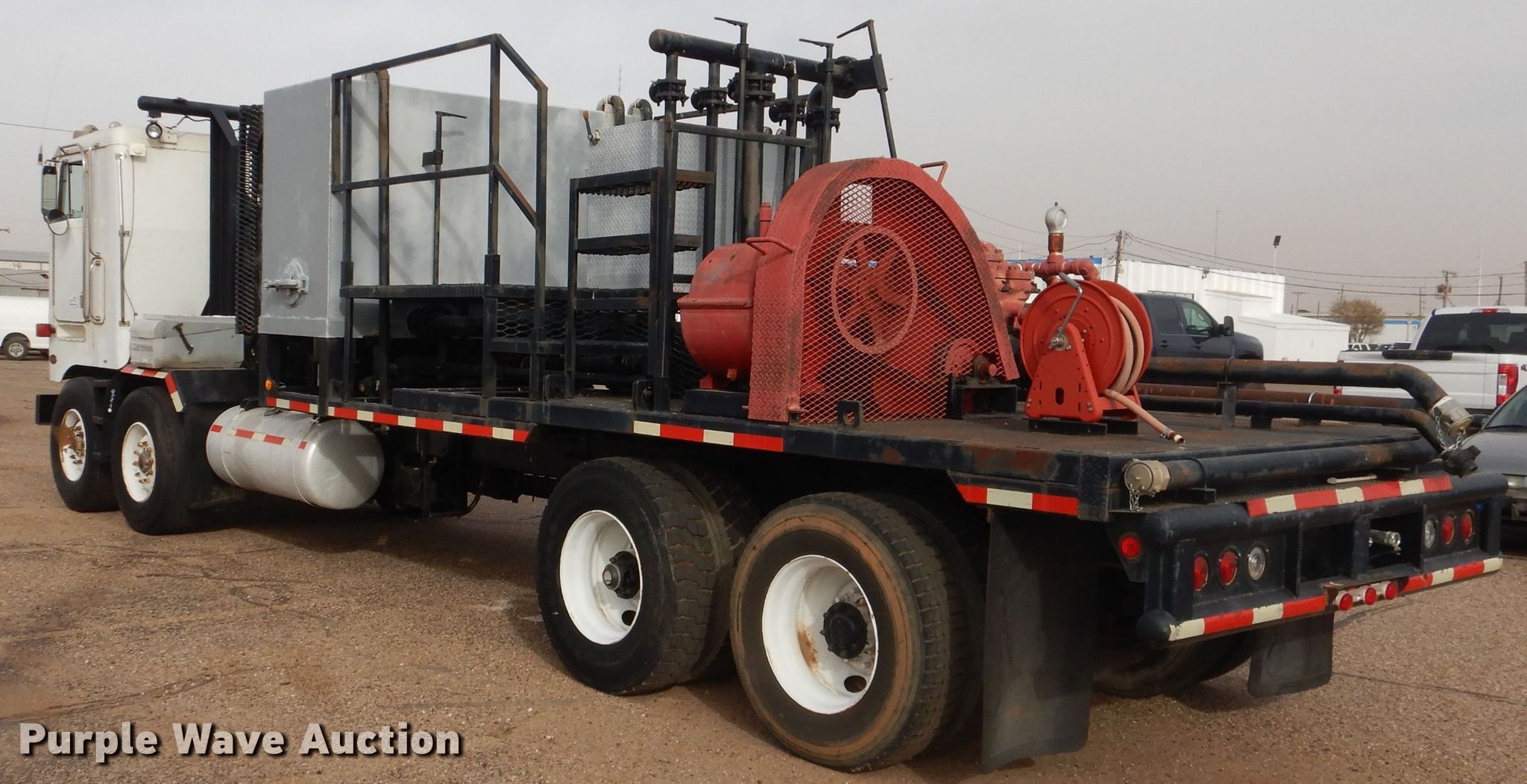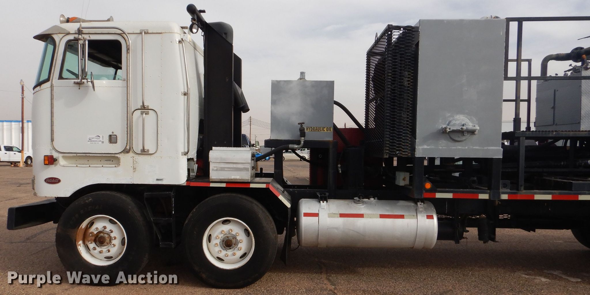 Purple Wave is selling a used Oilfield Truck in Texas. This item is a 2001 Peterbilt 362 oilfield truck with the following: Miles: 83,631 on odometer, Hours: 5,191 on meter, VIN: 1NP6LU0X31D611620