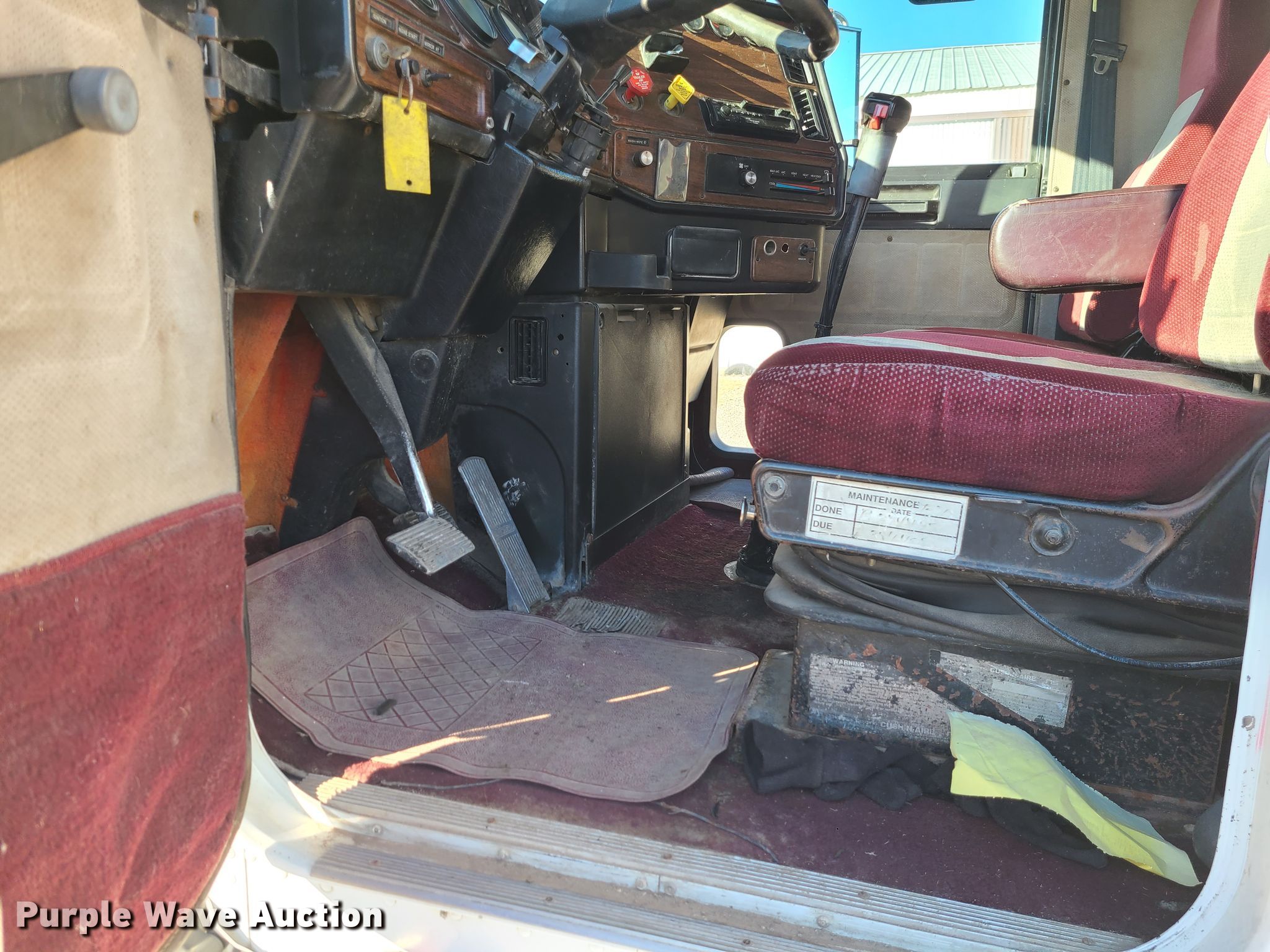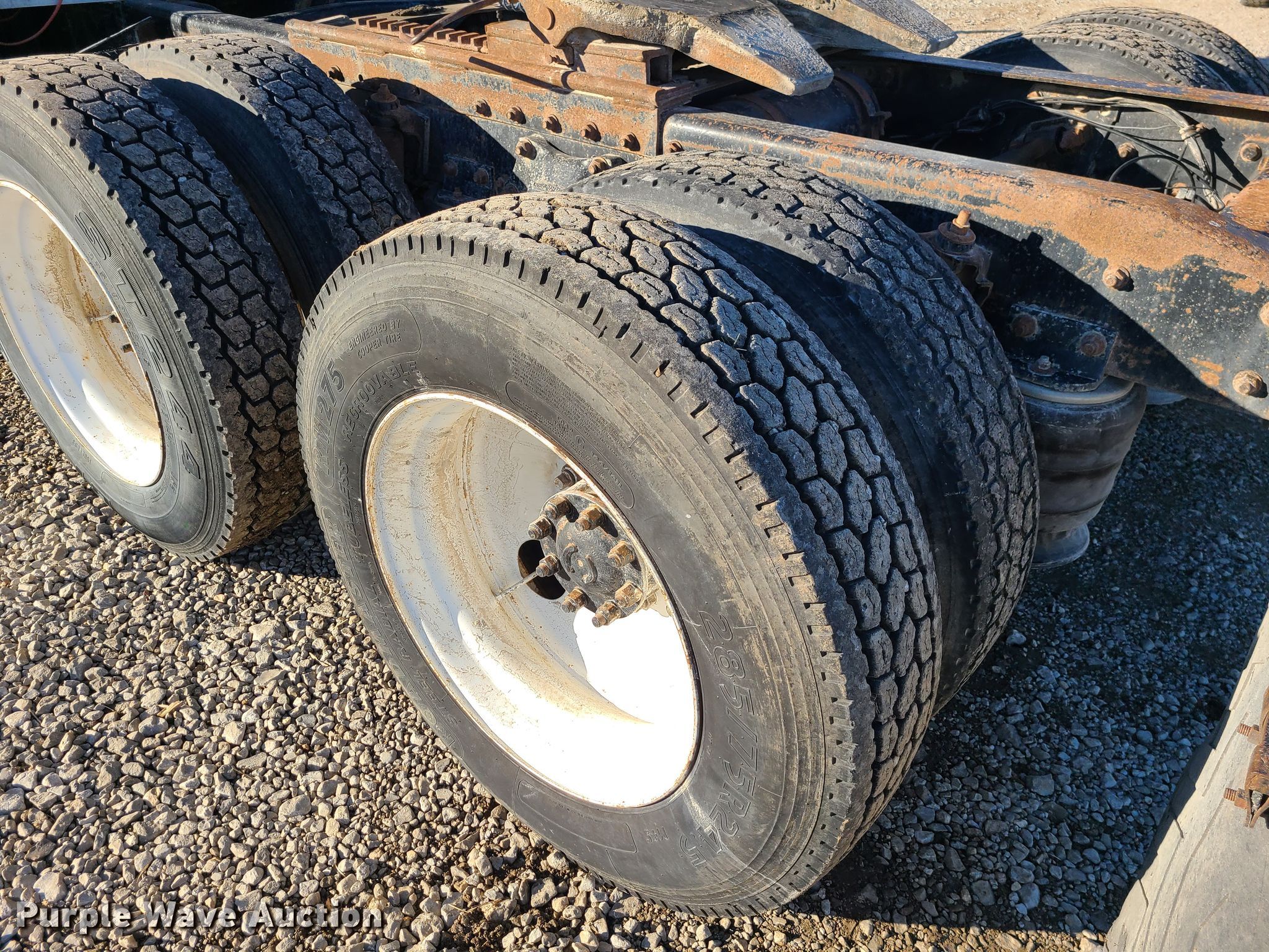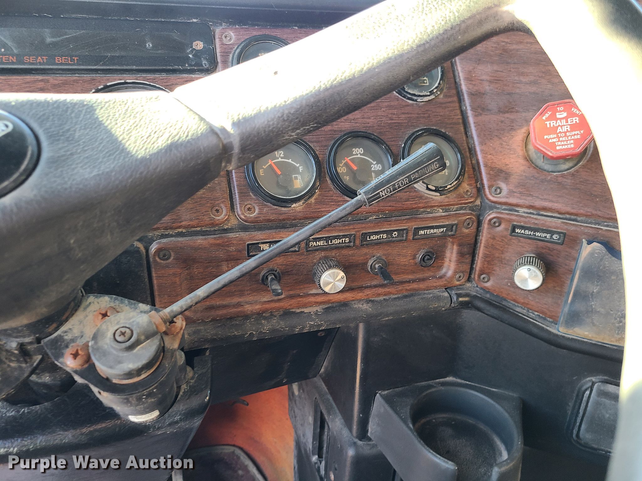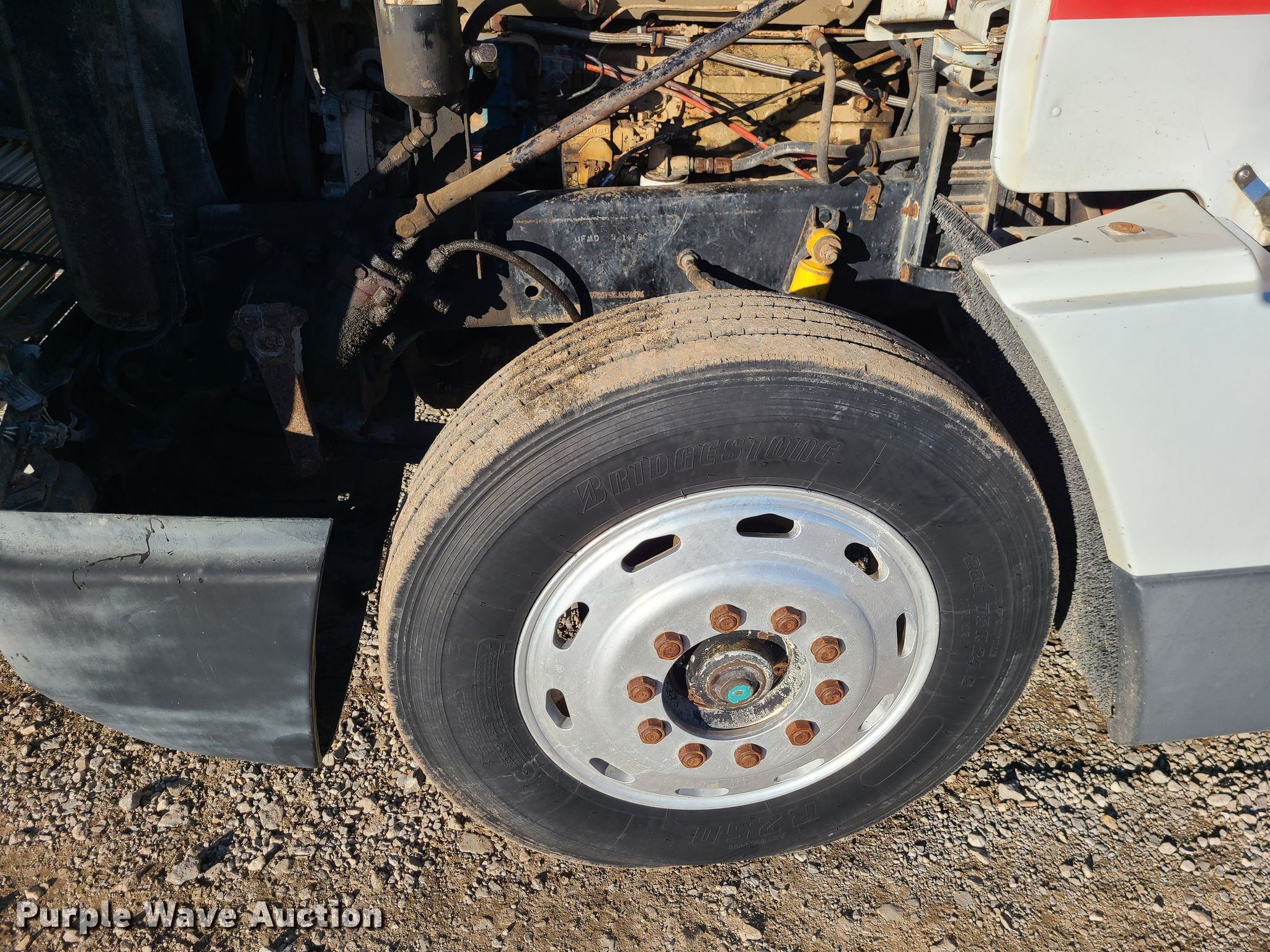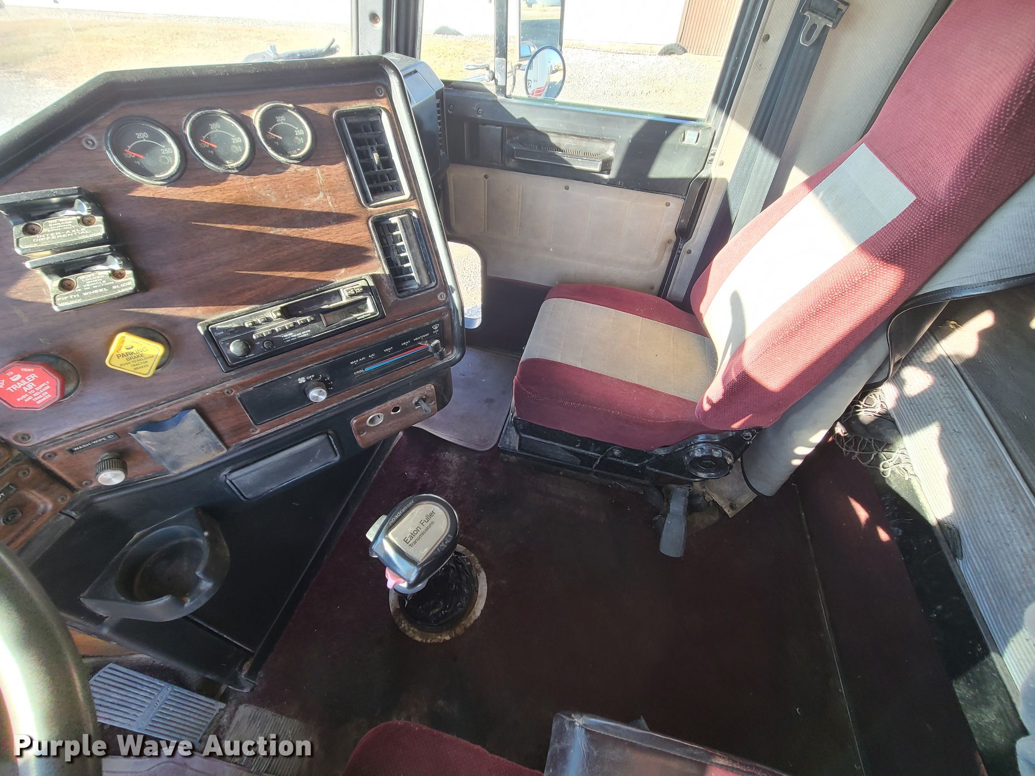1990 Freightliner FLD120 semi truck. Miles: 949,660 on odometer, VIN: 1FV7D0Y9XLH376396. Engine Cylinders: 6, Fuel type: Diesel. Transmission Manual, Speed: 13. Chassis Axles: Tandem, Differential lock: Inter-axle, Suspension: Air, Brakes: Air. Interior AC, Heat, Sleeper Sleeper length: 48", Beds: Single. Operational Deck plate: Aluminum, Fifth wheel type: Air operated, Sliding, Fuel tank: Dual. Tires Size: 285/75R24.5. Missouri title. 30261 HWY PP. Concordia, MO 64020