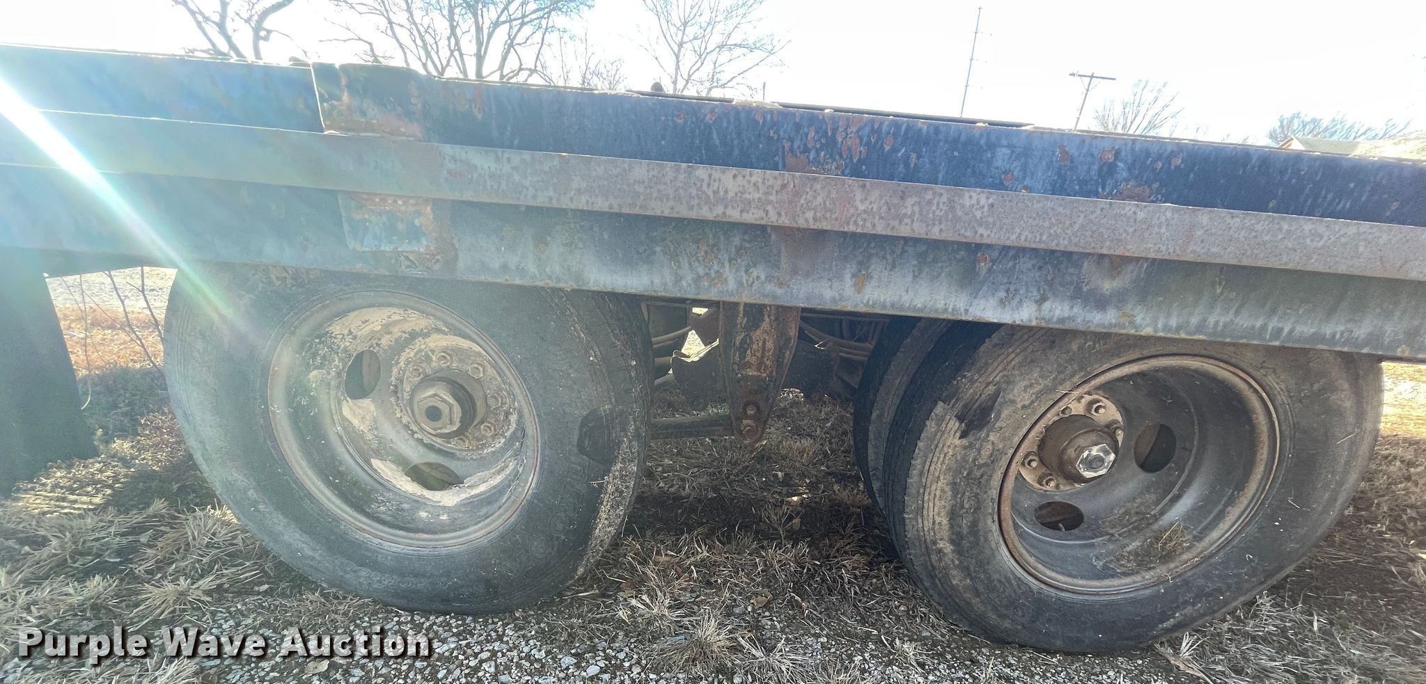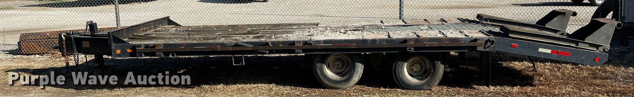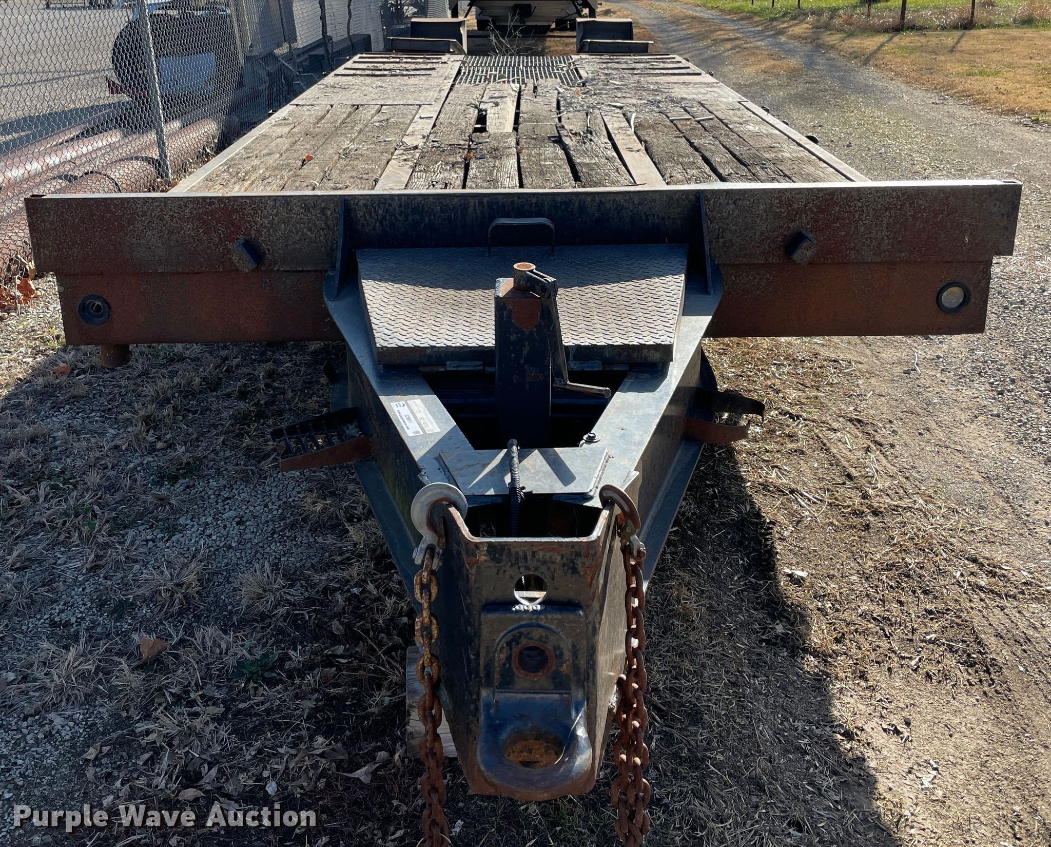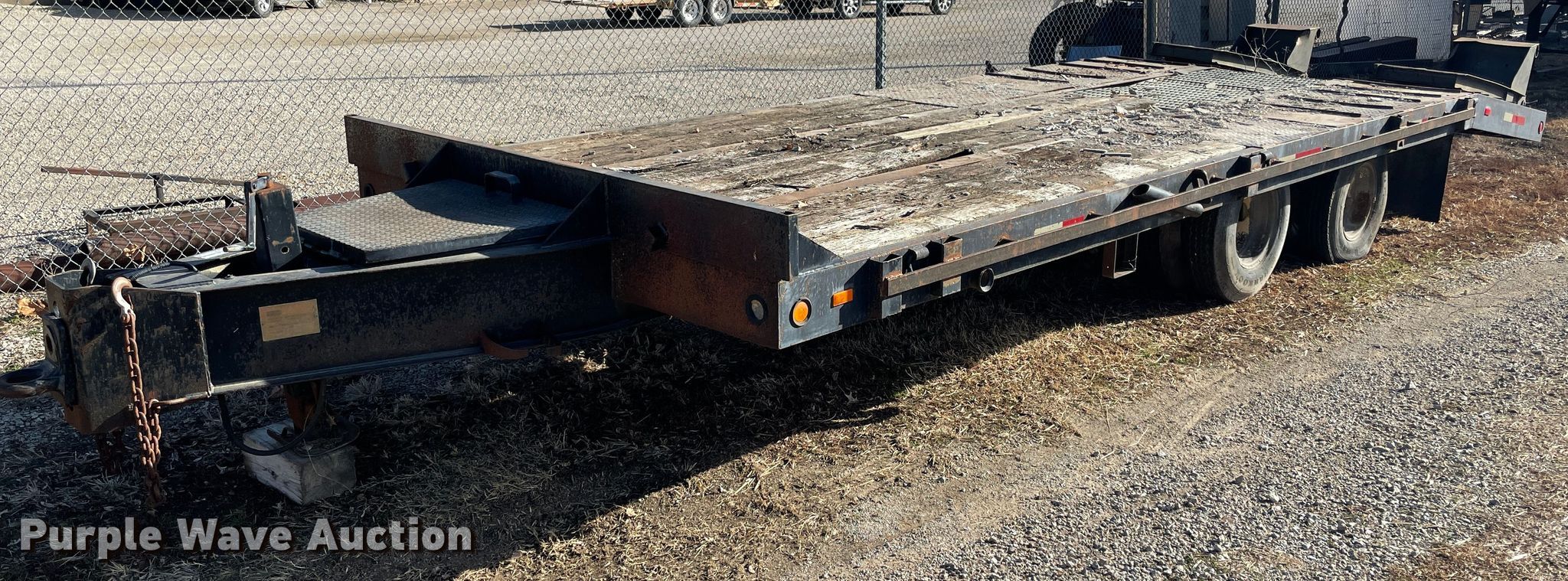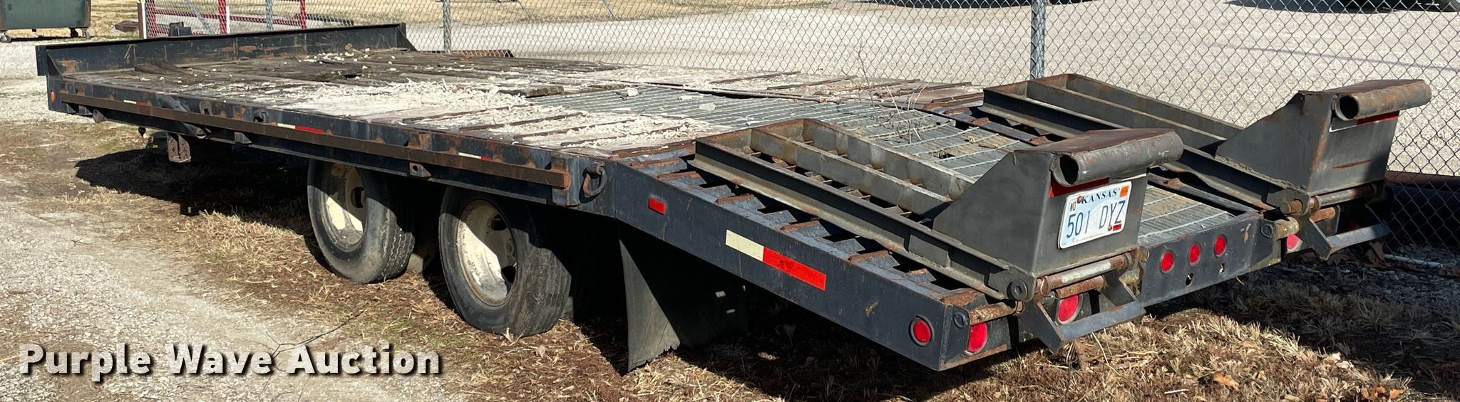 1986 Interstate equipment trailer. VIN: 1JK0DT208GA090041. Dimensions Overall: 26' L x 8' W, Deck: 19' L, Deck height: 33", Tail length: 2', Ramps: Manual Length: 5'. Operational Deck type: Wood. Chassis Hitch: Pintle, Landing gear: Single, Suspension: Spring, Brakes: Electric, Axles: Tandem, GVWR: 23,200 lbs. Tires Size: 7.50R16. Kansas title. 521 E Chestnut St. Chanute, KS 66720