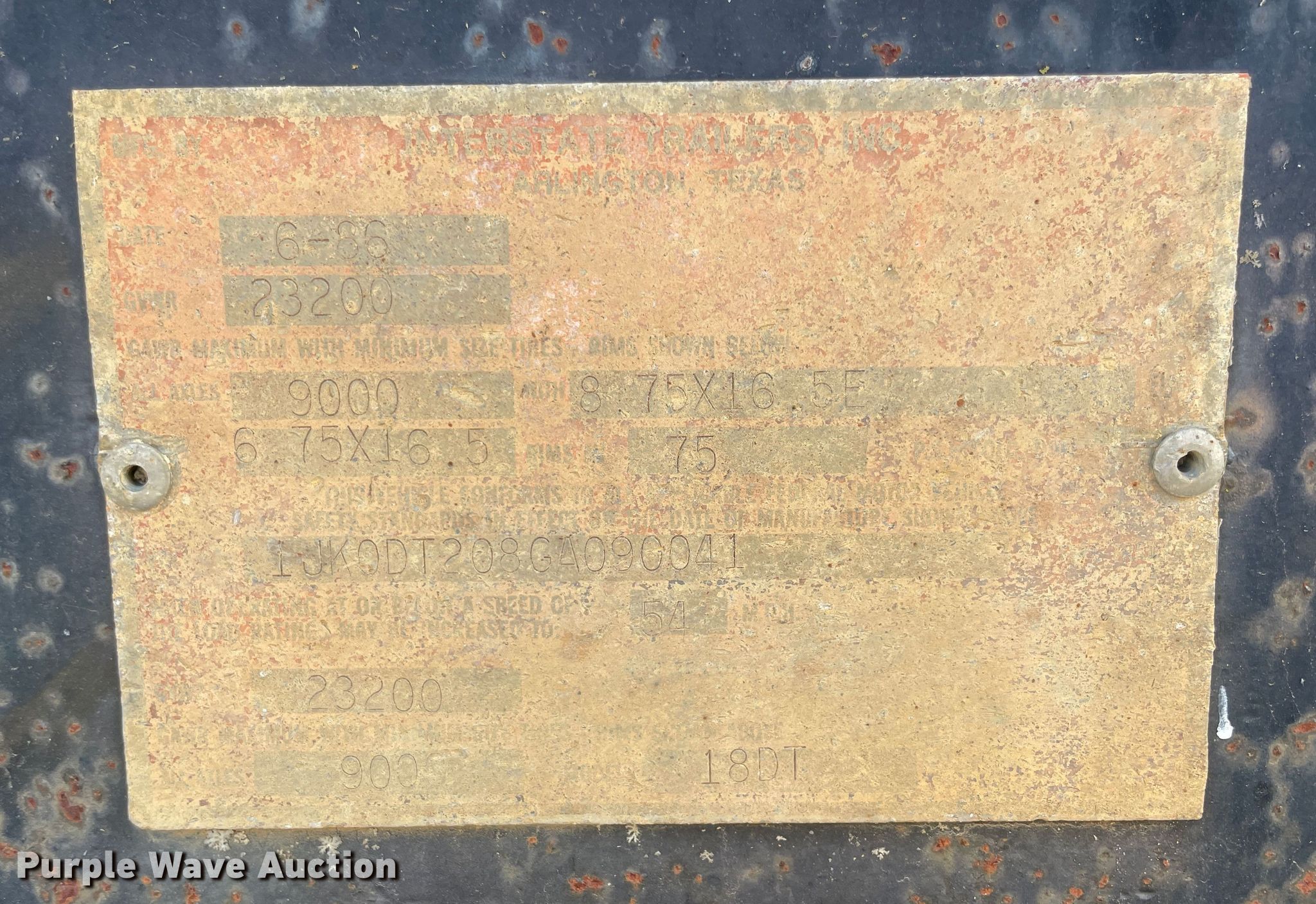 Purple Wave is selling a used Equip. Trailer in Kansas. This item is a 1986 Interstate equipment trailer with the following: VIN: 1JK0DT208GA090041