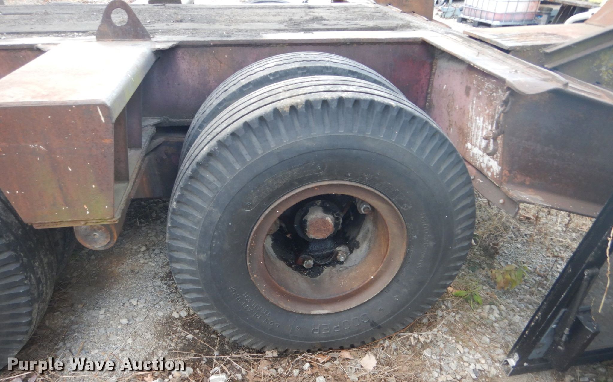 1974 Fontaine drop deck equipment trailer. VIN: 20226. Dimensions Overall: 38' 4" L x 96" W, Deck: 28' 4" L, Tail length: 28". Operational Deck type: Wood. Chassis Landing gear: Dual, Suspension: Spring, Brakes: Air, Axles: Tandem, GVWR: 77,200 lbs, GAWR: 23,360 lbs. Tires Steel wheels, Size: 10.00-15. Missouri title. Commercial Waterproofing, Inc.. 6330 NW Kelly Dr. Parkville, MO 64152
