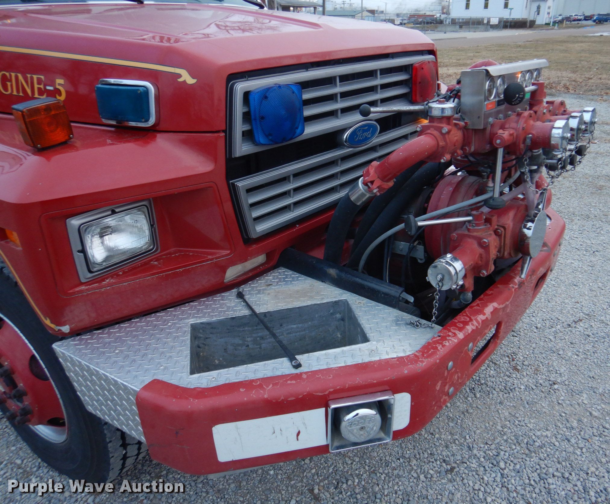 Purple Wave is selling a used Fire Truck or Emergency Vehicle in Missouri. This item is a 1995 Ford F800 pumper fire truck with the following: Miles: 12,569 on odometer, Hours: 2,303 on meter, VIN: 1FDYF80E0SVA11965, Unit #: 5