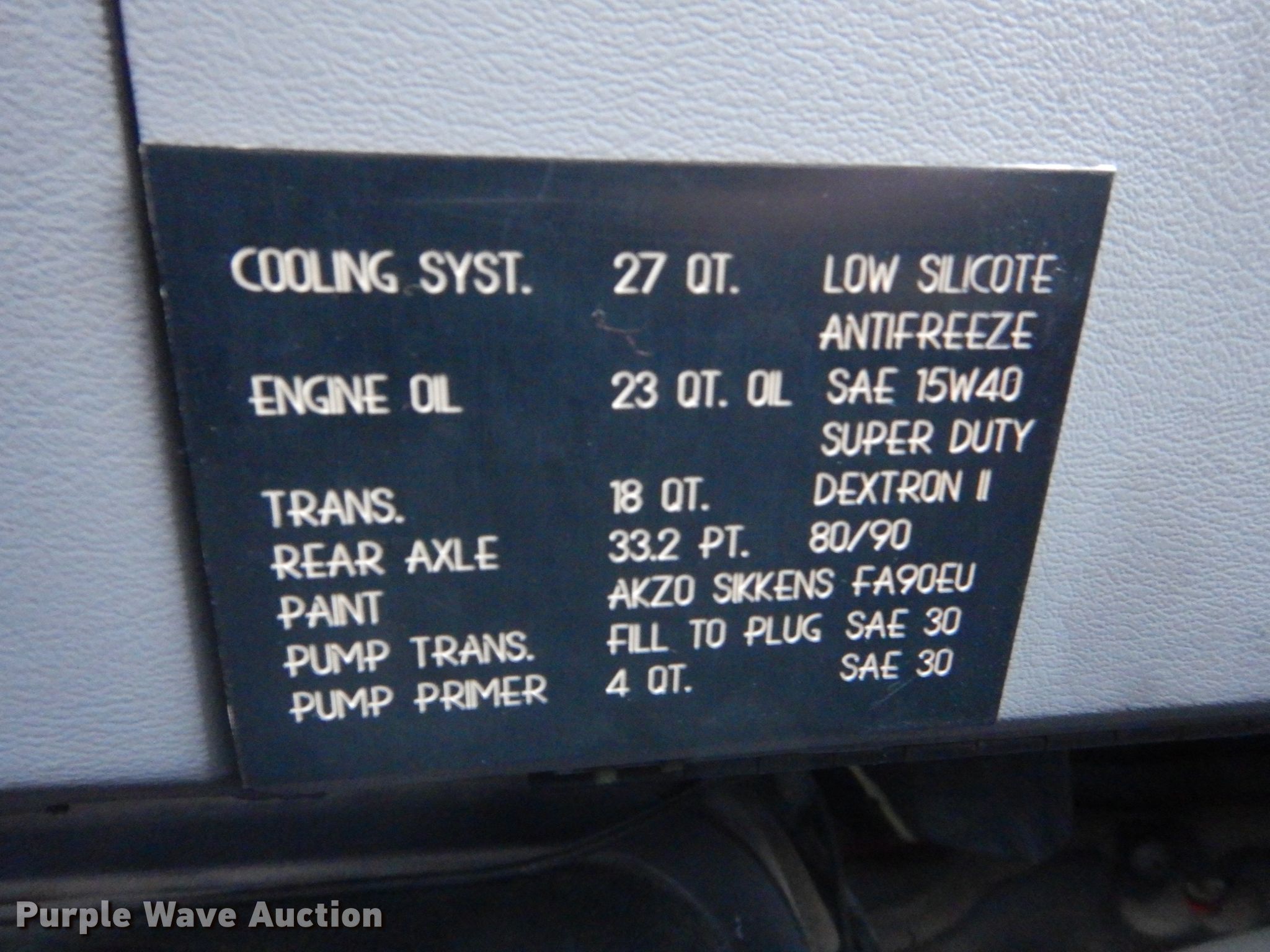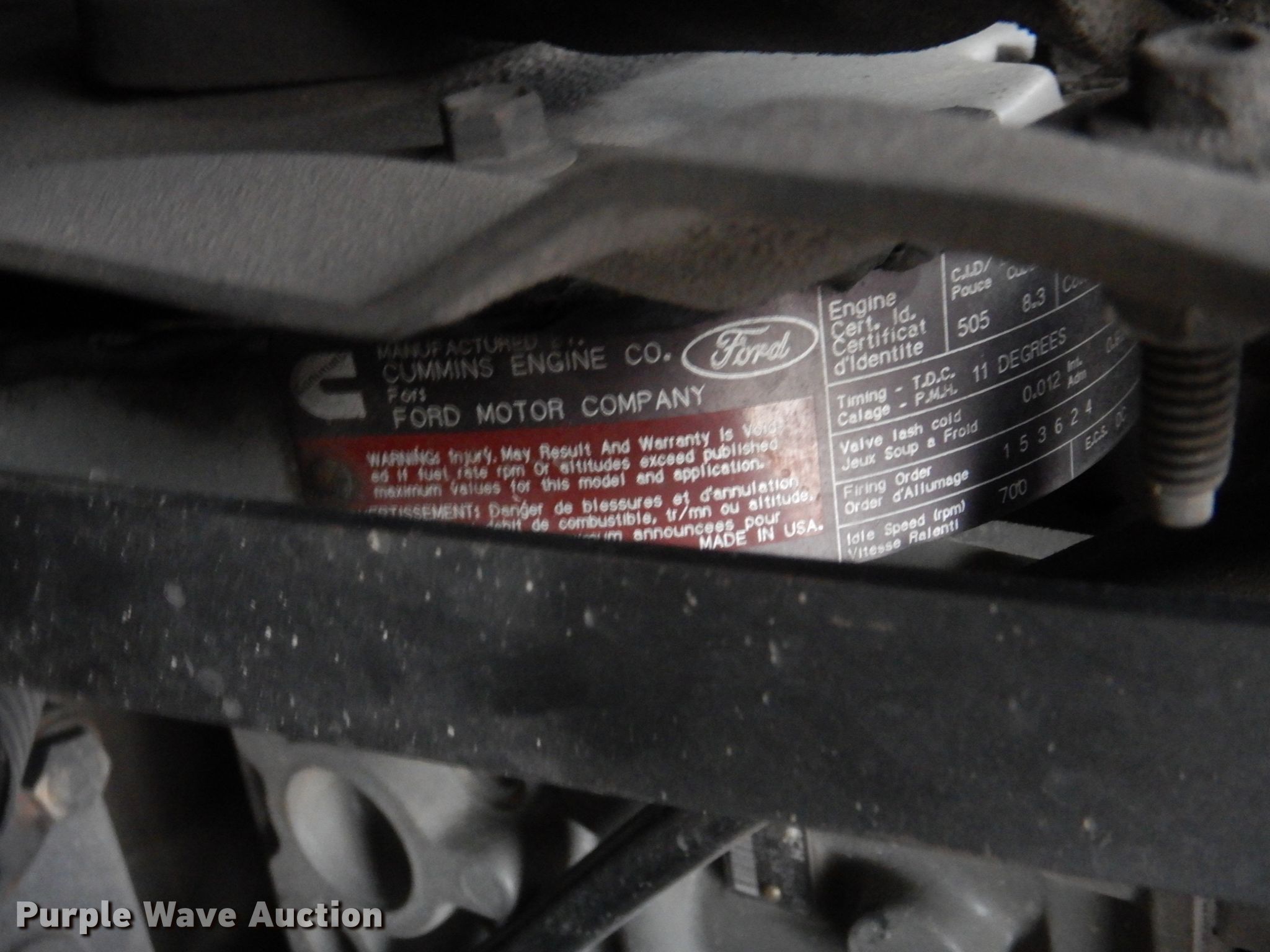 1995 Ford F800 pumper fire truck. Miles: 12,569 on odometer, Hours: 2,303 on meter, VIN: 1FDYF80E0SVA11965, Unit #: 5. Engine Cummins, Displacement: 8.3L, Cylinders: 6, Fuel type: Diesel. Transmission Automatic. Chassis Axles: Single, Suspension: Spring, Brakes: Air, GVWR: 35,000 lbs, Wheelbase: 214". Interior Heat. Operational Fire truck body Tank capacity: 1,000 gallons, Pump 750 gpm, Ground ladder, PA/ siren controls. Tires Size: 11R22.5. Missouri title. Saline County Rural Fire Protection District. 471 W Arrow St. Marshall, MO 65340