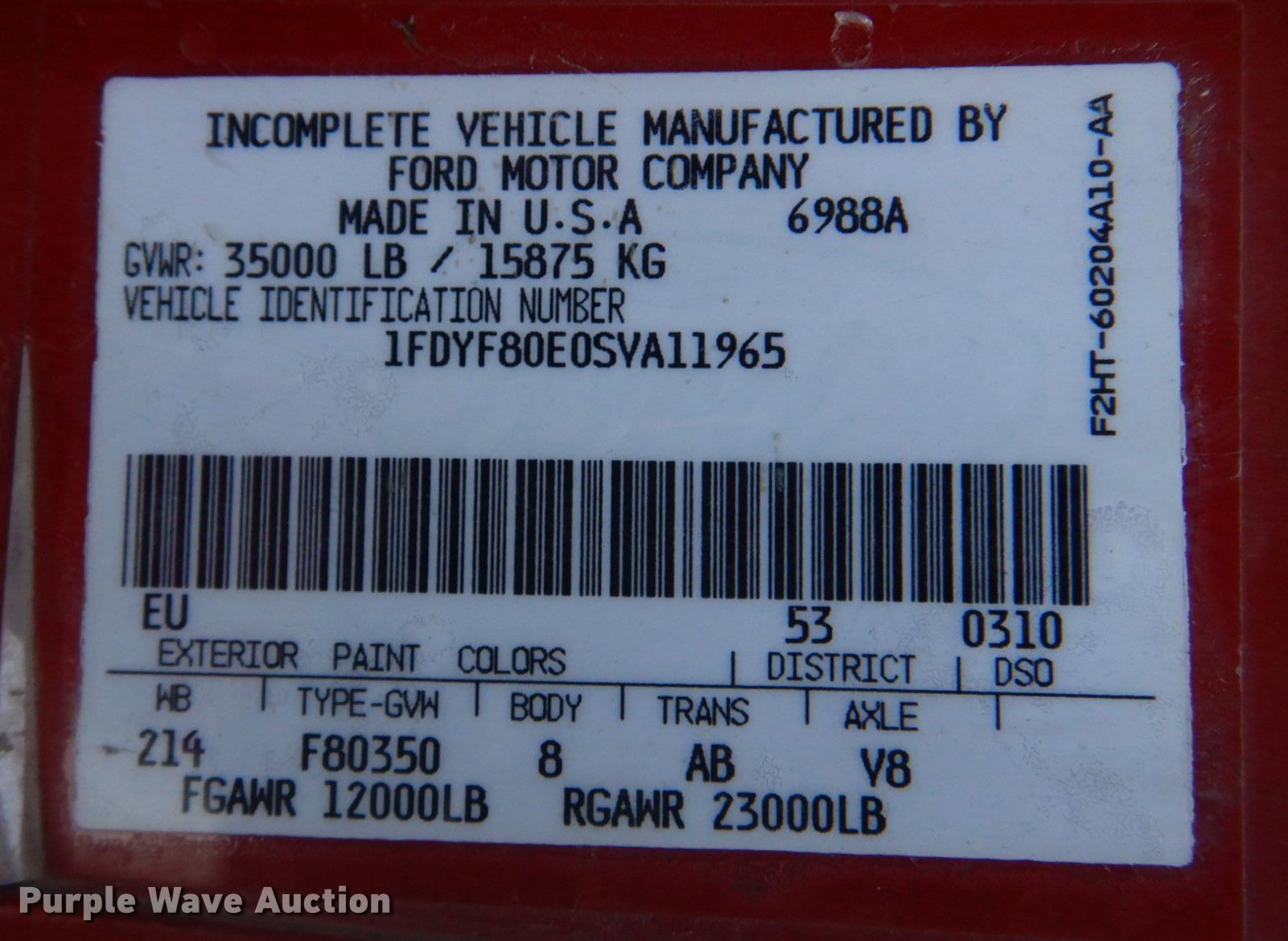 - VIN: 1FDYF80E0SVA11965
