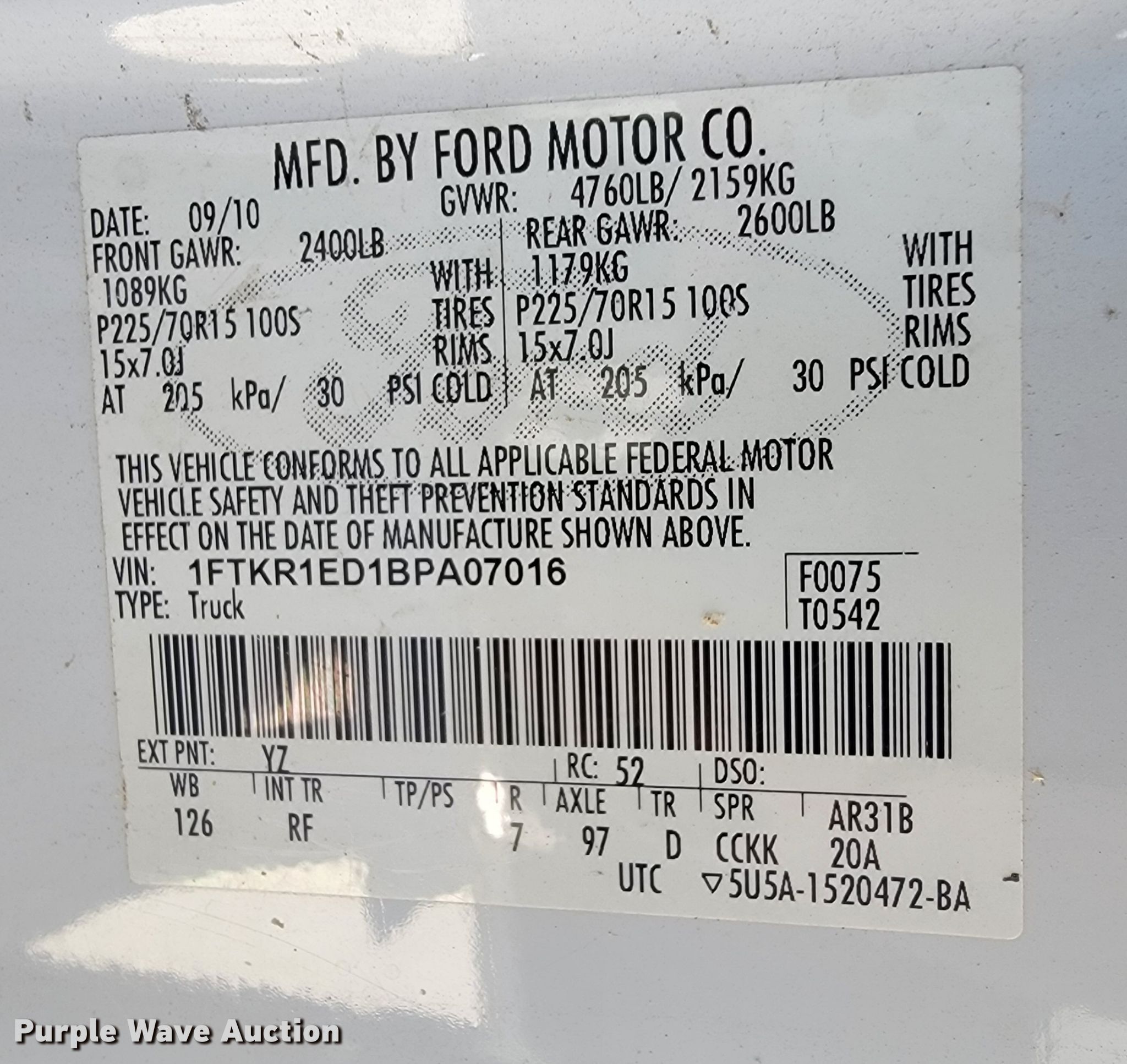 Purple Wave is selling a used Compact Pickup or Van in Oklahoma. This item is a 2011 Ford Ranger SuperCab pickup truck with the following: Miles: Unknown, VIN: 1FTKR1ED1BPA07016, Unit #: 926