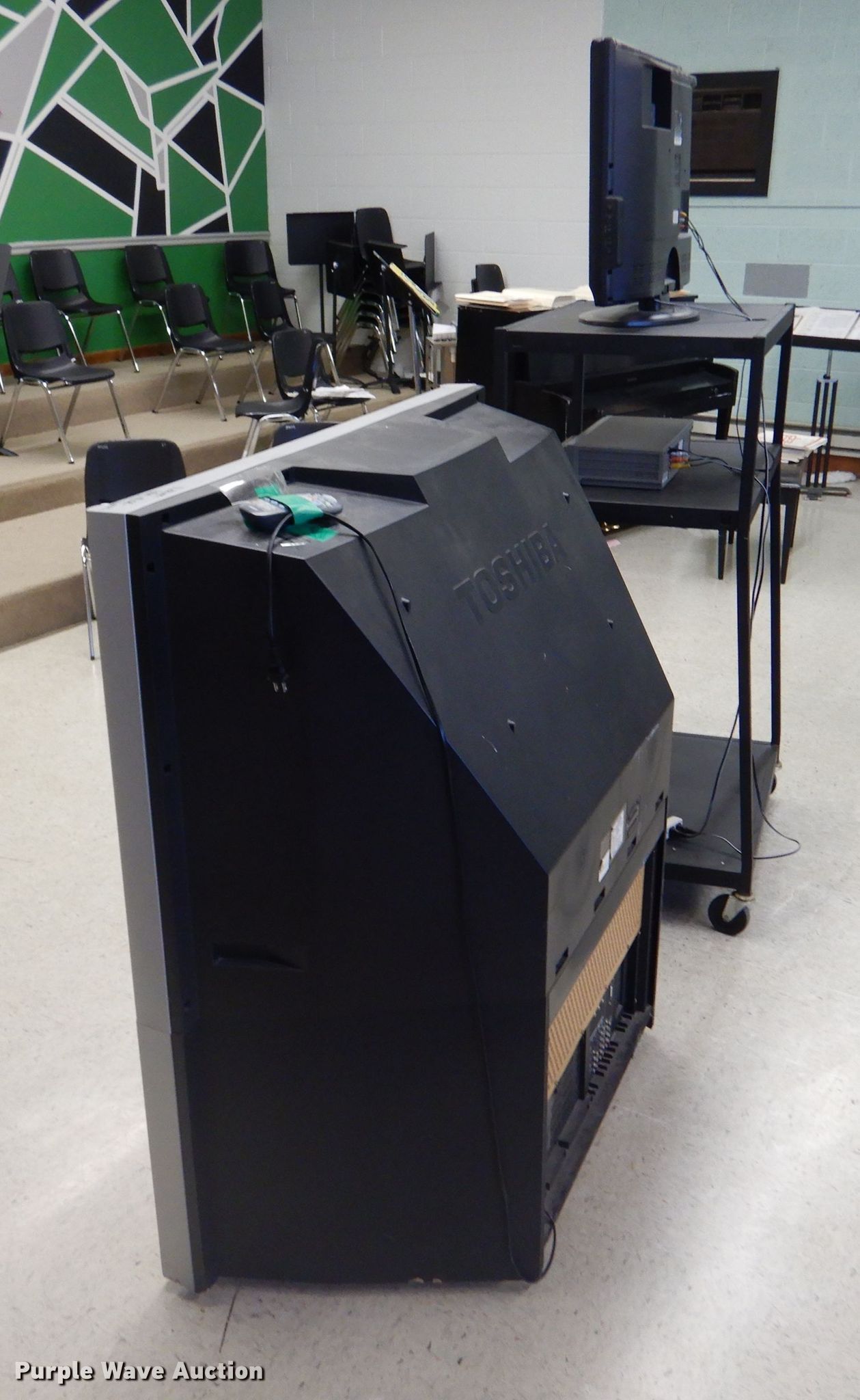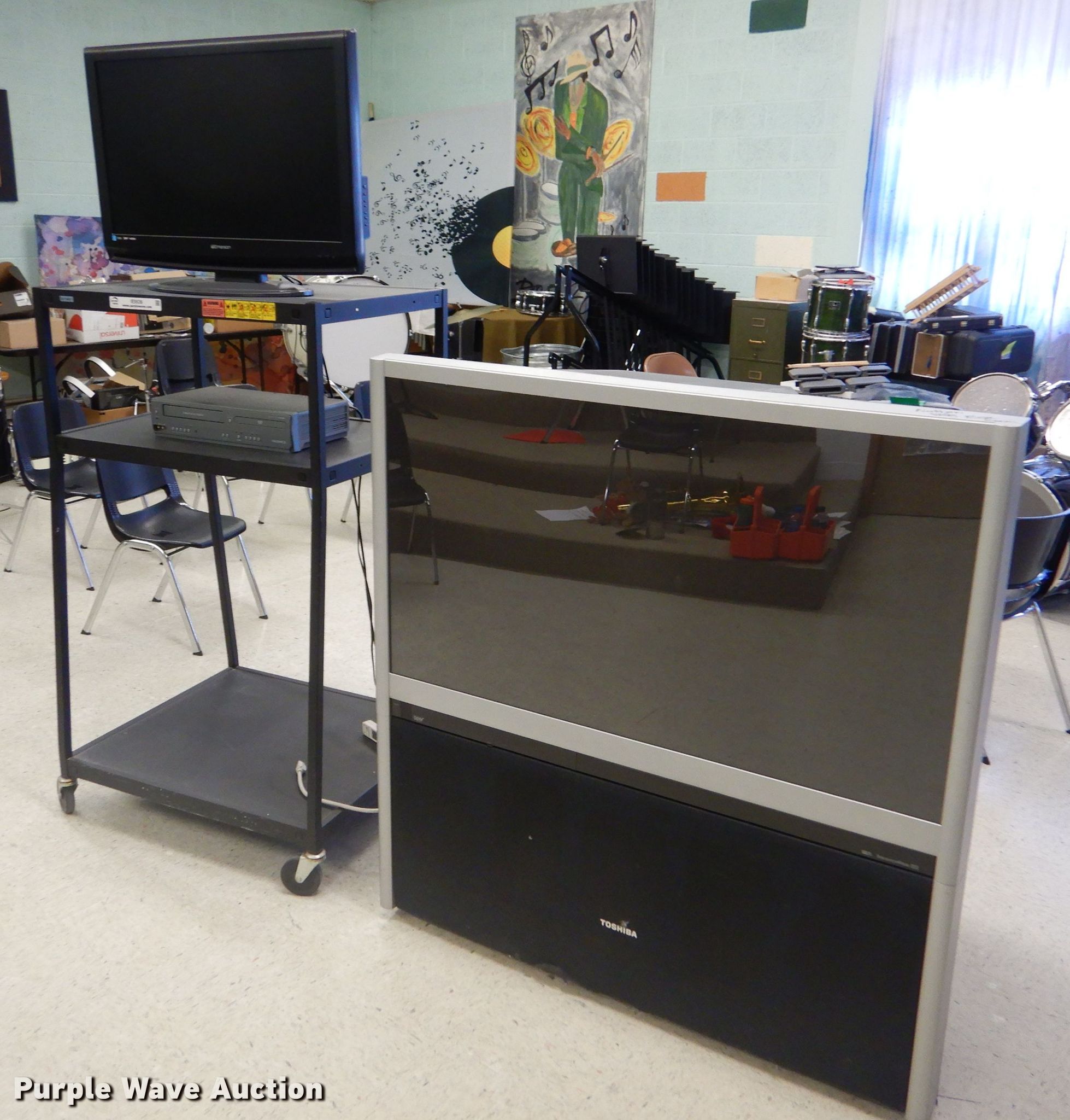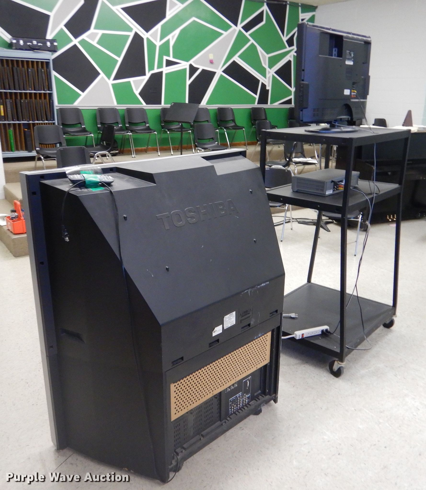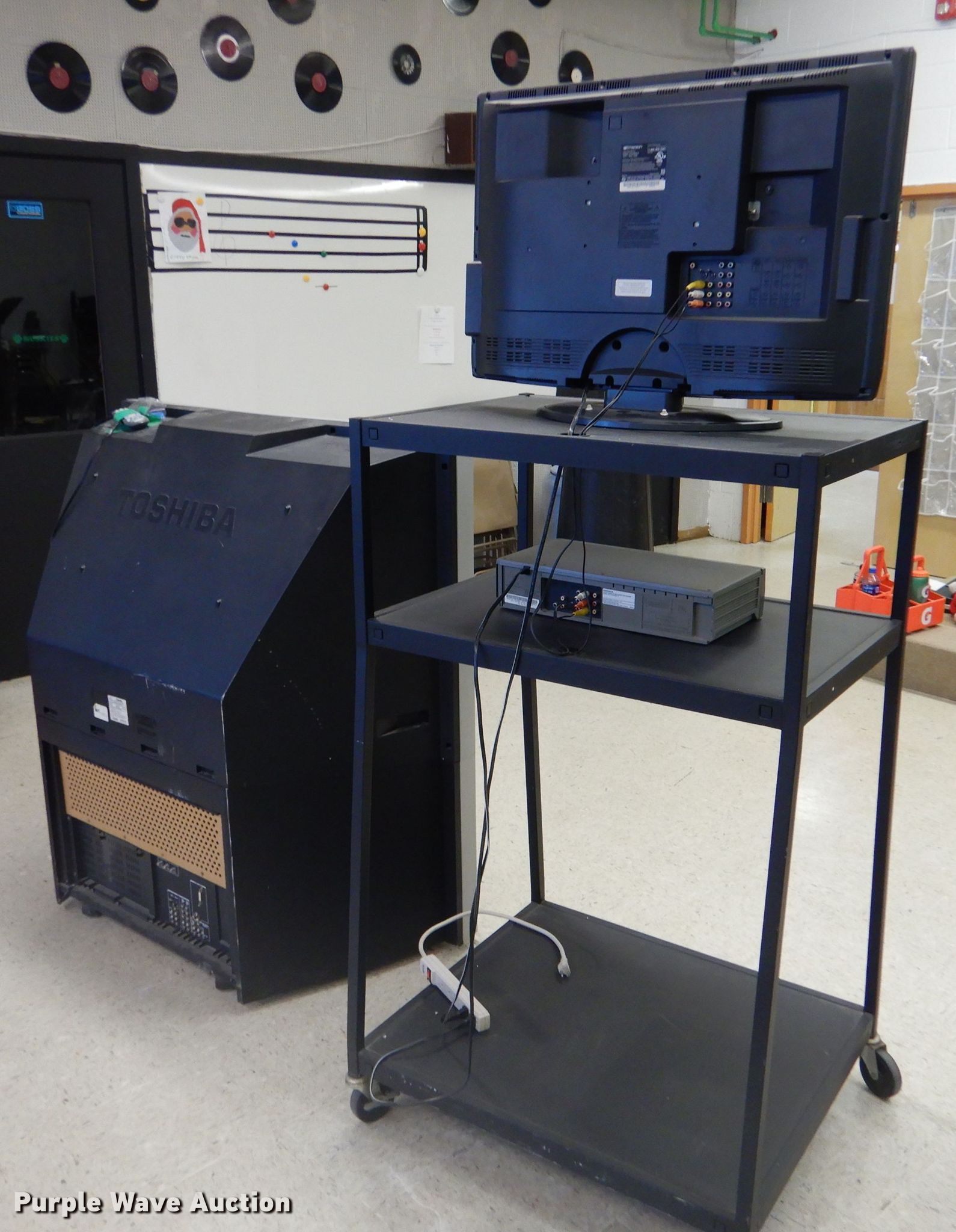 Purple Wave is selling a used Electronics in Kansas. This item is a (2) televisions with the following: Emerson LC320EM9B 32" television, Magnavox VCR/DVD player, Toshiba 51H83 51" television, 22"L x 32"W x 54"H television stand