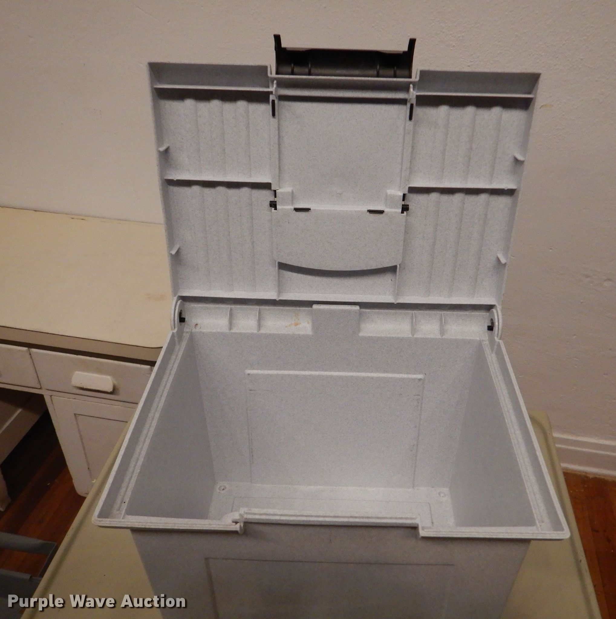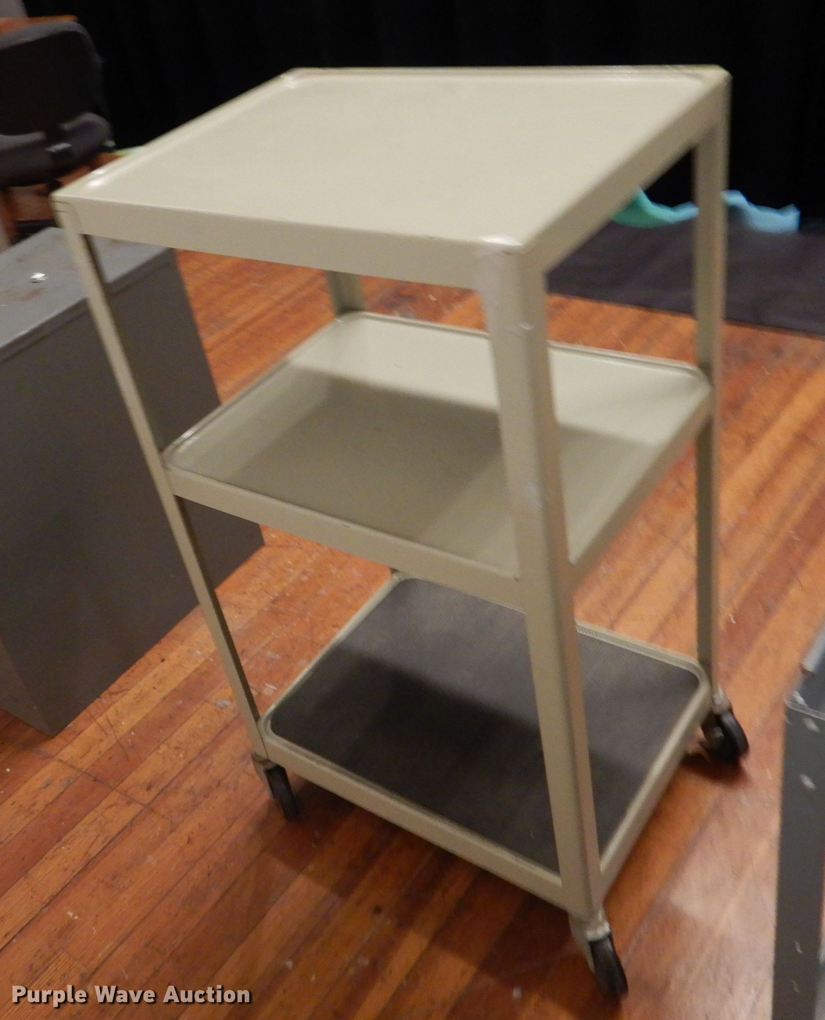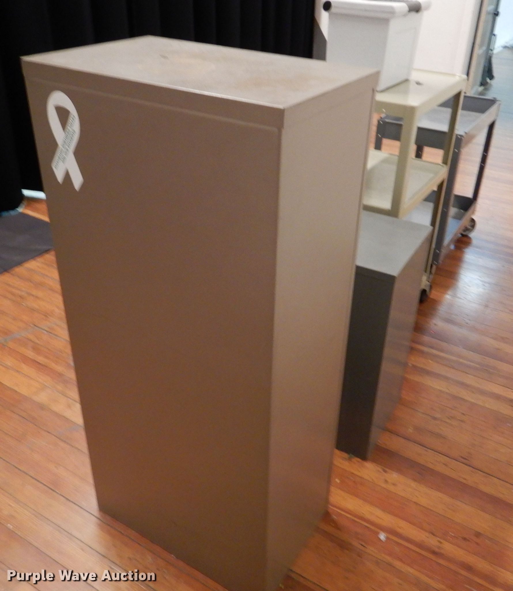 Purple Wave is selling a used Office Supplies and Equip. in Kansas. This item is a Office supplies with the following: (2) file cabinets, (2) carts, Storage box