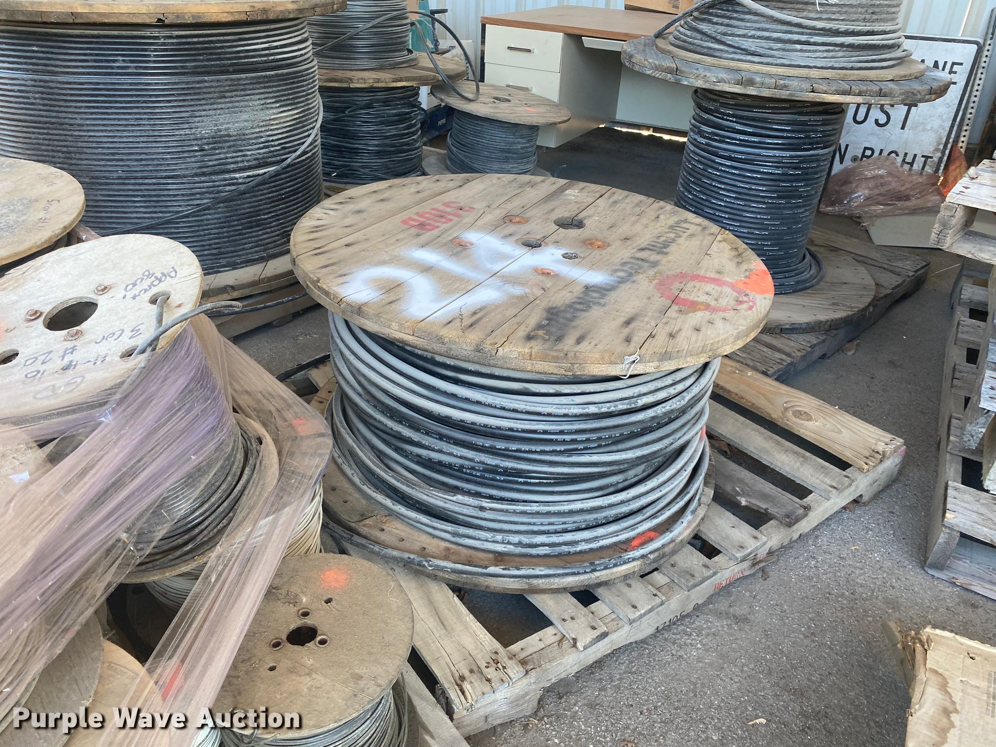 Purple Wave is selling a used Building Materials in Oklahoma. This item is a Rolls of cable with the following: Approx. 1,500' of 4 CON no. 22, S04-005447 optical cable, 4 AWG 600V, XHHW-2 600V, Approx. 400' of 6 CON no. 22 AWG, Approx. 1,500' of 6 CON no. 2 AWG, Approx. 800' of 2 CON no. 8 type NM with ground, 25 PR/22 AWG, Approx. 800' of 3 CON 320, 12x2/22 PE-89, 12 PR/22 AWG, 6 PA/16 AWG, Unit# 214