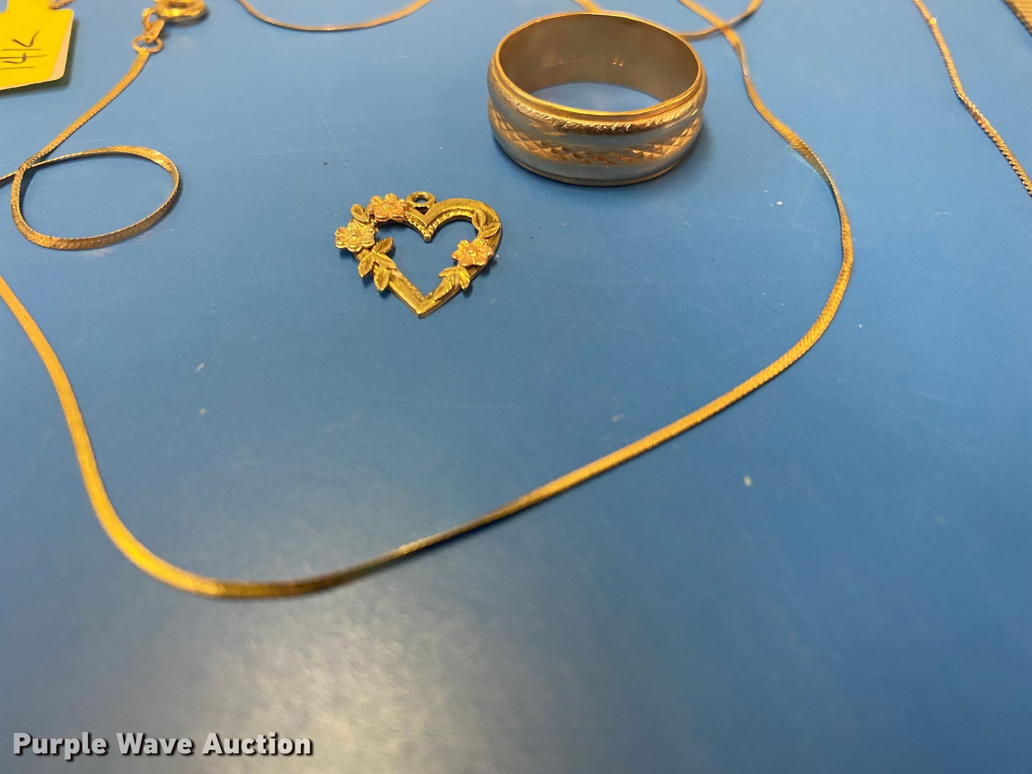 Purple Wave is selling a used Jewelery in Oklahoma. This item is a 14K jewelry with the following: Approx. 19 grams, Necklaces, Rings, Unit# 2046